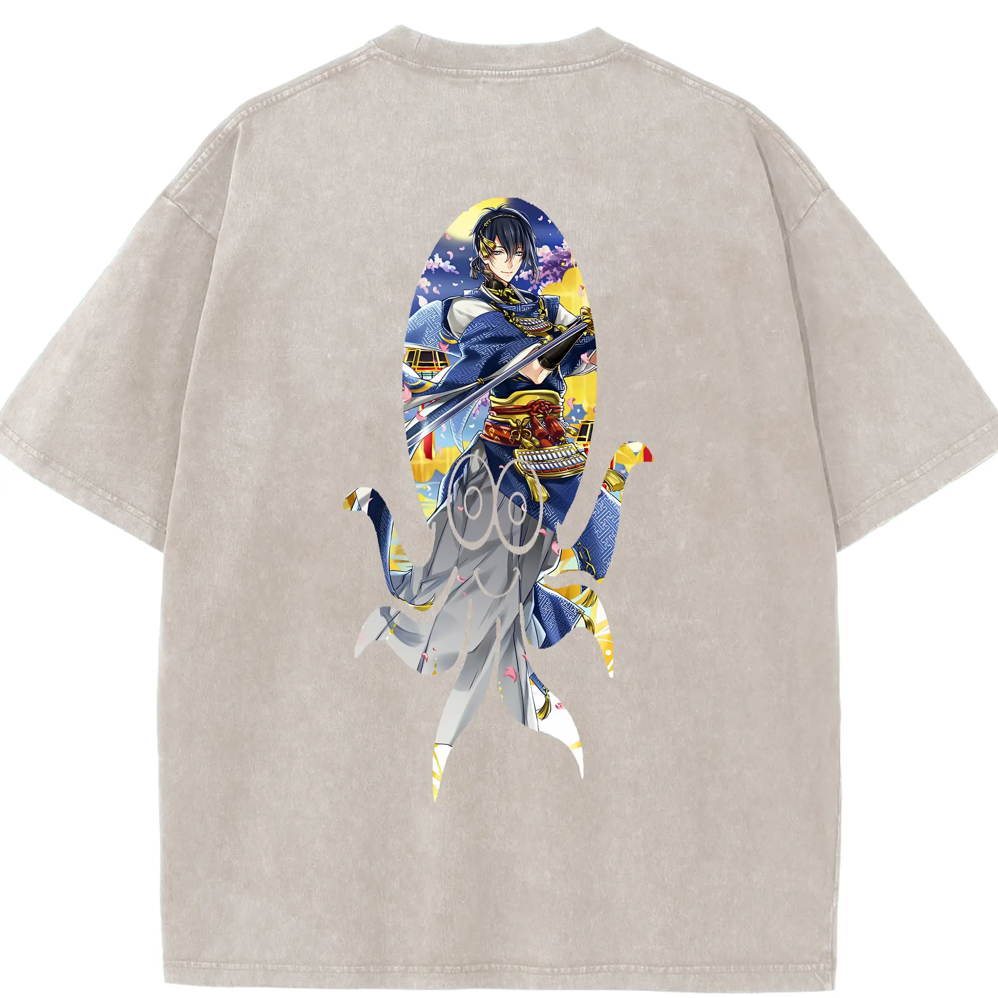 刀剣乱舞 グッズ,三日月宗近 - 綿100% ヴィンテージ風 半袖Tシャツ ・ フロントプリント ・ 柔らか肌触り ・ 通気性 快適 ・ スポーツ カジュアル 外出用