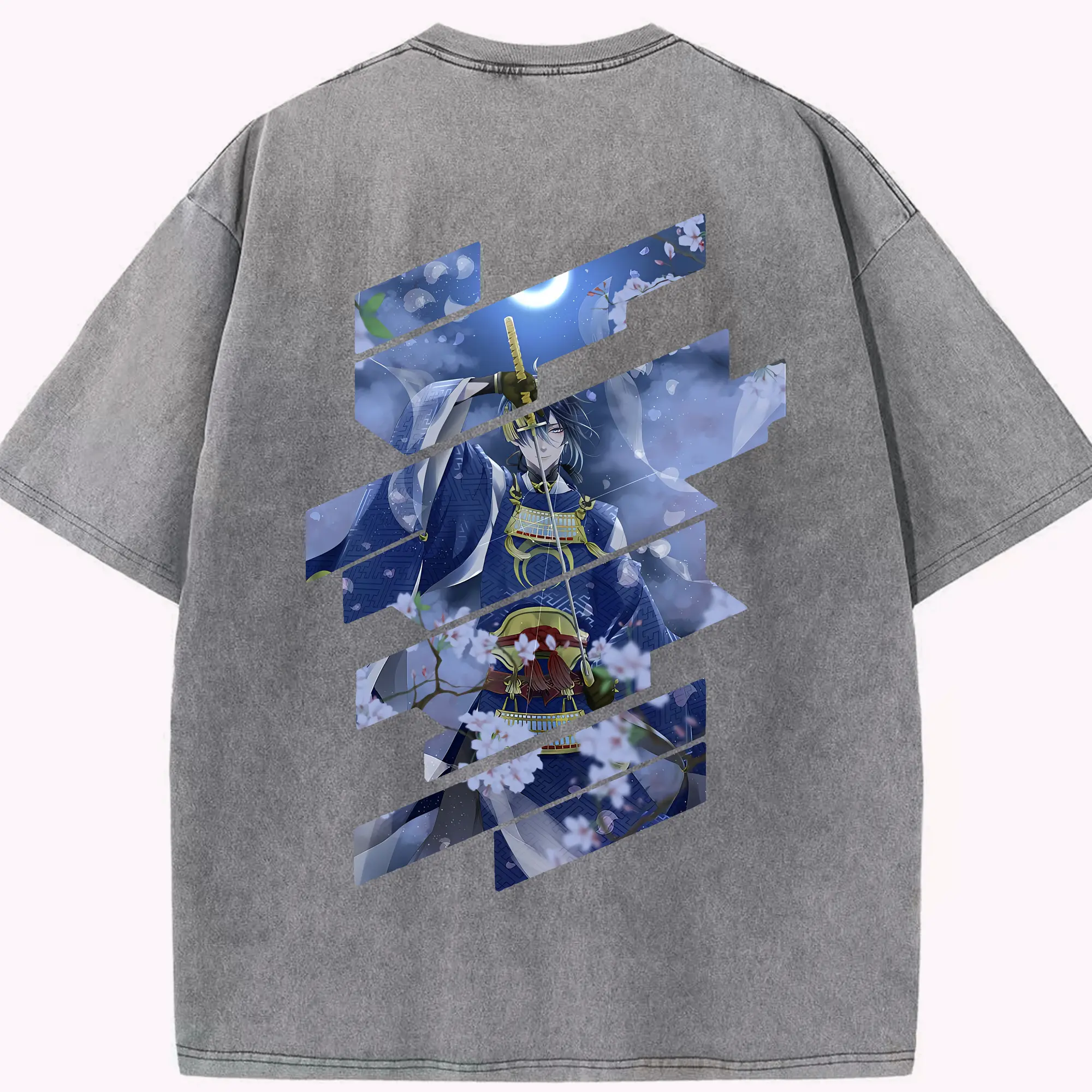刀剣乱舞 グッズ,三日月宗近 - 綿100% ヴィンテージ風 半袖Tシャツ ・ フロントプリント ・ 柔らか肌触り ・ 通気性 快適 ・ スポーツ カジュアル 外出用