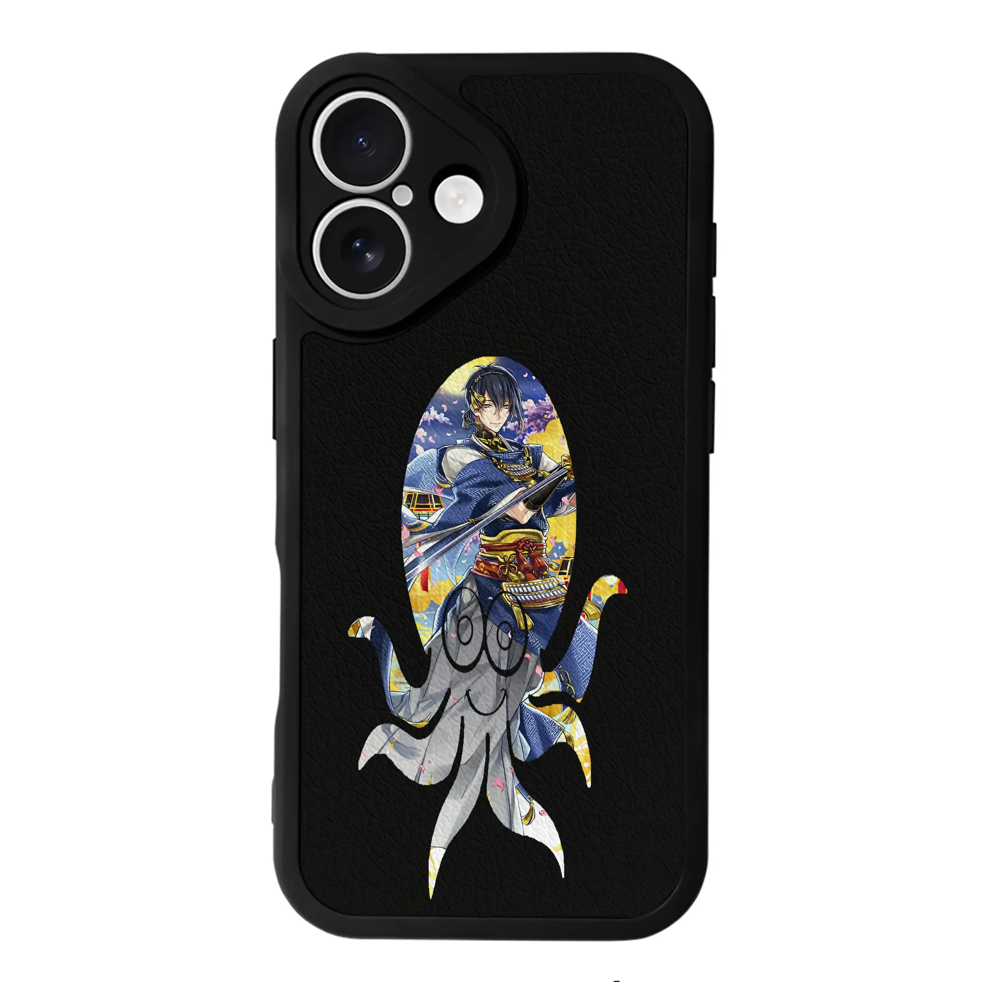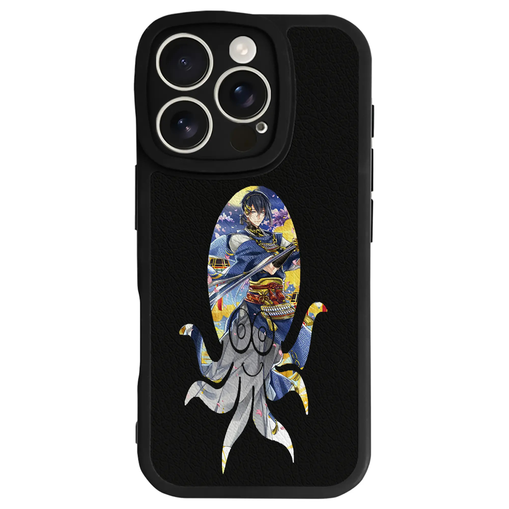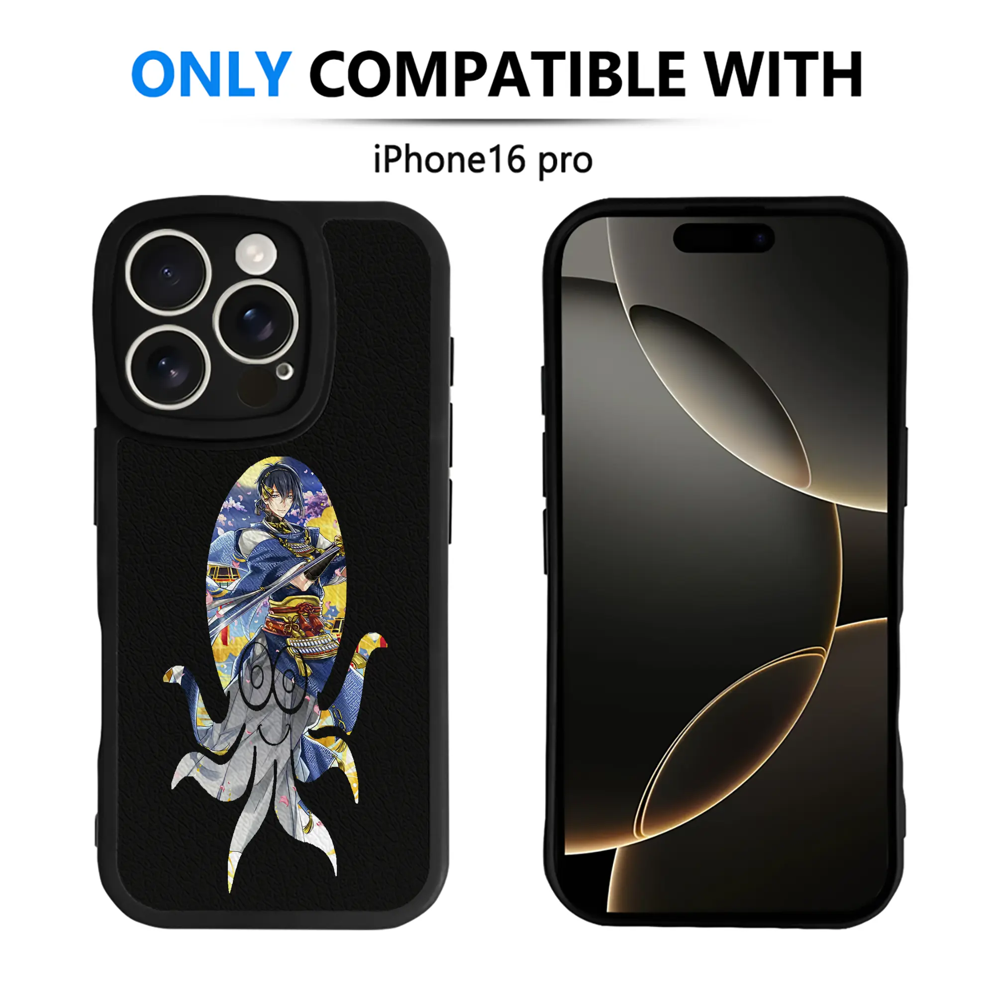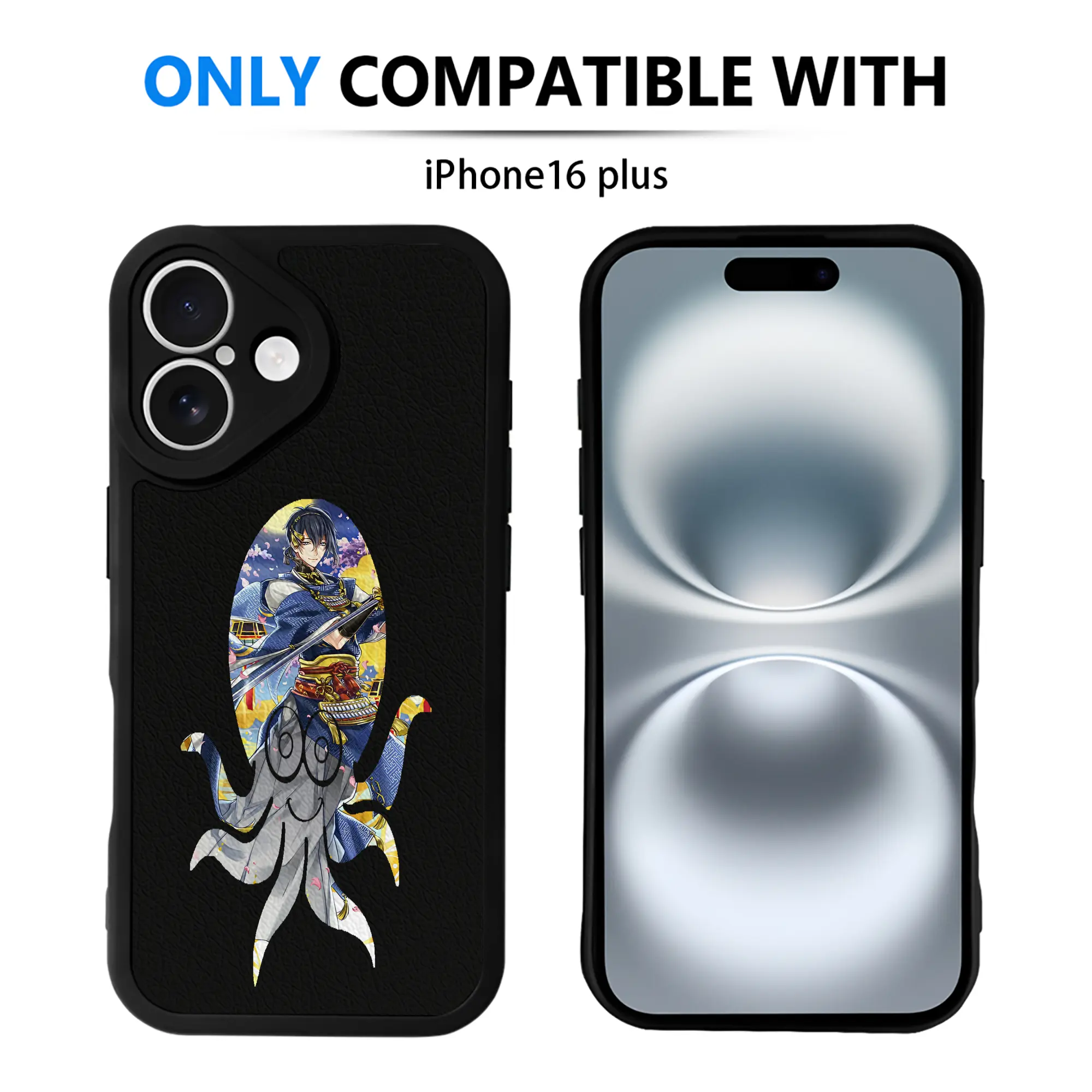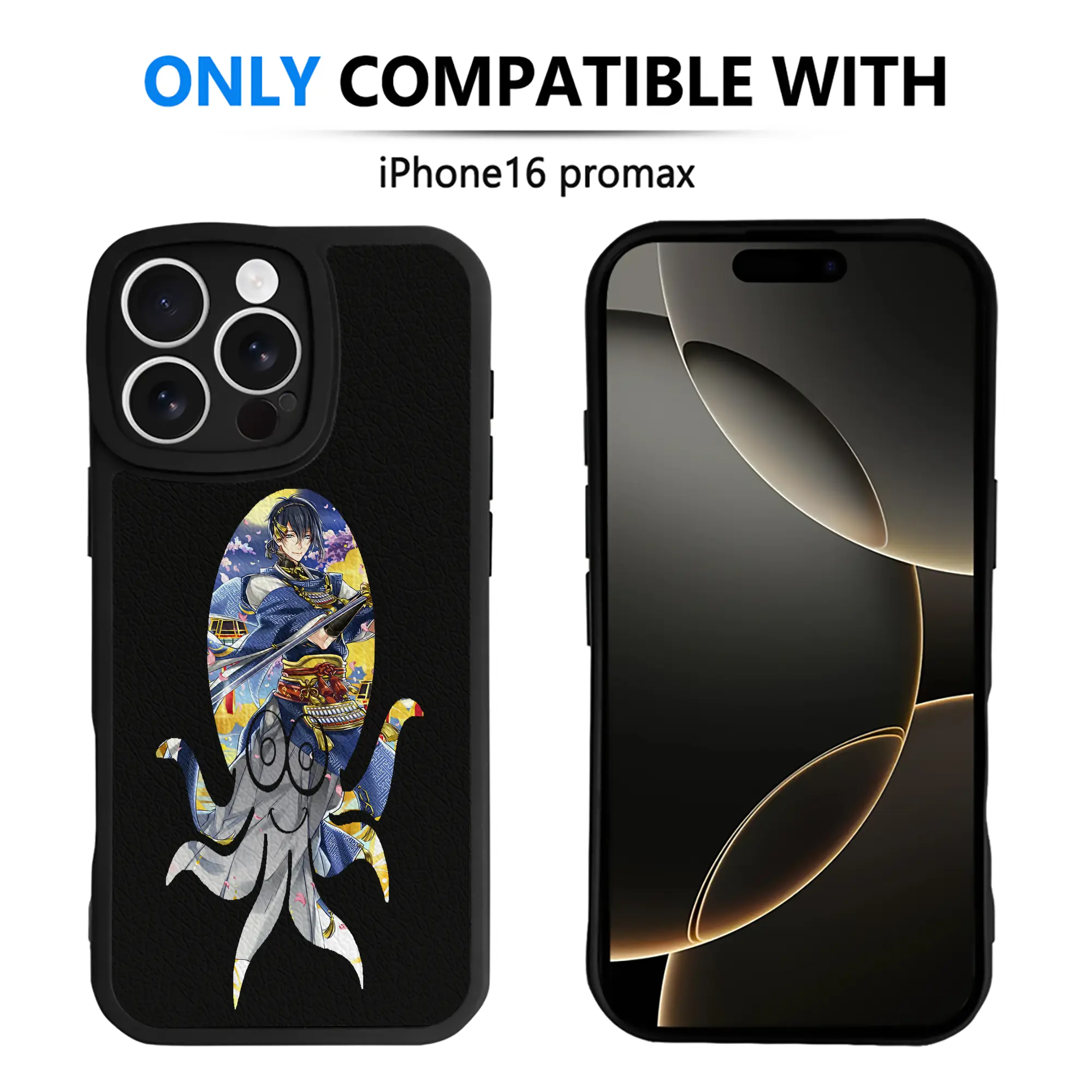 刀剣乱舞 グッズ,三日月宗近 - IPhone 16シリーズ対応 ・ シリコンスマホケース ・ レザー調 ・ 高精度フィット ・ 耐衝撃 ・ ワイヤレス充電対応 ・ 精密カット