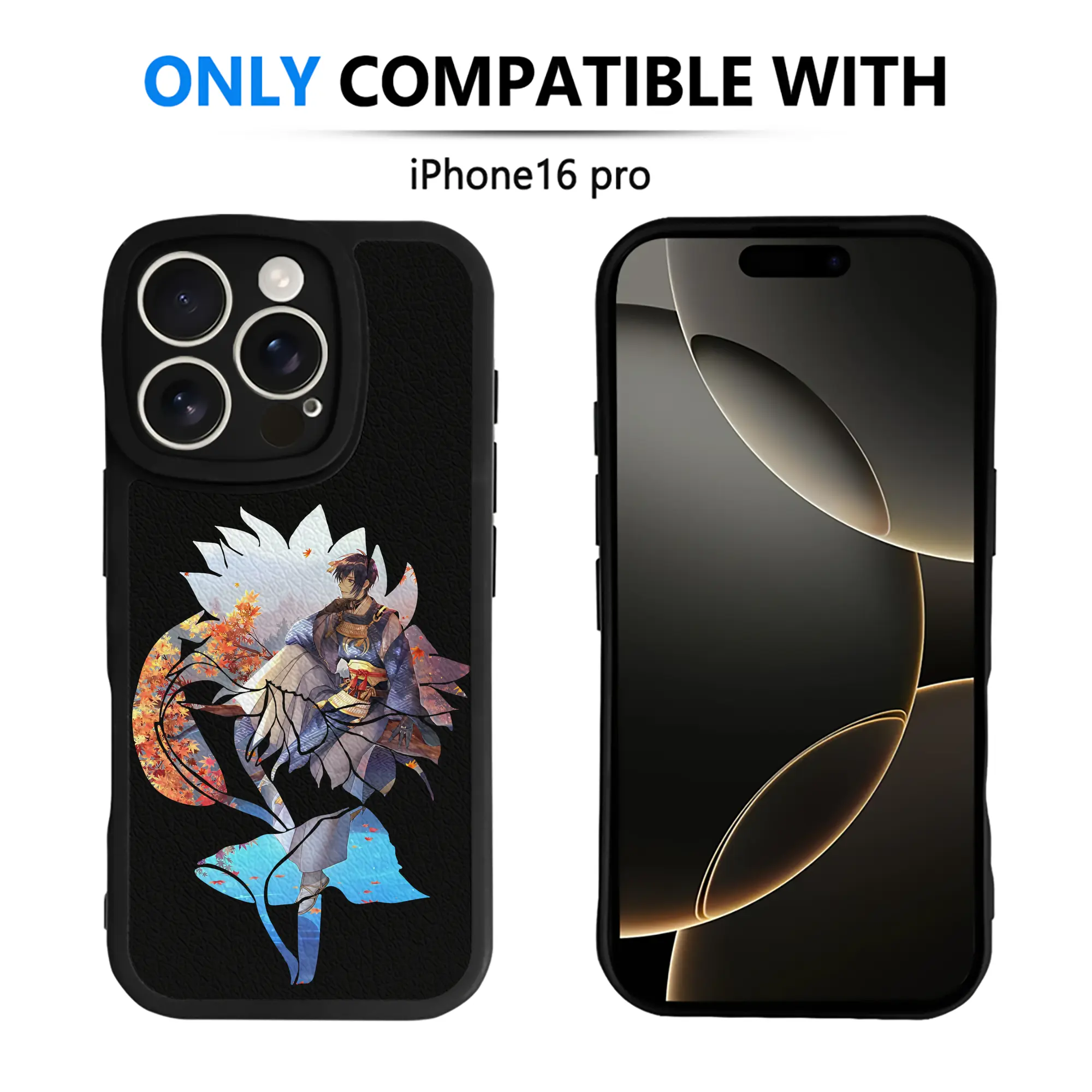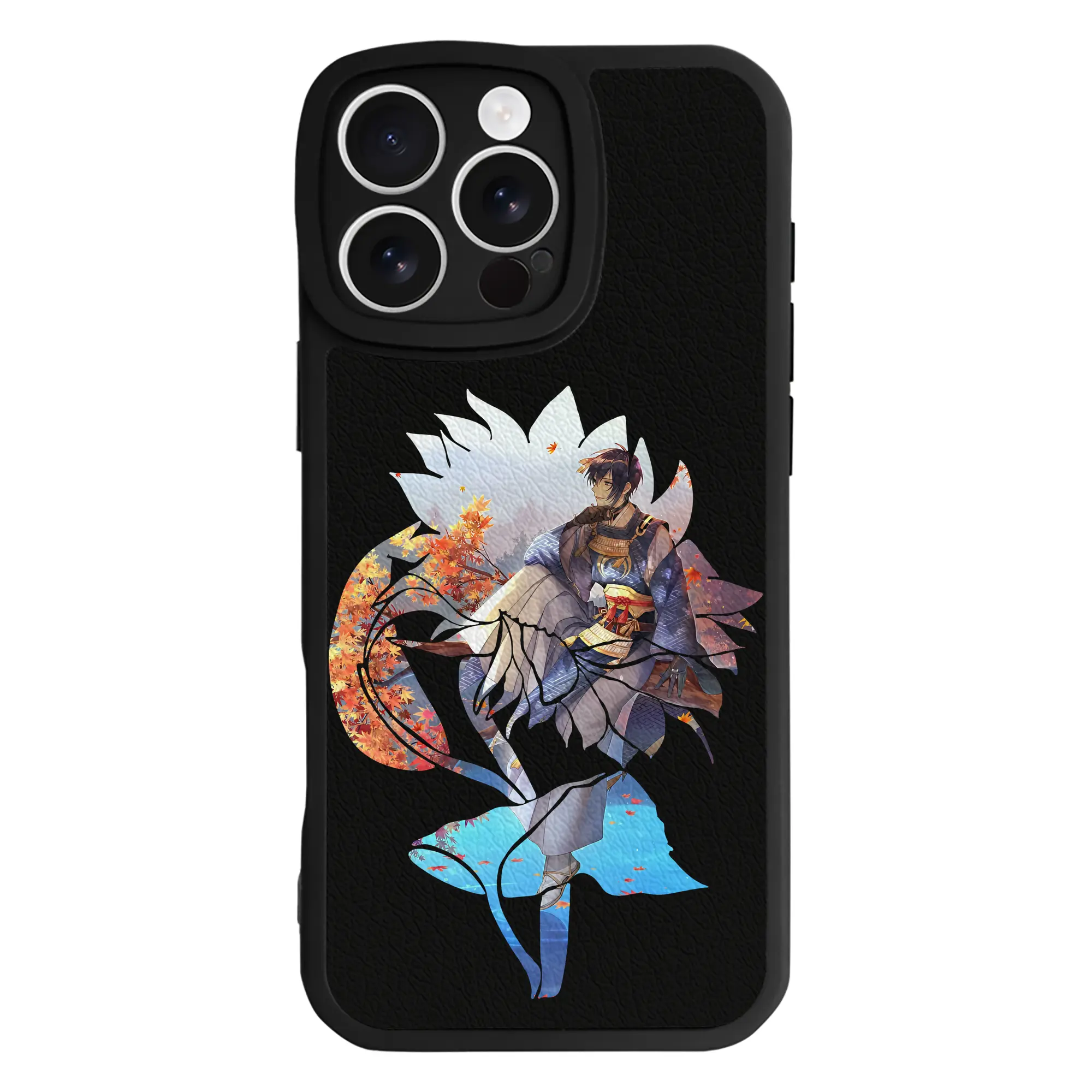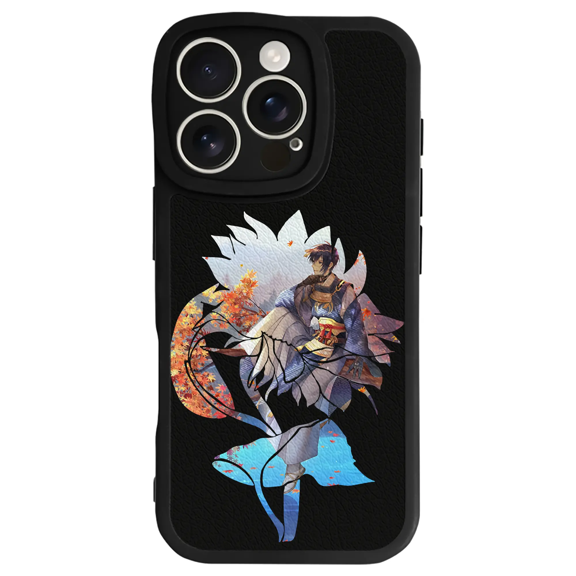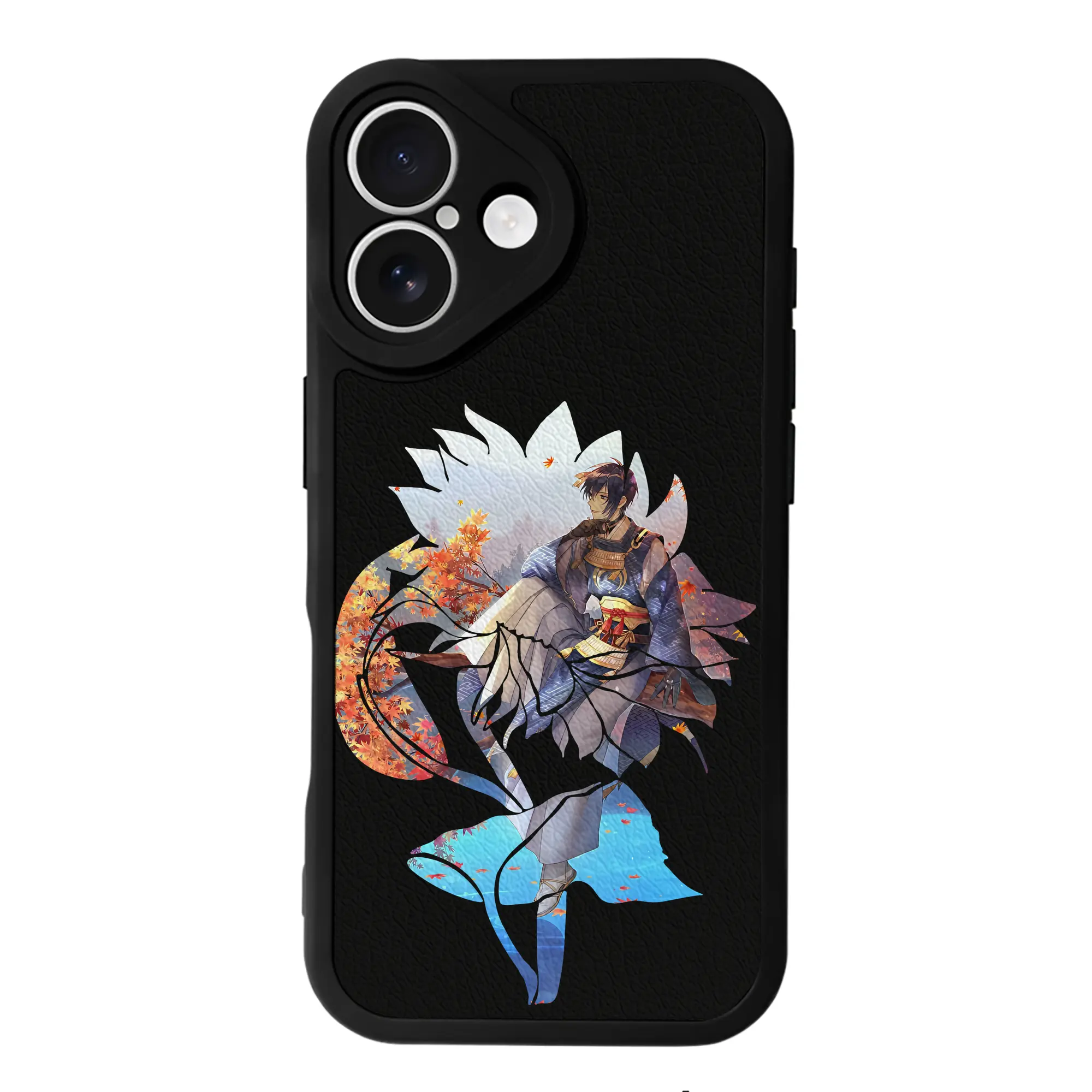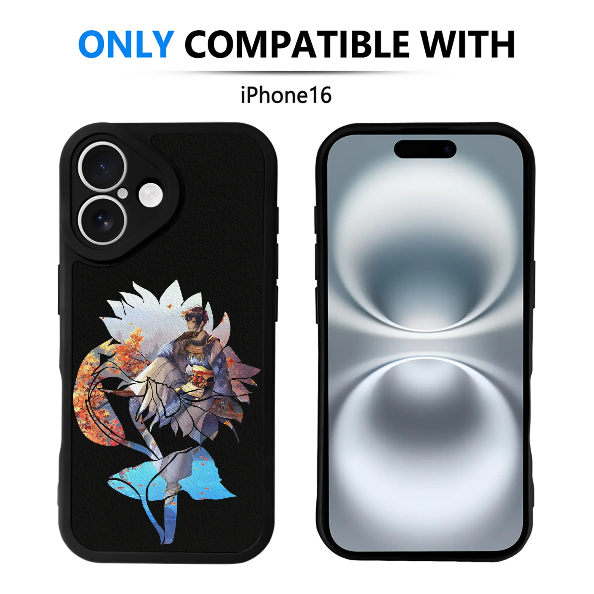 刀剣乱舞 グッズ,三日月宗近 - IPhone 16シリーズ対応 ・ シリコンスマホケース ・ レザー調 ・ 高精度フィット ・ 耐衝撃 ・ ワイヤレス充電対応 ・ 精密カット