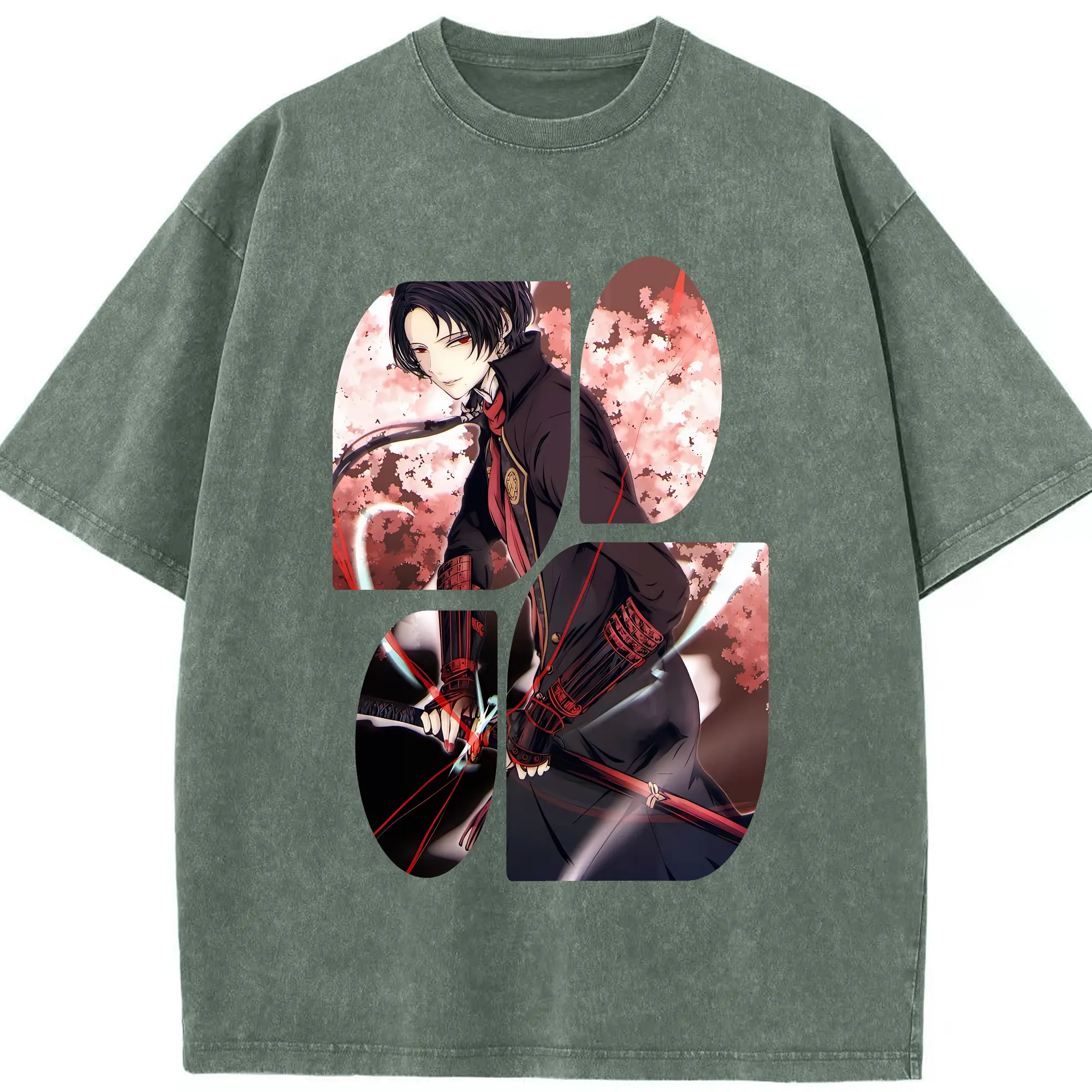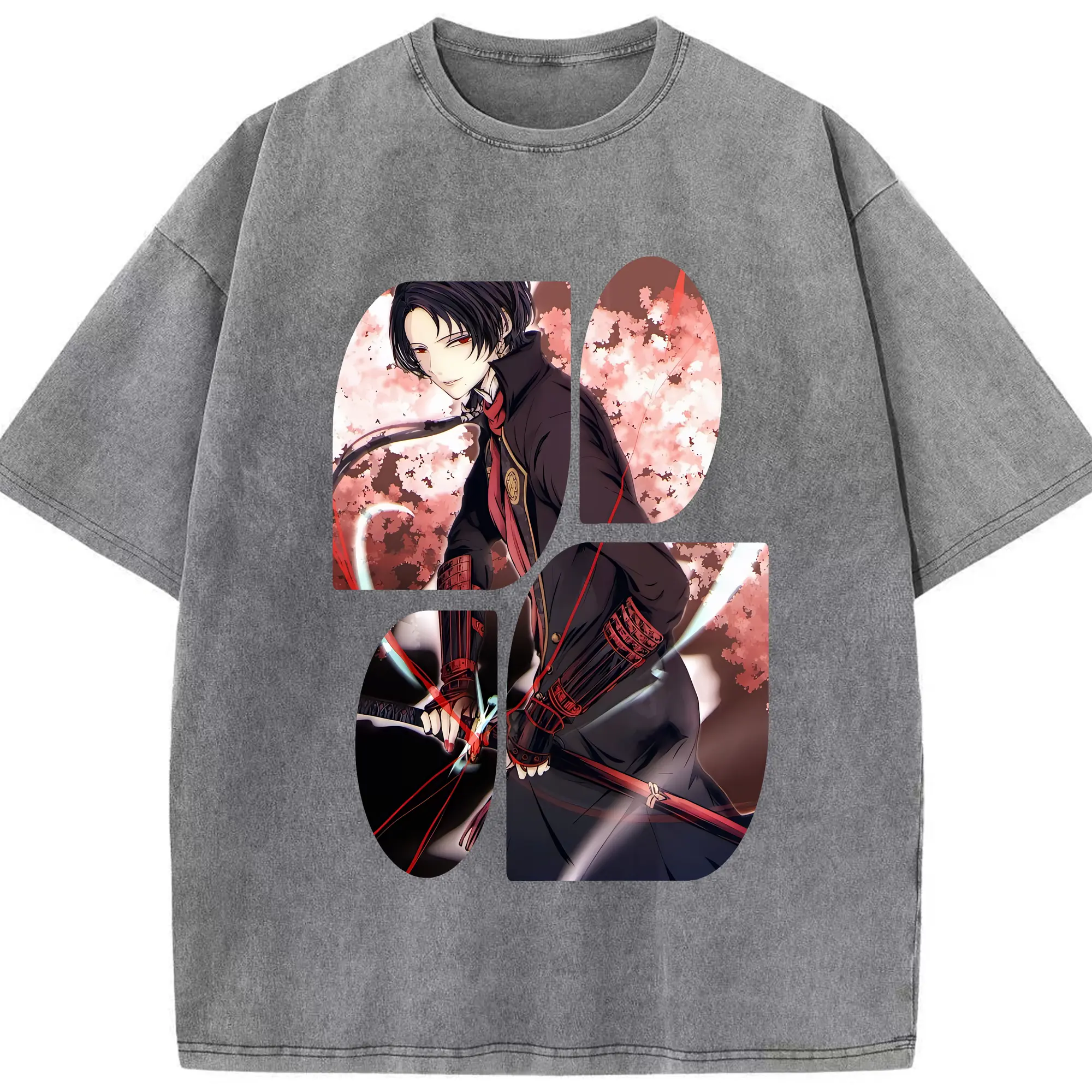 刀剣乱舞 グッズ,加州清光 - 綿100% ヴィンテージ風 半袖Tシャツ ・ 背面プリント ・ 柔らか肌触り ・ 通気性 快適 ・ スポーツ カジュアル 外出用