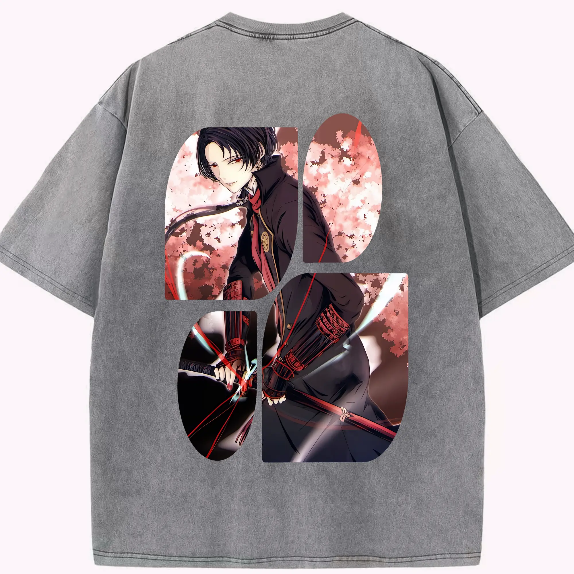 銀魂 グッズ 神楽 - 綿100% ヴィンテージ風 半袖Tシャツ ・ 背面プリント ・ 柔らか肌触り ・ 通気性 快適 ・ スポーツ カジュアル 外出用