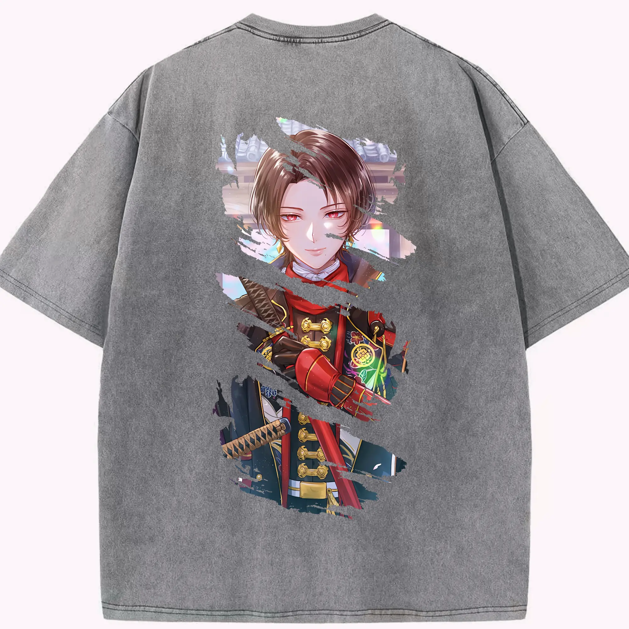 原 神 グッズ ディルック - 綿100% ヴィンテージ風 半袖Tシャツ ・ 背面プリント ・ 柔らか肌触り ・ 通気性 快適 ・ スポーツ カジュアル 外出用
