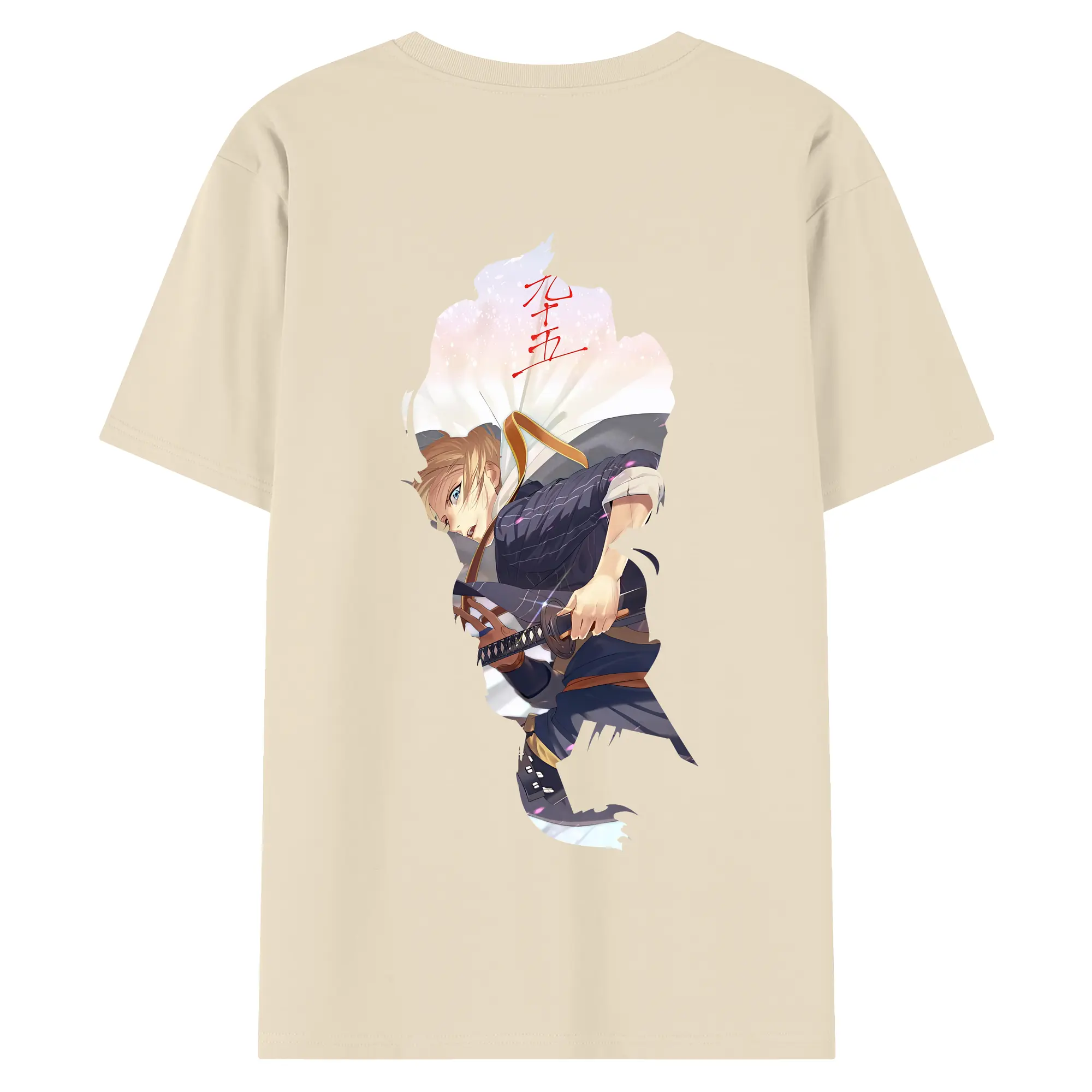 刀剣乱舞 グッズ,山姥切国広 - 綿100% ヴィンテージ風 半袖Tシャツ ・ 背面プリント ・ 柔らか肌触り ・ 通気性 快適 ・ スポーツ カジュアル 外出用