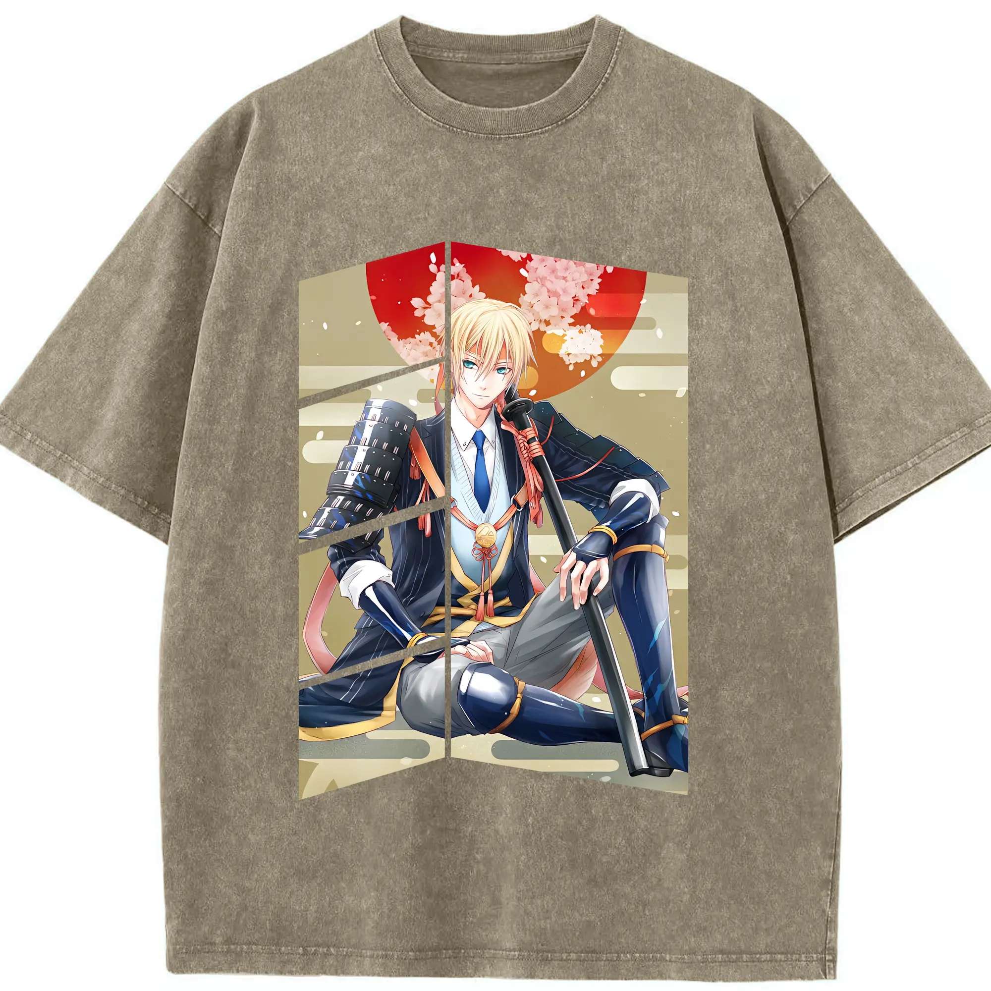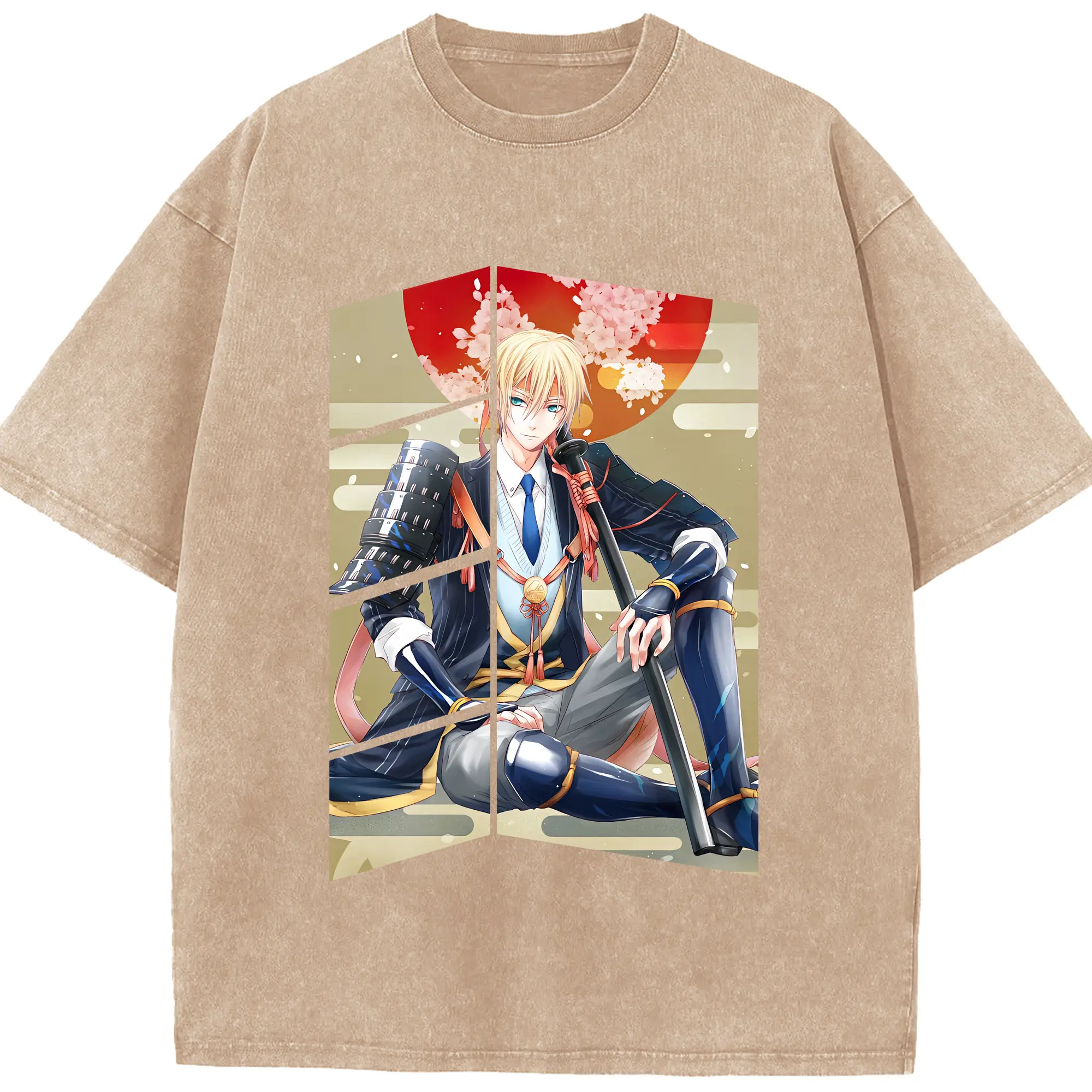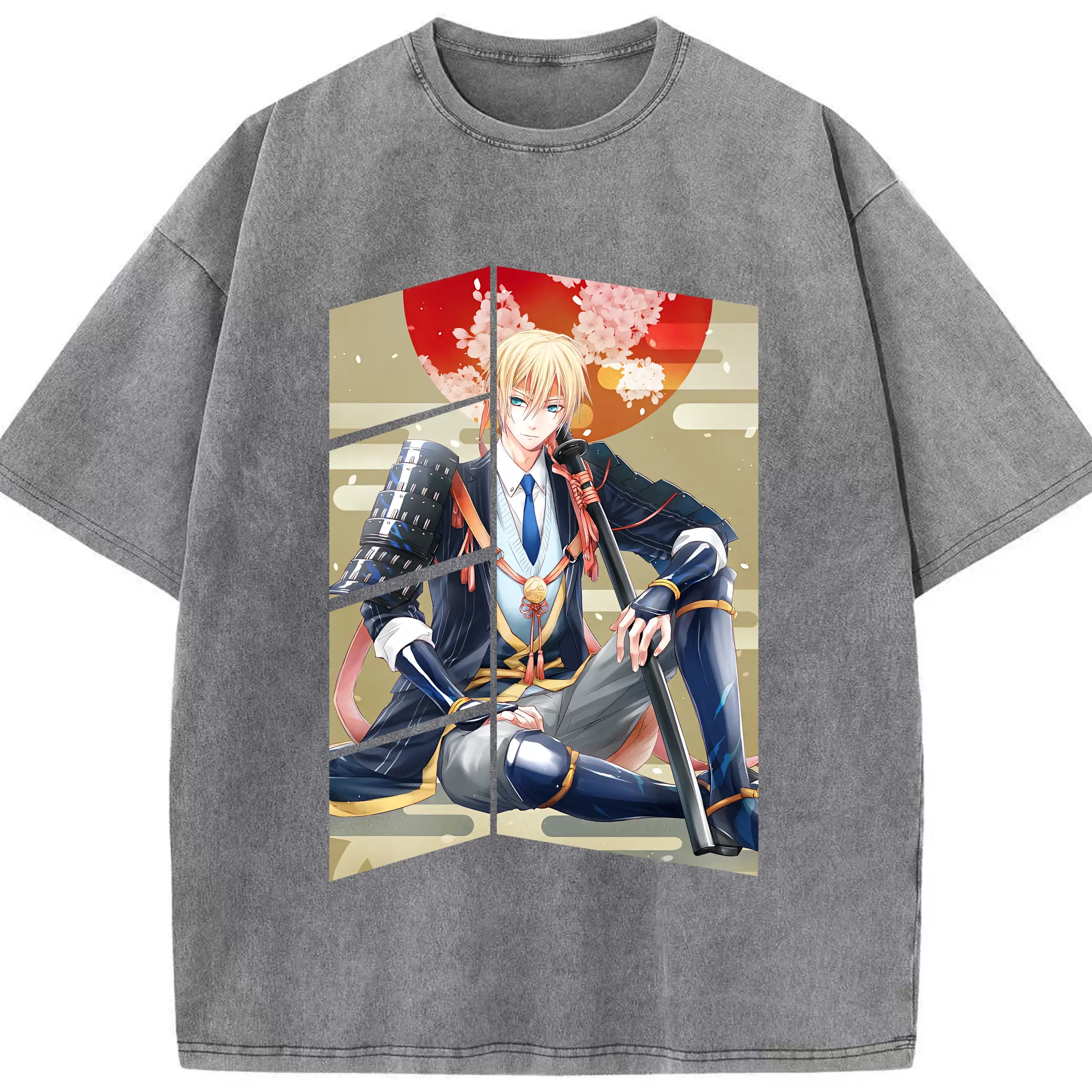 刀剣乱舞 グッズ,山姥切国広 - 綿100% ヴィンテージ風 半袖Tシャツ ・ 背面プリント ・ 柔らか肌触り ・ 通気性 快適 ・ スポーツ カジュアル 外出用