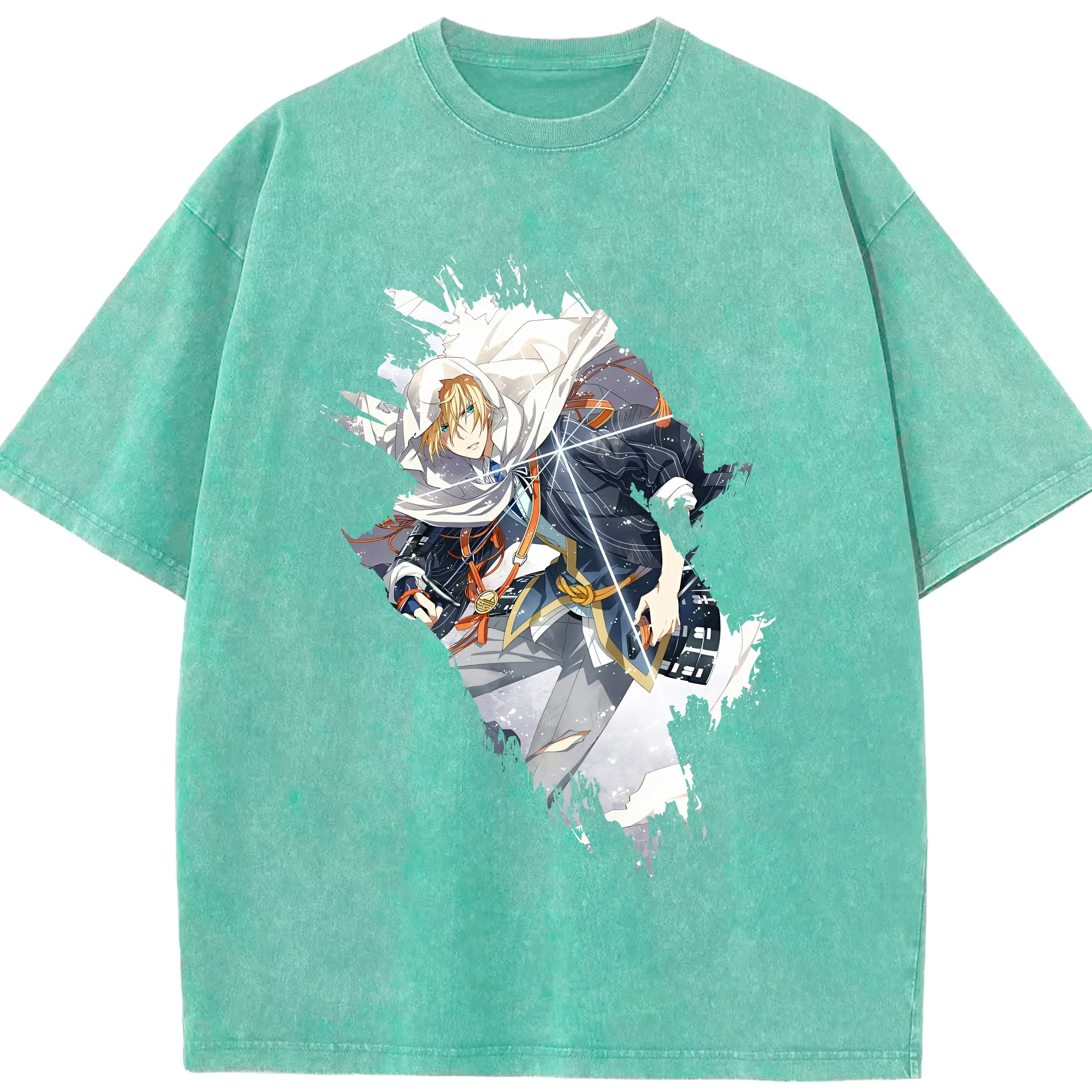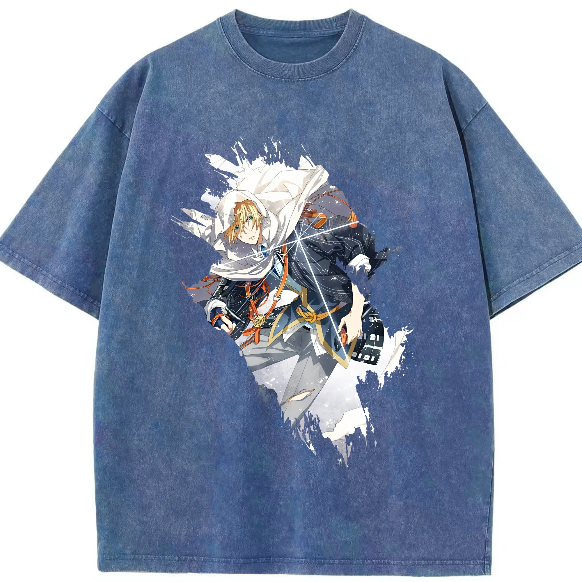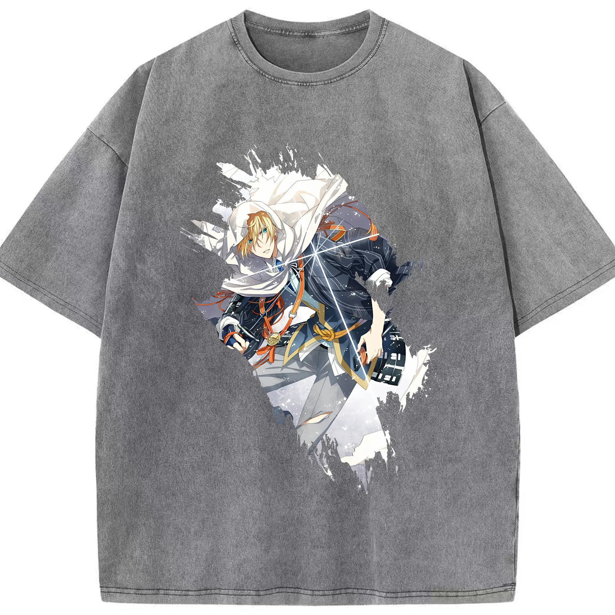 あんさん ぶる グッズ UNDEAD 羽風薫 - 綿100% ヴィンテージ風 半袖Tシャツ ・ フロントプリント ・ 柔らか肌触り ・ 通気性 快適 ・ スポーツ カジュアル 外出用