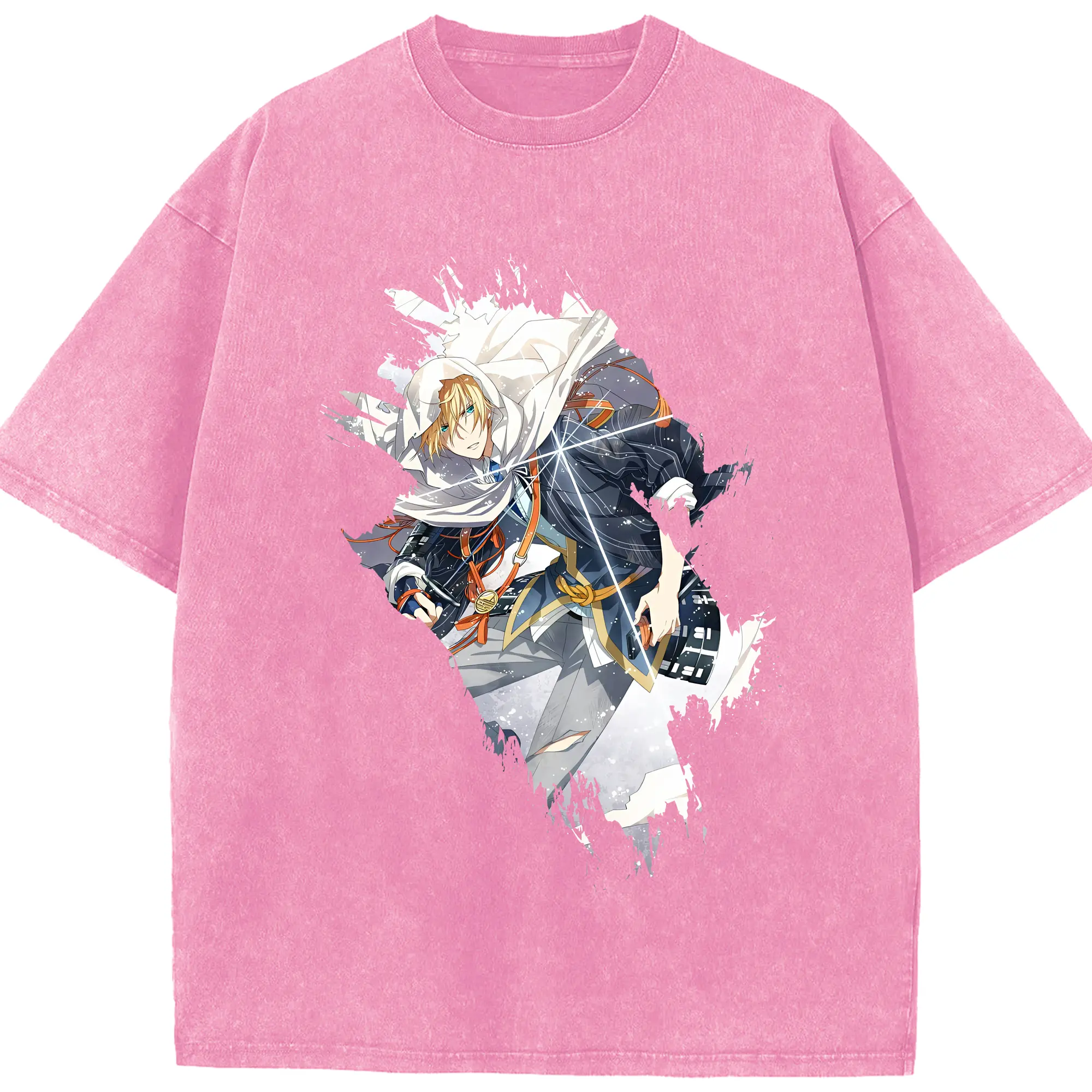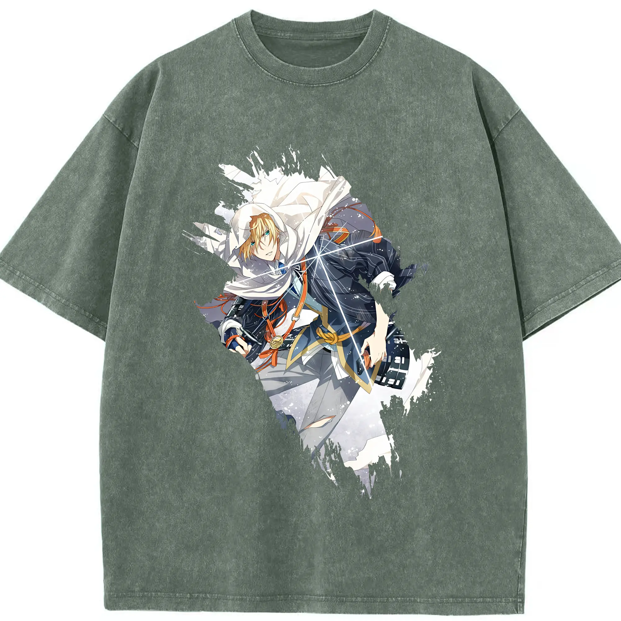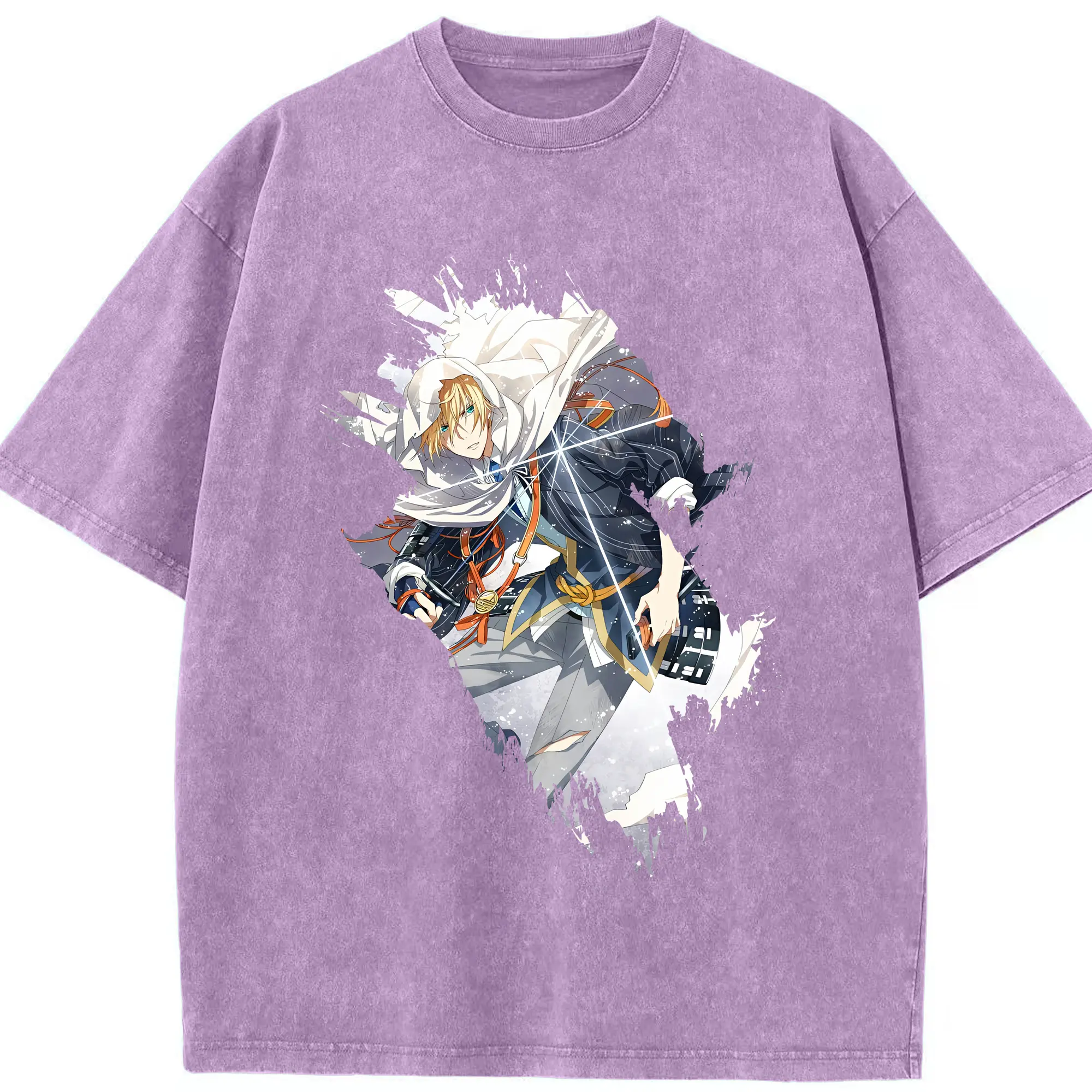 あんさん ぶる グッズ UNDEAD 羽風薫 - 綿100% ヴィンテージ風 半袖Tシャツ ・ フロントプリント ・ 柔らか肌触り ・ 通気性 快適 ・ スポーツ カジュアル 外出用