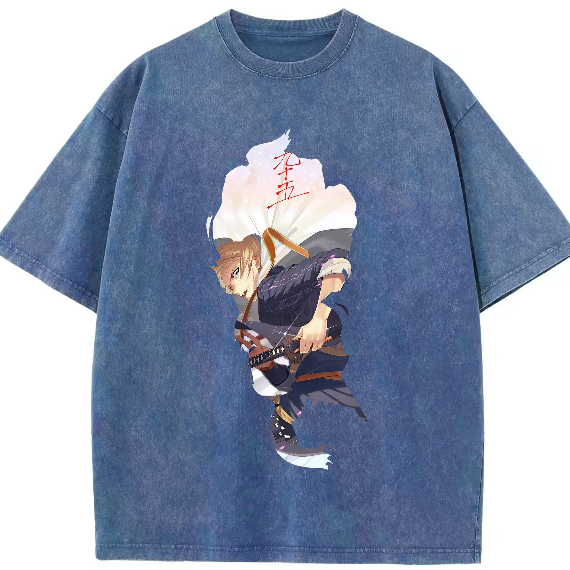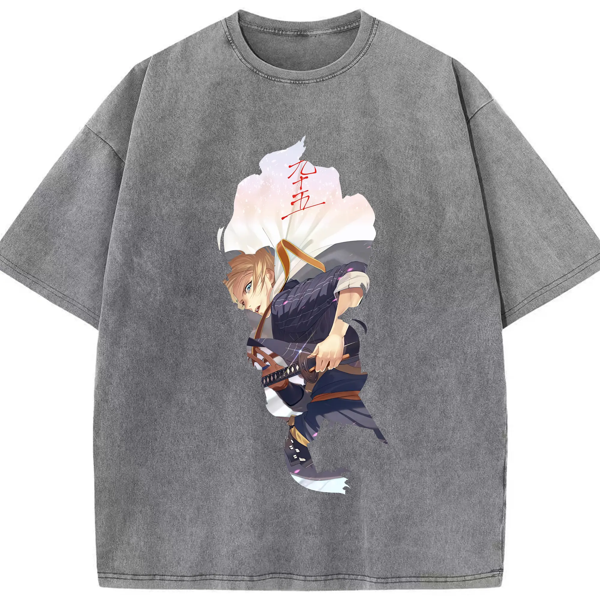 刀剣乱舞 グッズ,山姥切国広 - 綿100% ヴィンテージ風 半袖Tシャツ ・ 背面プリント ・ 柔らか肌触り ・ 通気性 快適 ・ スポーツ カジュアル 外出用