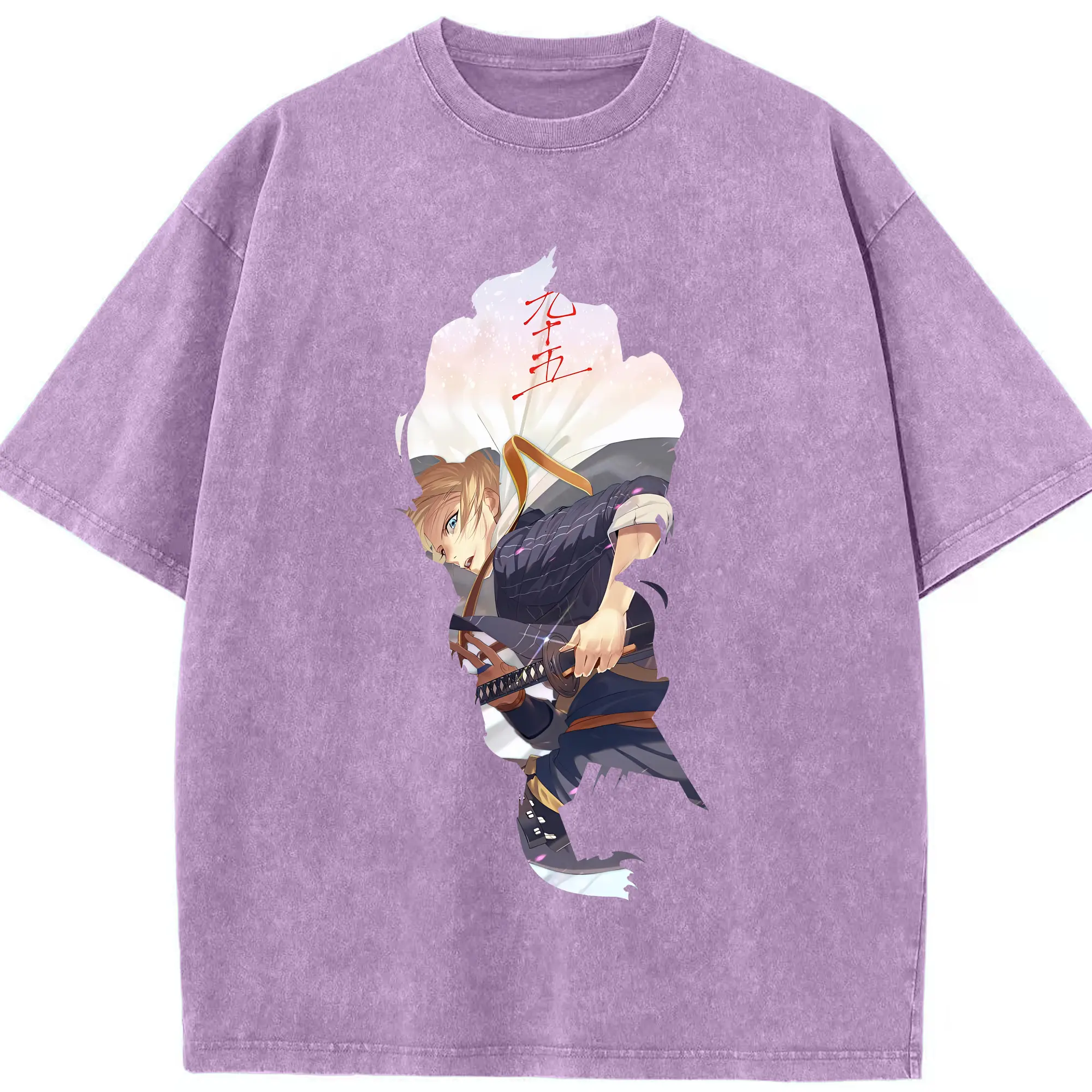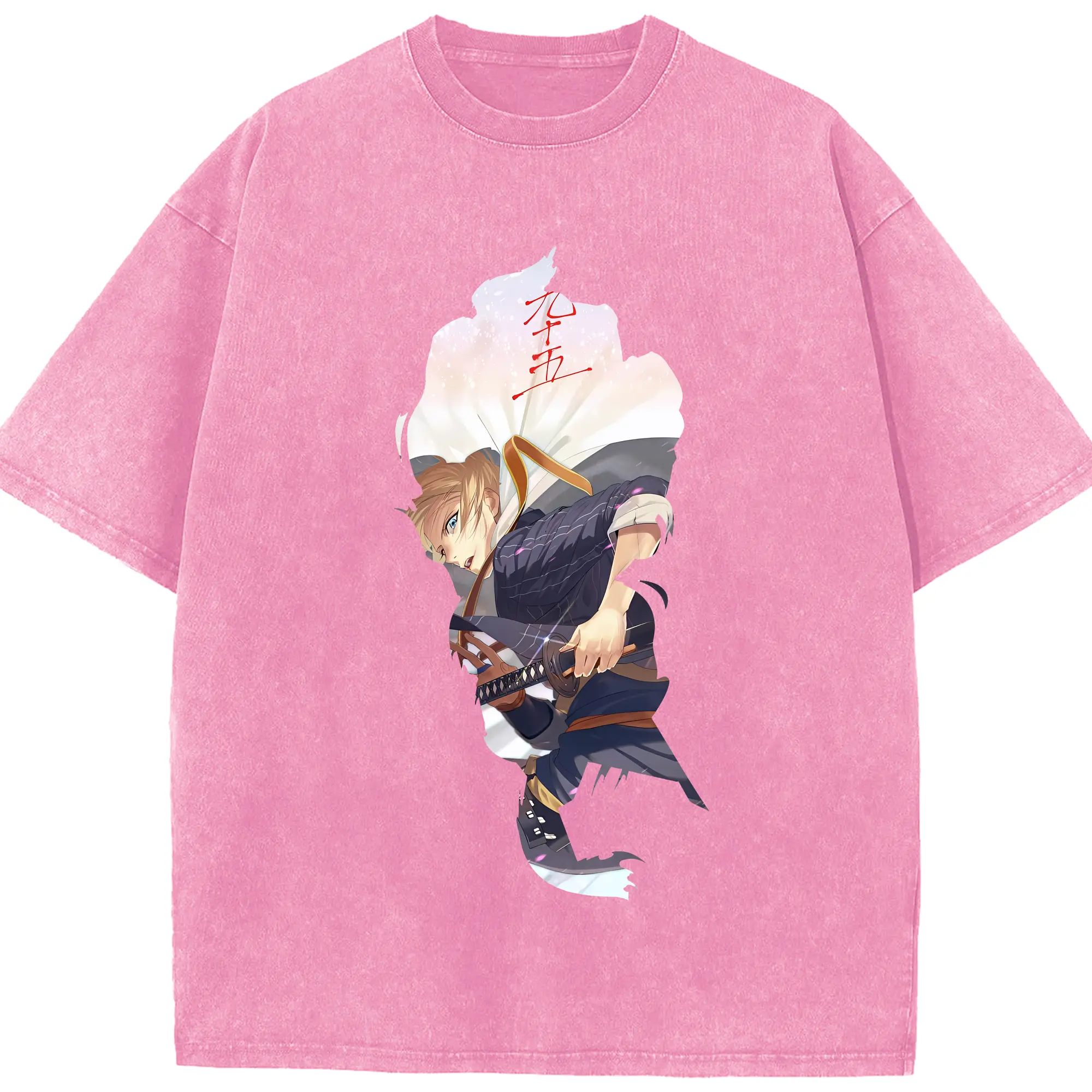 原 神 グッズ 雷電将軍 - 綿100% ヴィンテージ風 半袖Tシャツ ・ フロントプリント ・ 柔らか肌触り ・ 通気性 快適 ・ スポーツ カジュアル 外出用
