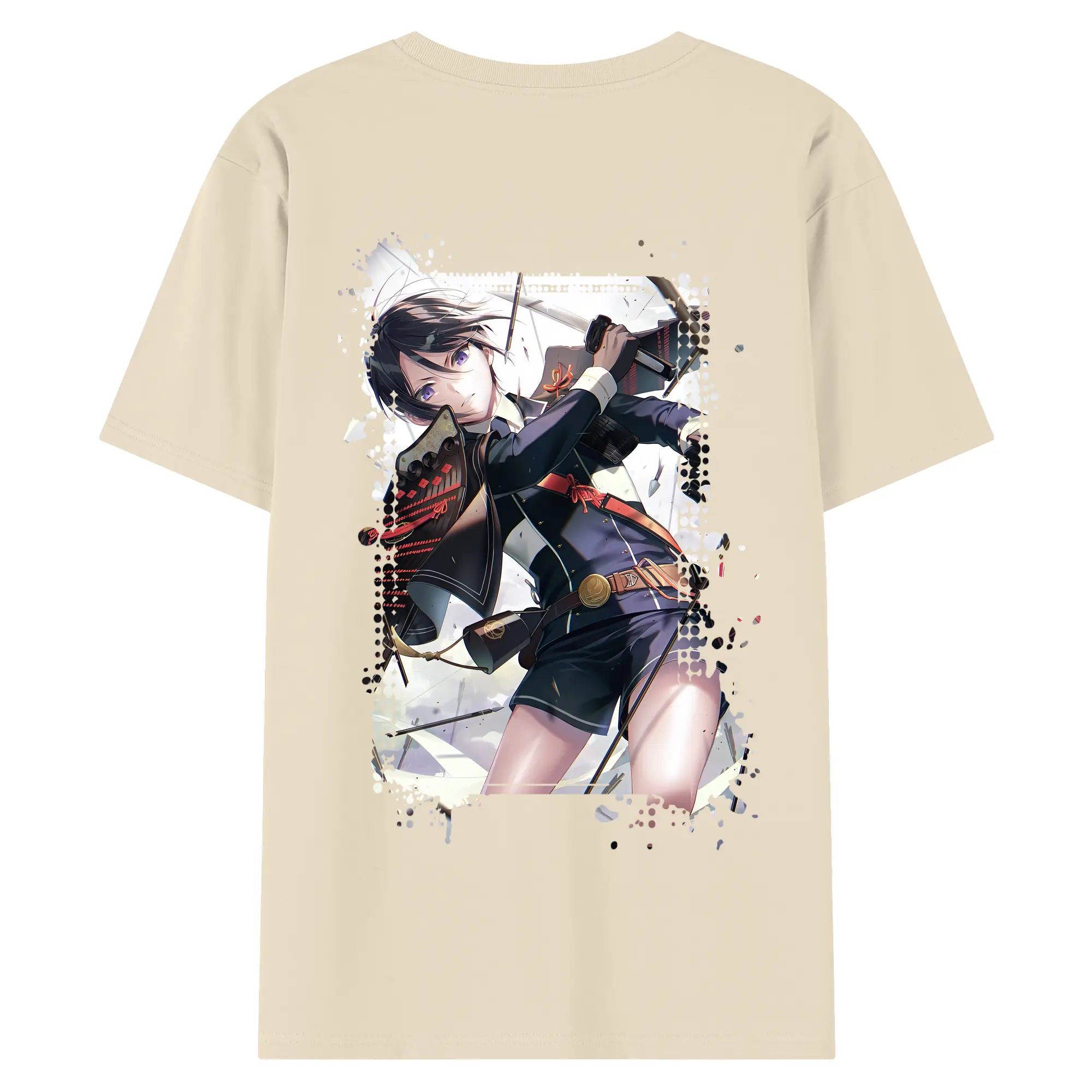刀剣乱舞 グッズ,薬研藤四郎 - 綿100% ヴィンテージ風 半袖Tシャツ ・ 背面プリント ・ 柔らか肌触り ・ 通気性 快適 ・ スポーツ カジュアル 外出用