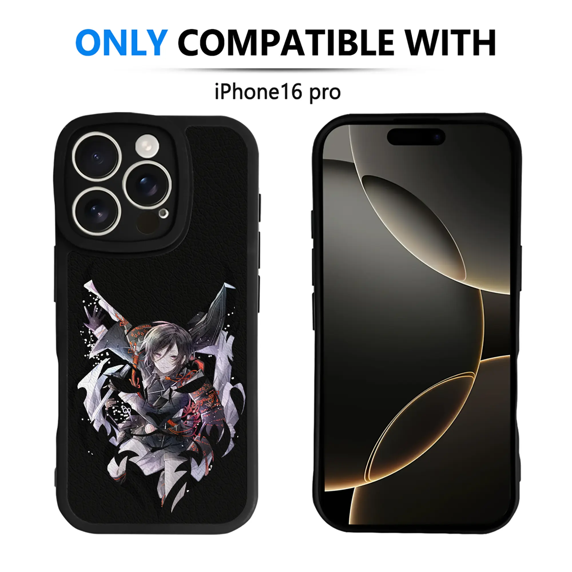 刀剣乱舞 グッズ,薬研藤四郎 - IPhone 16シリーズ対応 ・ シリコンスマホケース ・ レザー調 ・ 高精度フィット ・ 耐衝撃 ・ ワイヤレス充電対応 ・ 精密カット