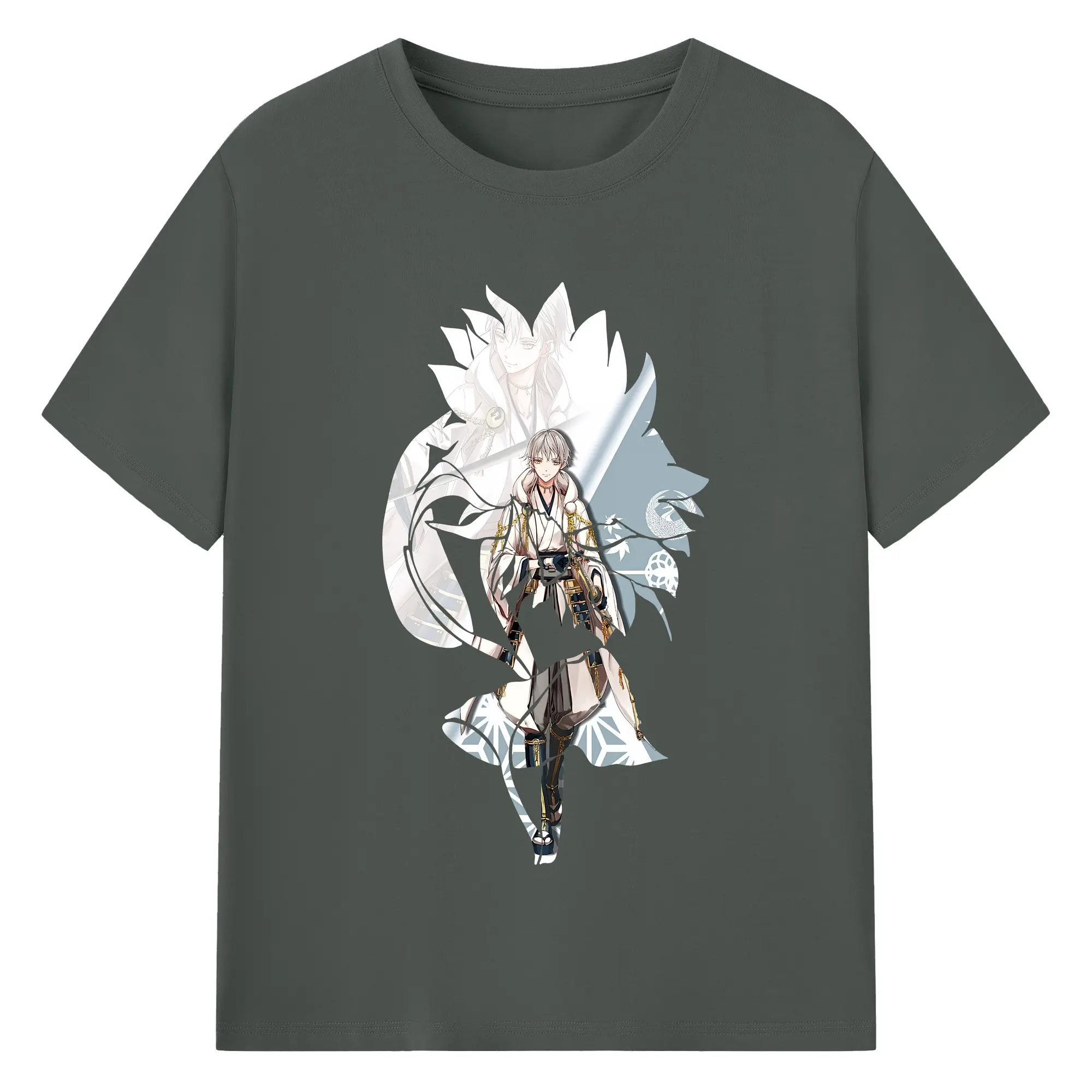 刀剣乱舞 グッズ,鶴丸国永 - 綿100% 半袖Tシャツ ・ バックプリント ・ 快適 通気性 ・ 日常使い 散歩 スポーツ用