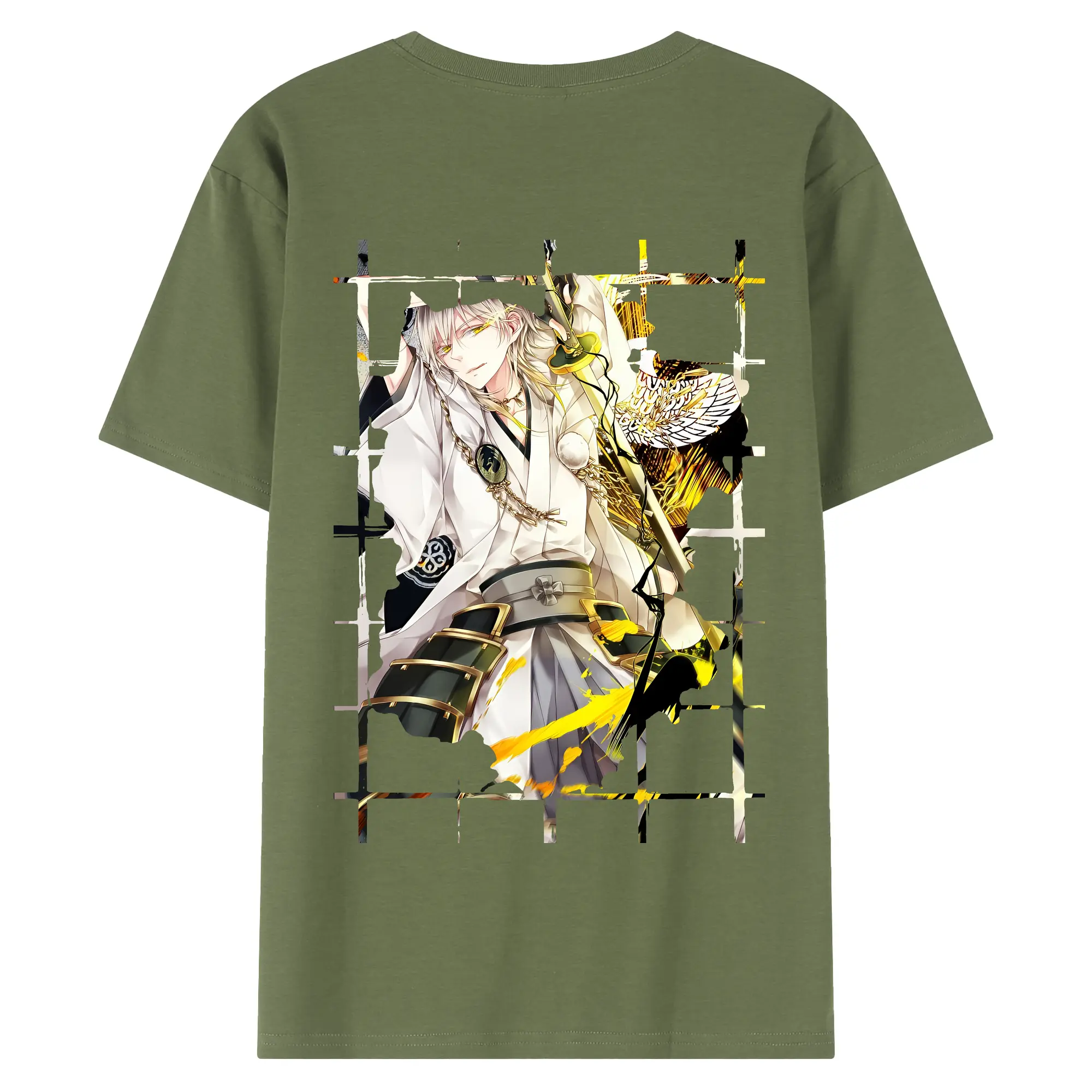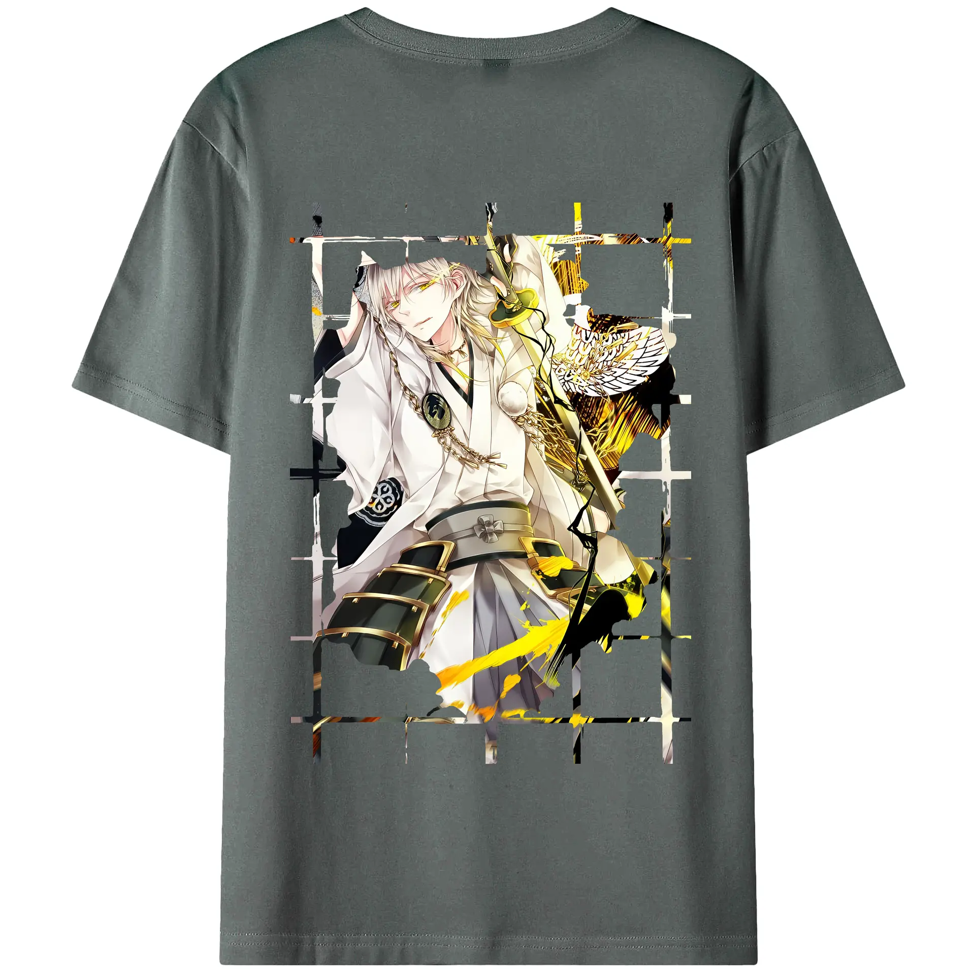 刀剣乱舞 グッズ,鶴丸国永 - 綿100% 半袖Tシャツ ・ フロントプリント ・ 快適 通気性 ・ 日常使い 散歩 スポーツ用