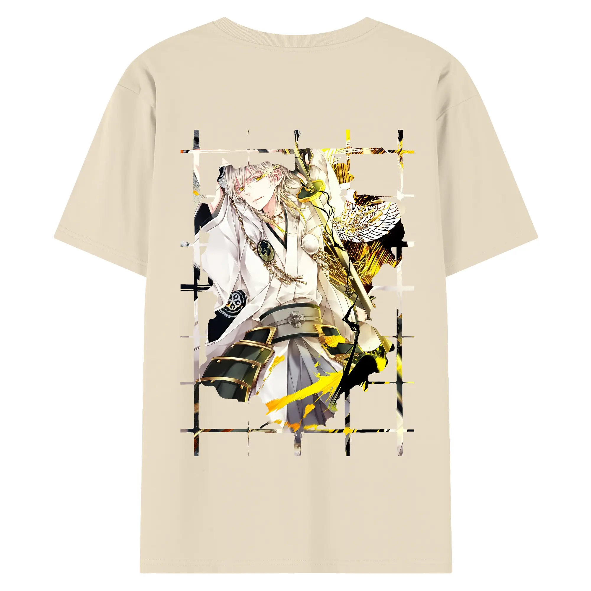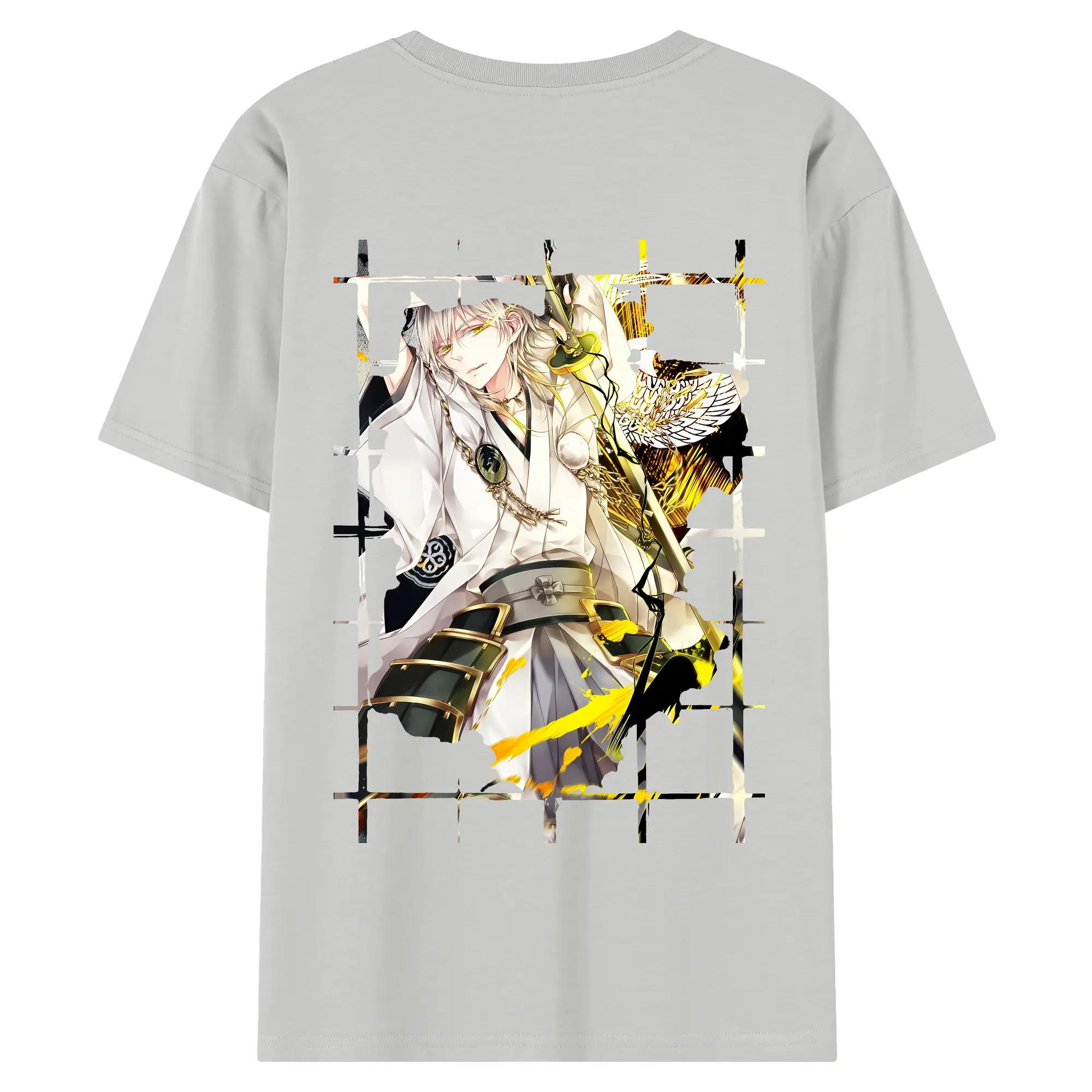 刀剣乱舞 グッズ,鶴丸国永 - 綿100% ヴィンテージ風 半袖Tシャツ ・ 背面プリント ・ 柔らか肌触り ・ 通気性 快適 ・ スポーツ カジュアル 外出用