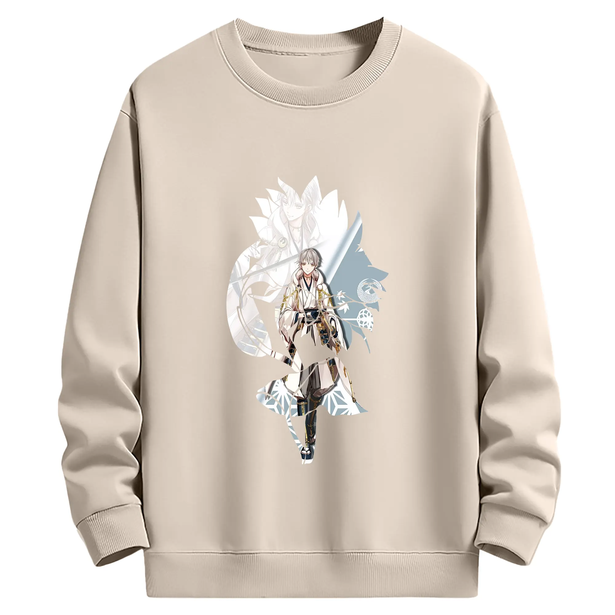 刀剣乱舞 グッズ,鶴丸国永 - 薄手 クルーネック スウェット 裏毛260g · ポリエステル 春秋向け カジュアル 男女兼用 · トレーナー デイリー スポーツ 散歩に最適