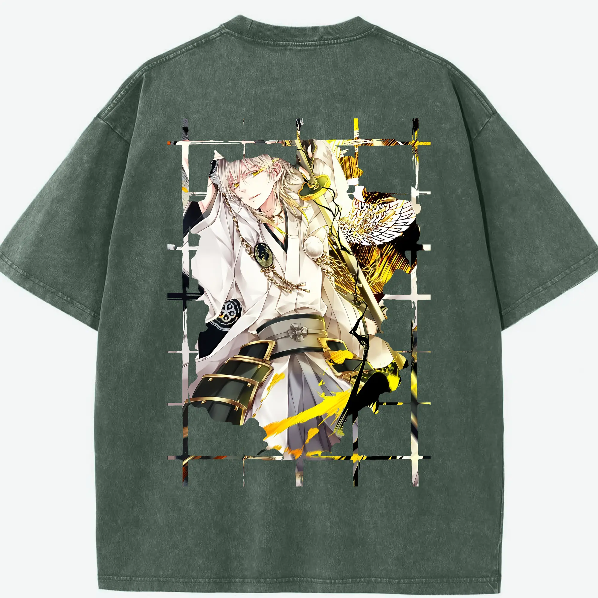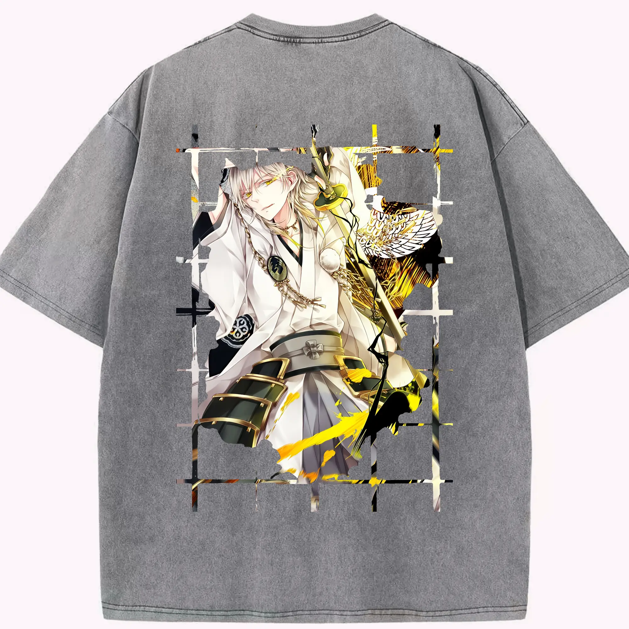 刀剣乱舞 グッズ,鶴丸国永 - 綿100% ヴィンテージ風 半袖Tシャツ ・ フロントプリント ・ 柔らか肌触り ・ 通気性 快適 ・ スポーツ カジュアル 外出用