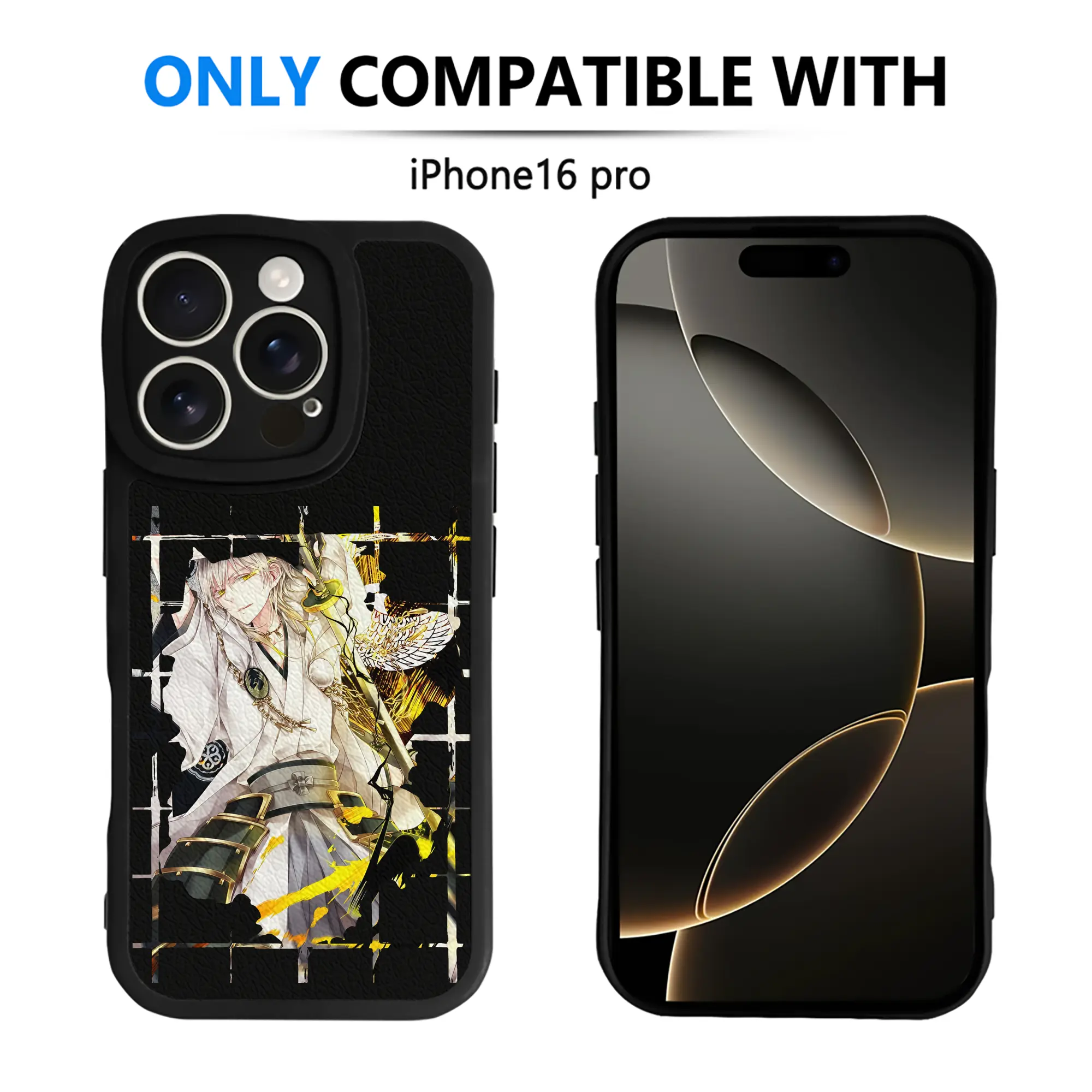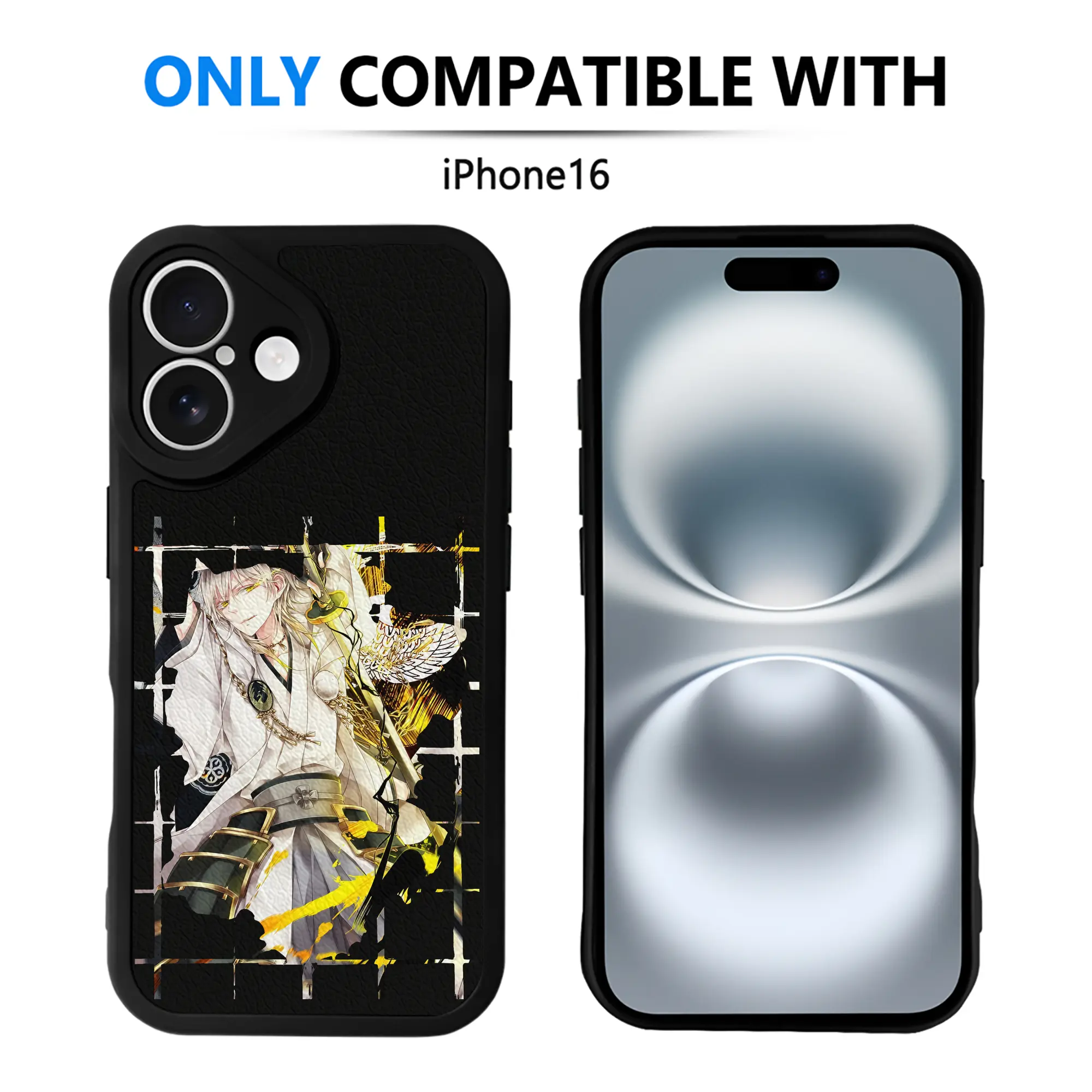 刀剣乱舞 グッズ,鶴丸国永 - IPhone 16シリーズ対応 ・ シリコンスマホケース ・ レザー調 ・ 高精度フィット ・ 耐衝撃 ・ ワイヤレス充電対応 ・ 精密カット