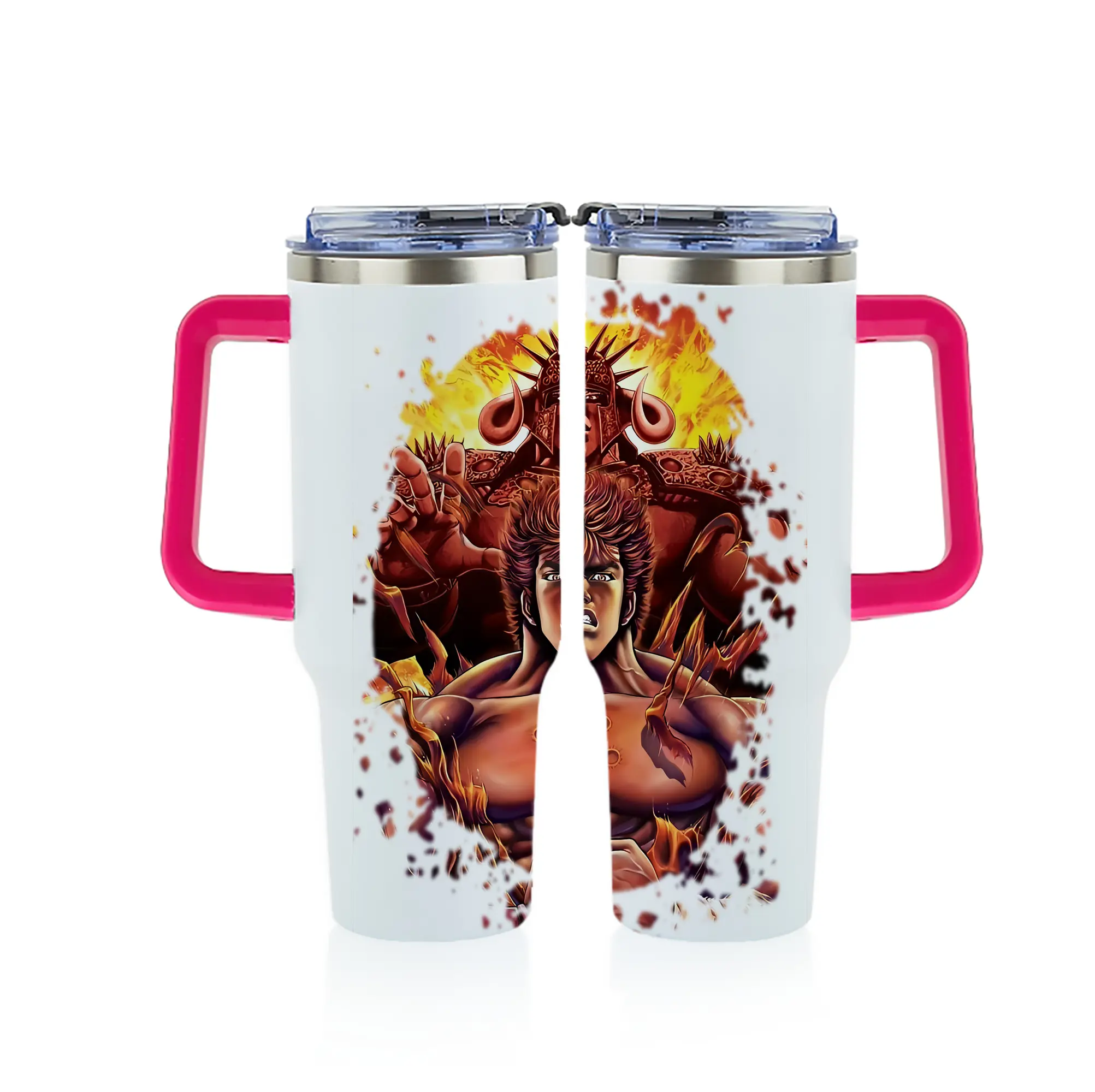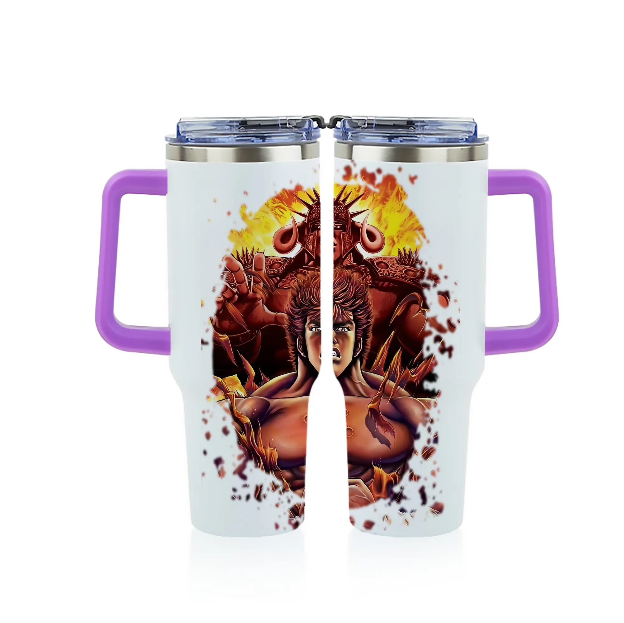 北斗の拳 グッズ,ケンシロウ - 1200mL フルプリント車用タンブラー ・ 304ステンレス 内側 ・ 201ステンレス 外側 ・ 保温 保冷 ・ 通勤 ドライブ アウトドア用