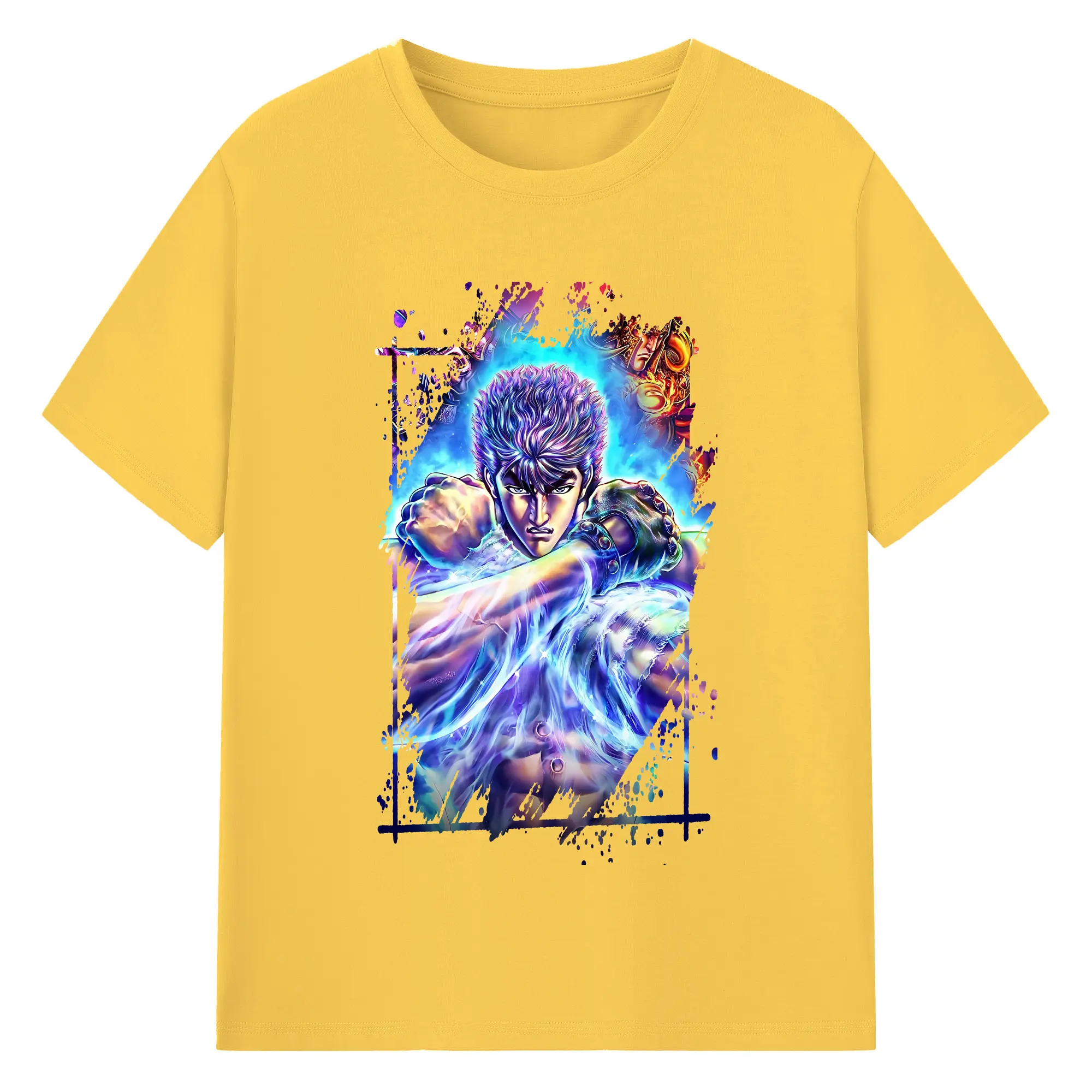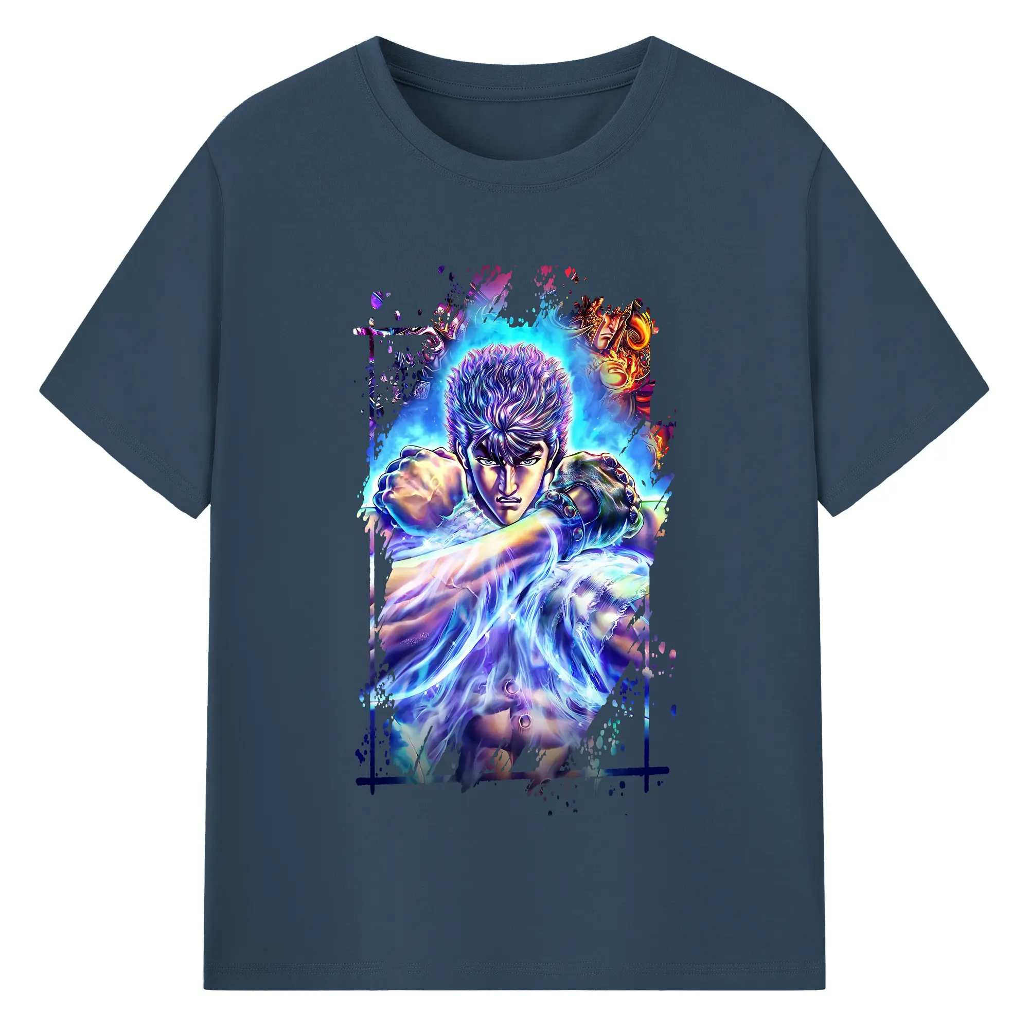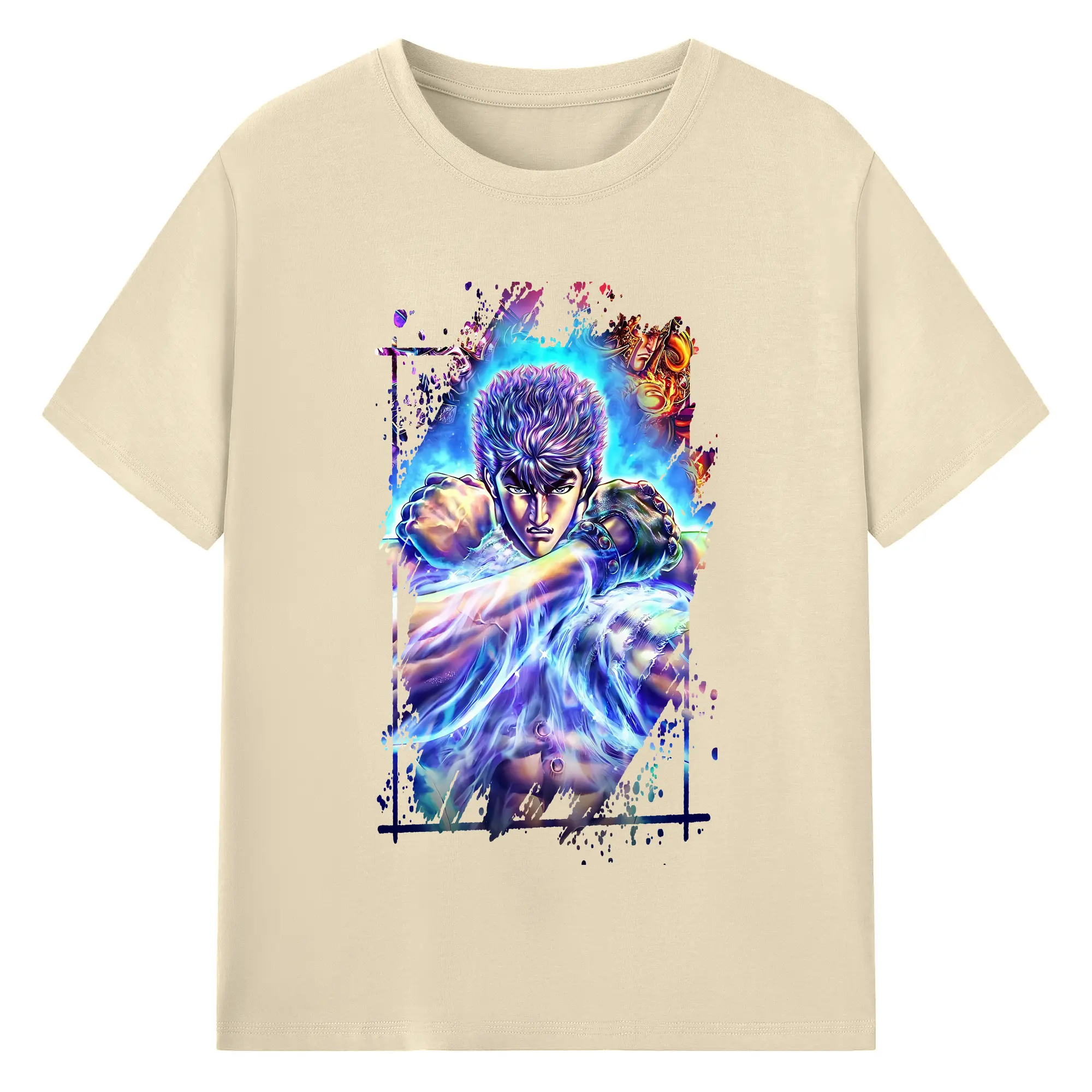 北斗の拳 グッズ,ケンシロウ - 綿100% ヴィンテージ風 半袖Tシャツ ・ フロントプリント ・ 柔らか肌触り ・ 通気性 快適 ・ スポーツ カジュアル 外出用