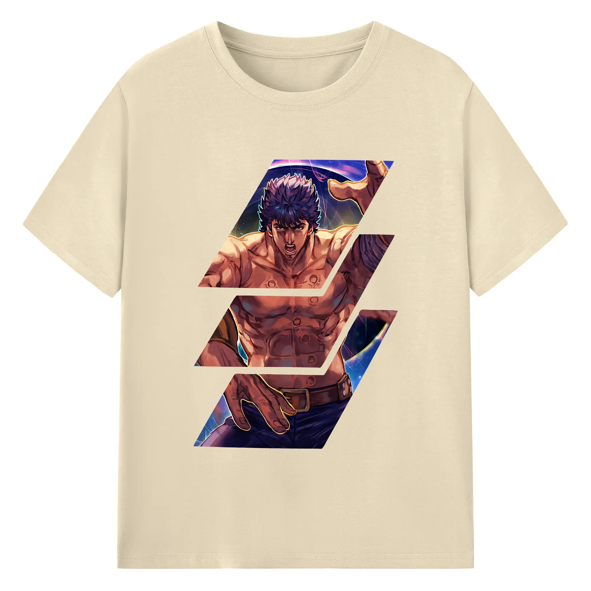 北斗の拳 グッズ,ケンシロウ - 綿100% ヴィンテージ風 半袖Tシャツ ・ フロントプリント ・ 柔らか肌触り ・ 通気性 快適 ・ スポーツ カジュアル 外出用
