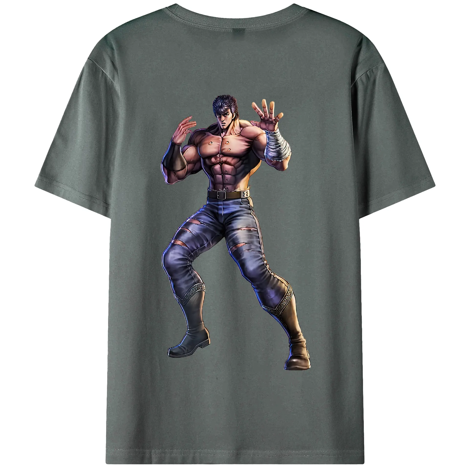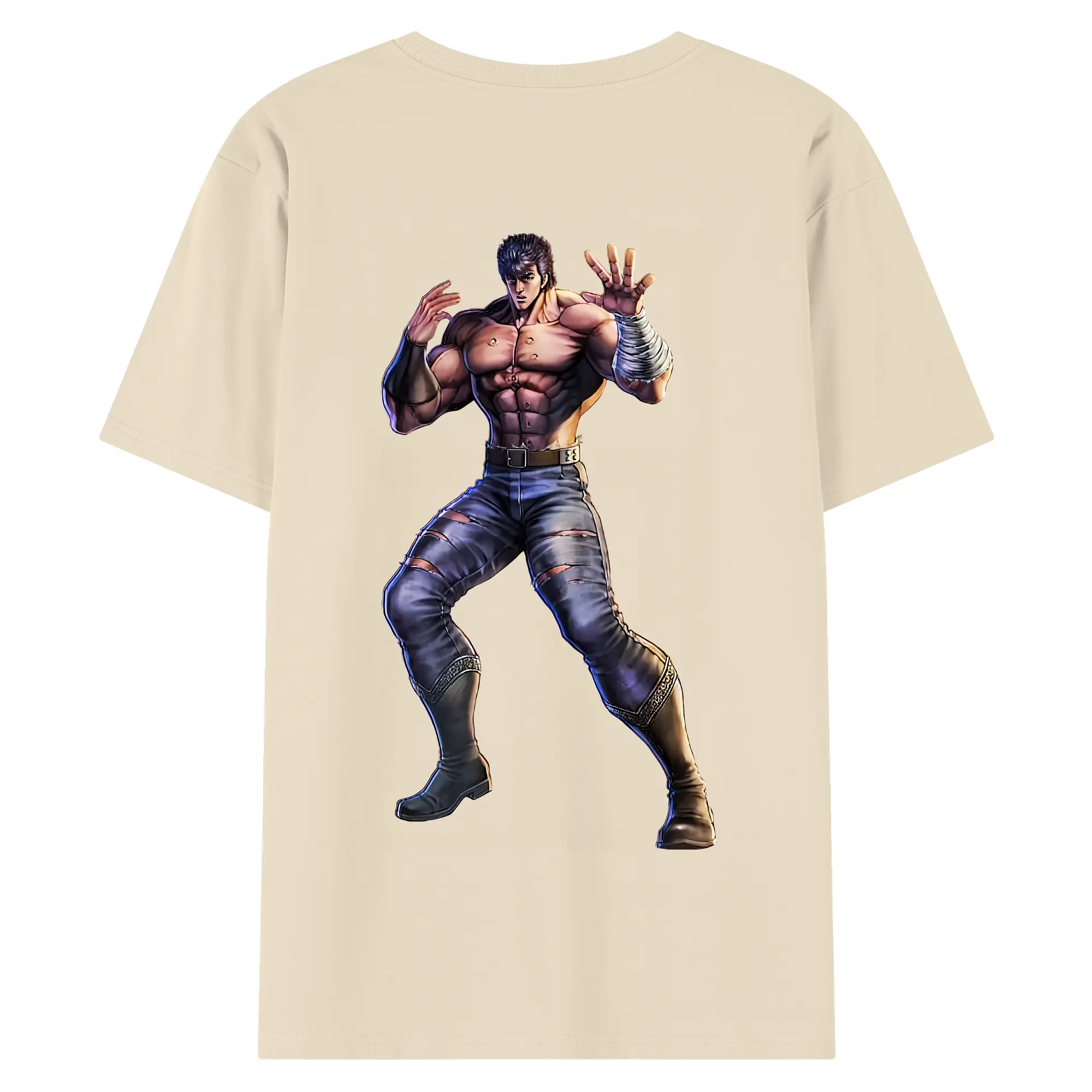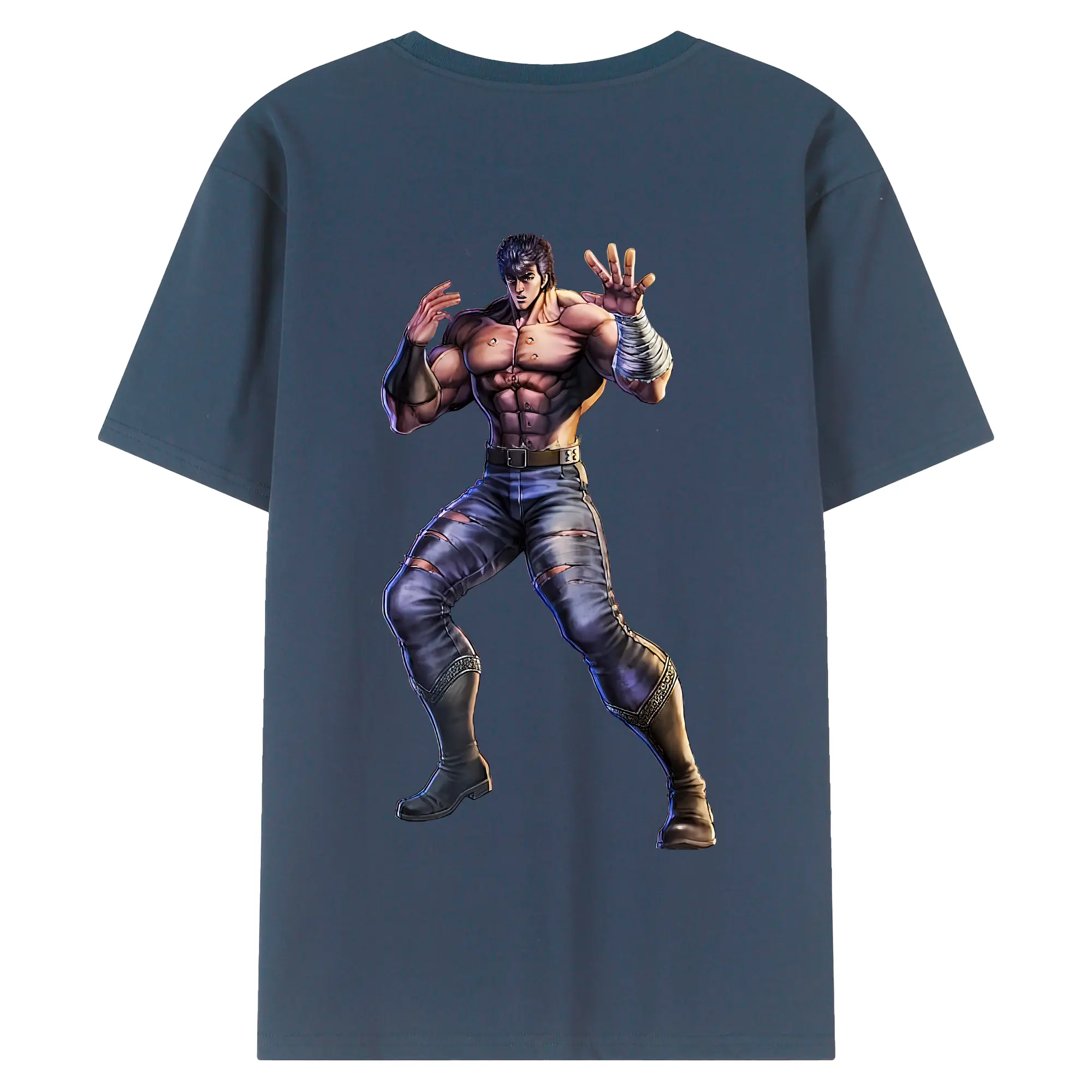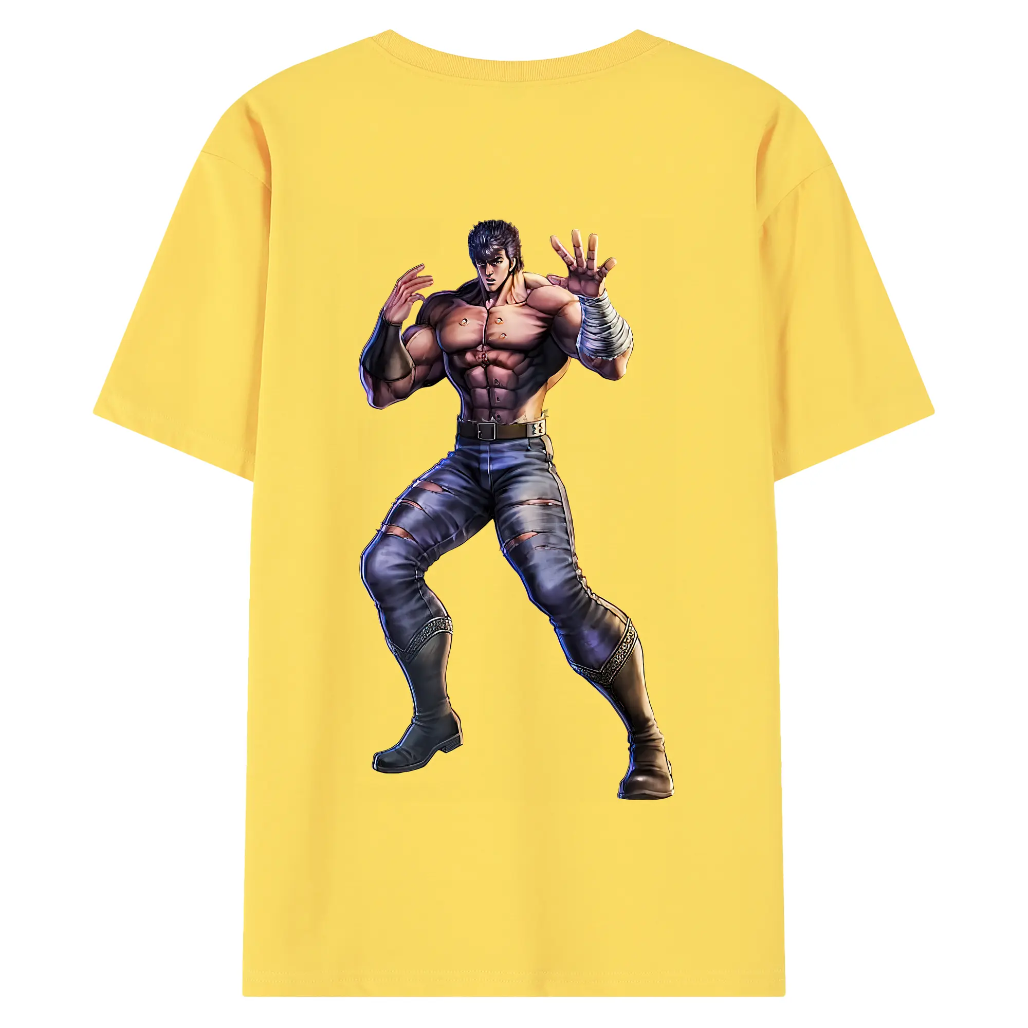 北斗の拳 グッズ,ケンシロウ - 綿100% ヴィンテージ風 半袖Tシャツ ・ 背面プリント ・ 柔らか肌触り ・ 通気性 快適 ・ スポーツ カジュアル 外出用