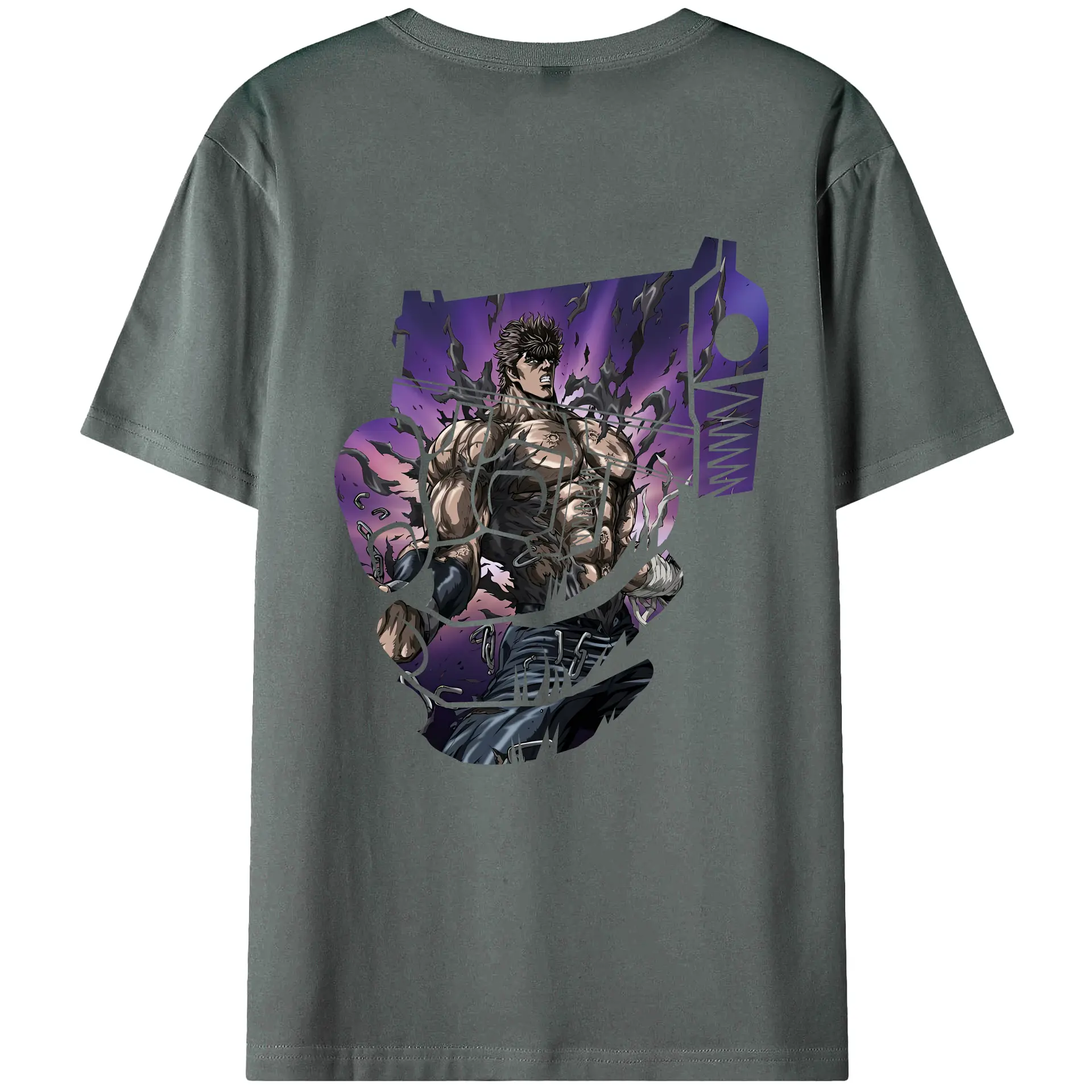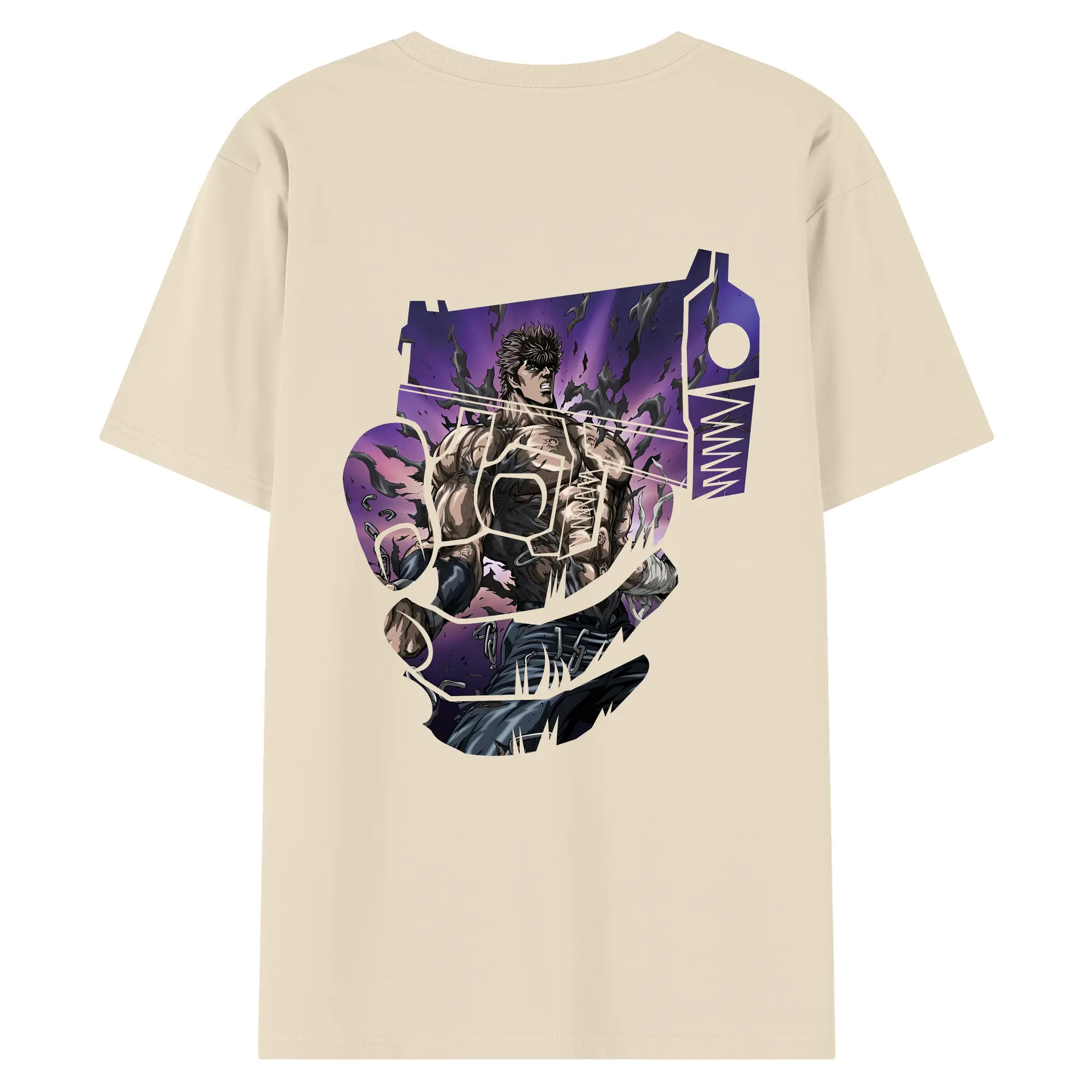 北斗の拳 グッズ,ケンシロウ - 綿100% ヴィンテージ風 半袖Tシャツ ・ 背面プリント ・ 柔らか肌触り ・ 通気性 快適 ・ スポーツ カジュアル 外出用