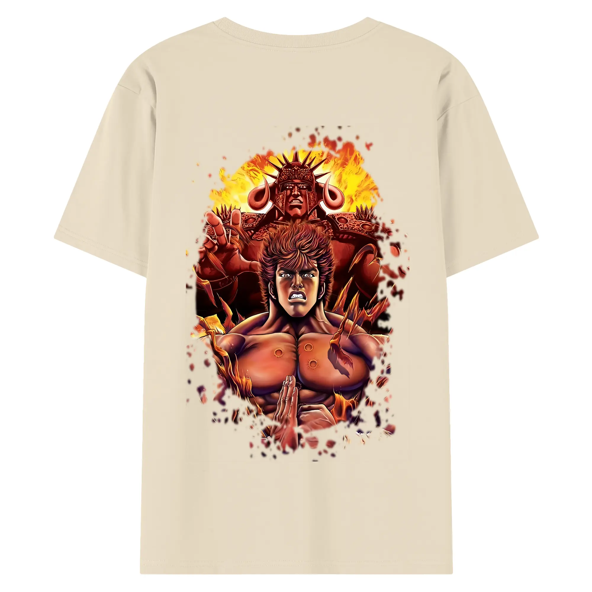 北斗の拳 グッズ,ケンシロウ - 綿100% ヴィンテージ風 半袖Tシャツ ・ フロントプリント ・ 柔らか肌触り ・ 通気性 快適 ・ スポーツ カジュアル 外出用
