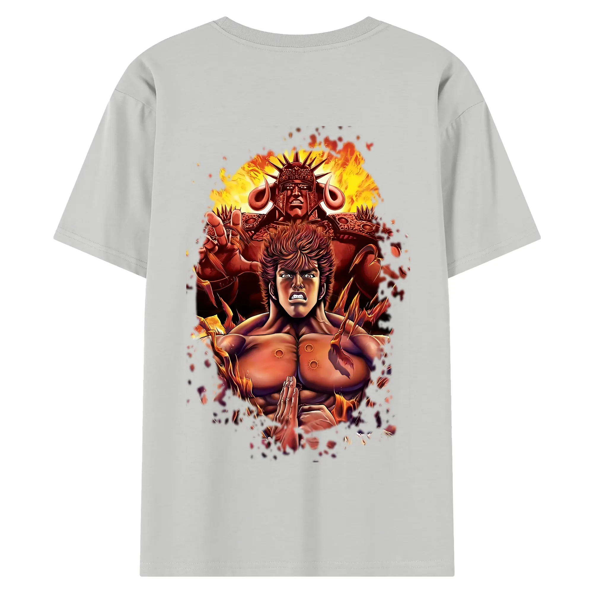 北斗の拳 グッズ,ケンシロウ - 綿100% ヴィンテージ風 半袖Tシャツ ・ 背面プリント ・ 柔らか肌触り ・ 通気性 快適 ・ スポーツ カジュアル 外出用