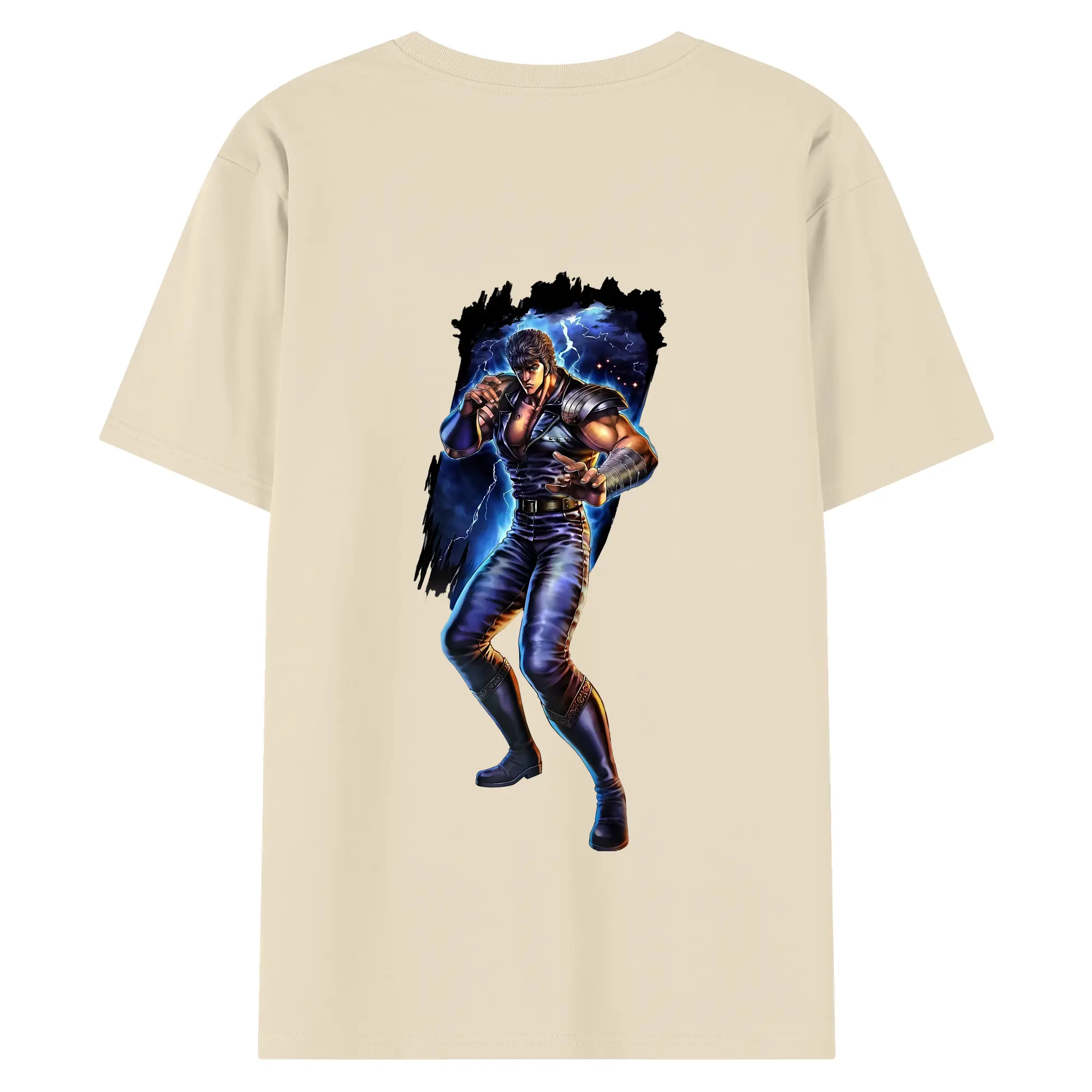 北斗の拳 グッズ,ケンシロウ - 綿100% ヴィンテージ風 半袖Tシャツ ・ フロントプリント ・ 柔らか肌触り ・ 通気性 快適 ・ スポーツ カジュアル 外出用