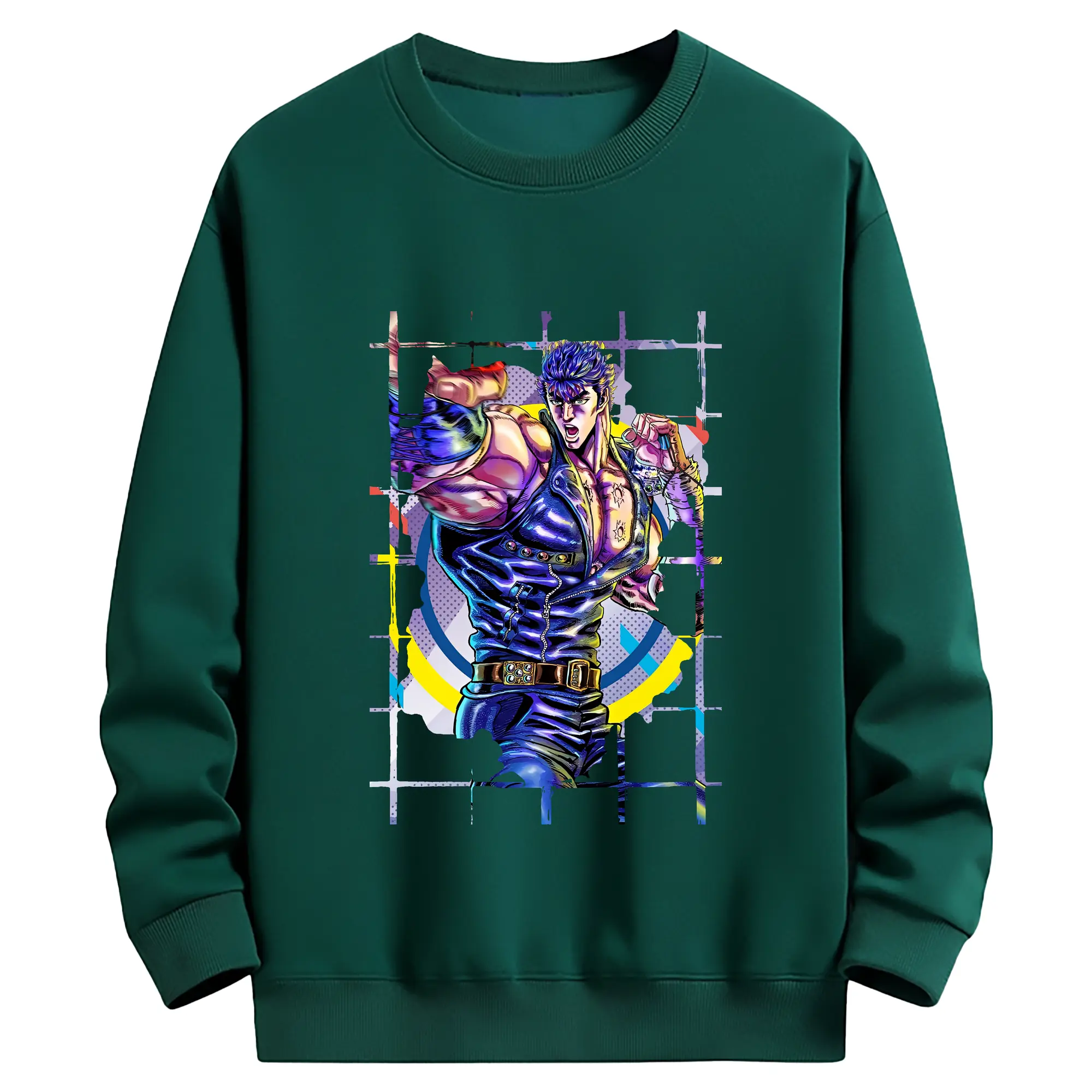 北斗の拳 グッズ,ケンシロウ - 薄手 クルーネック スウェット 裏毛260g · ポリエステル 春秋向け カジュアル 男女兼用 · トレーナー デイリー スポーツ 散歩に最適
