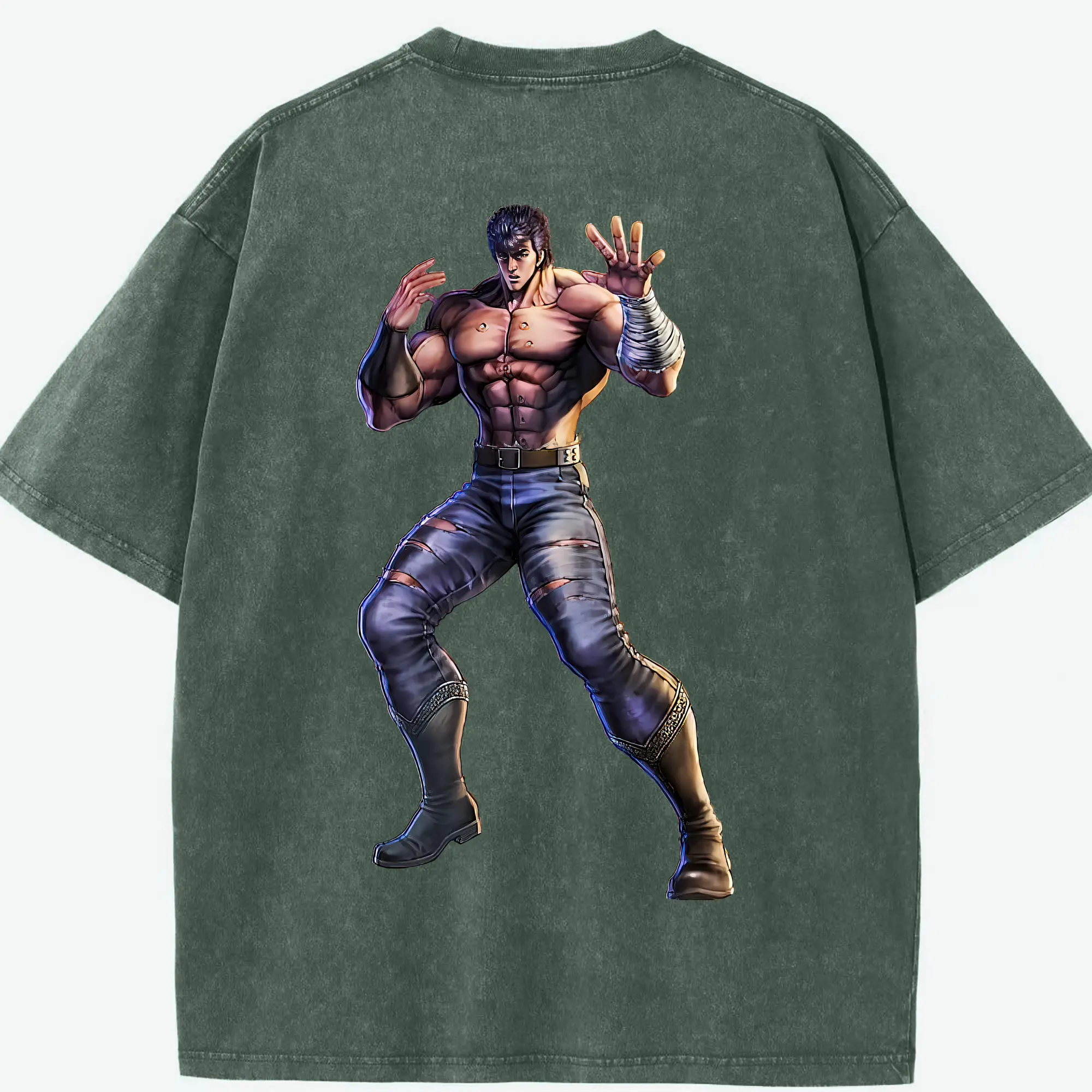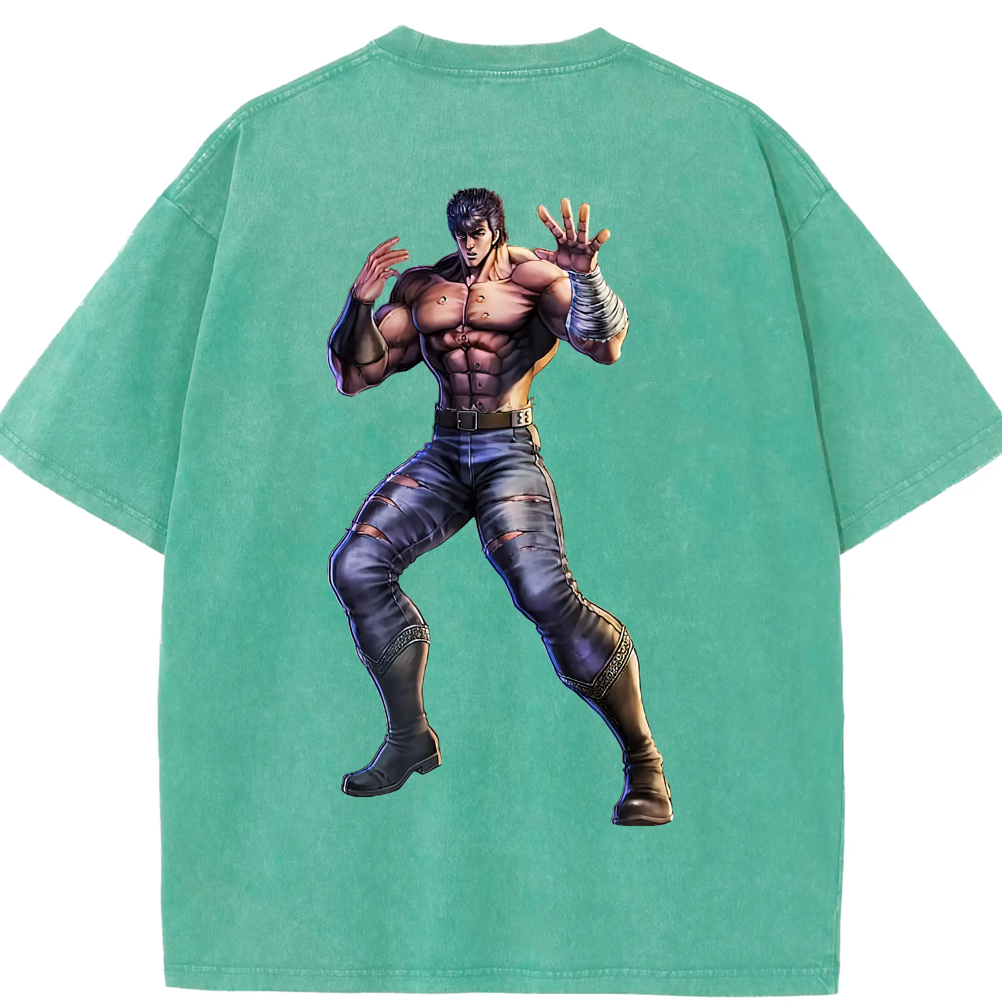 北斗の拳 グッズ,ケンシロウ - 綿100% ヴィンテージ風 半袖Tシャツ ・ フロントプリント ・ 柔らか肌触り ・ 通気性 快適 ・ スポーツ カジュアル 外出用
