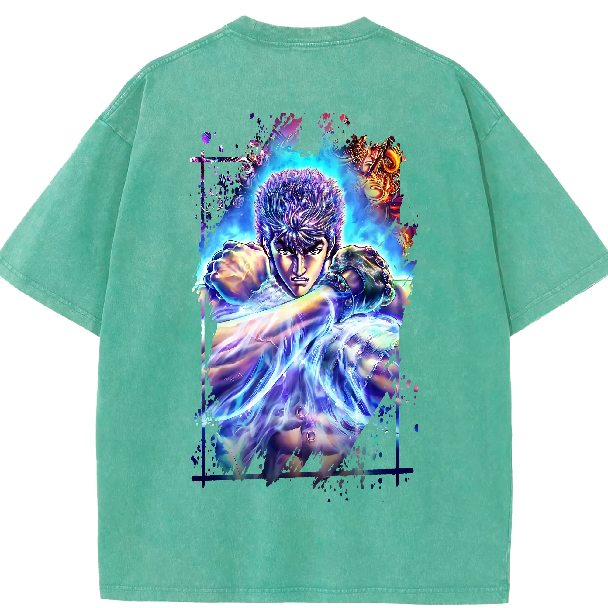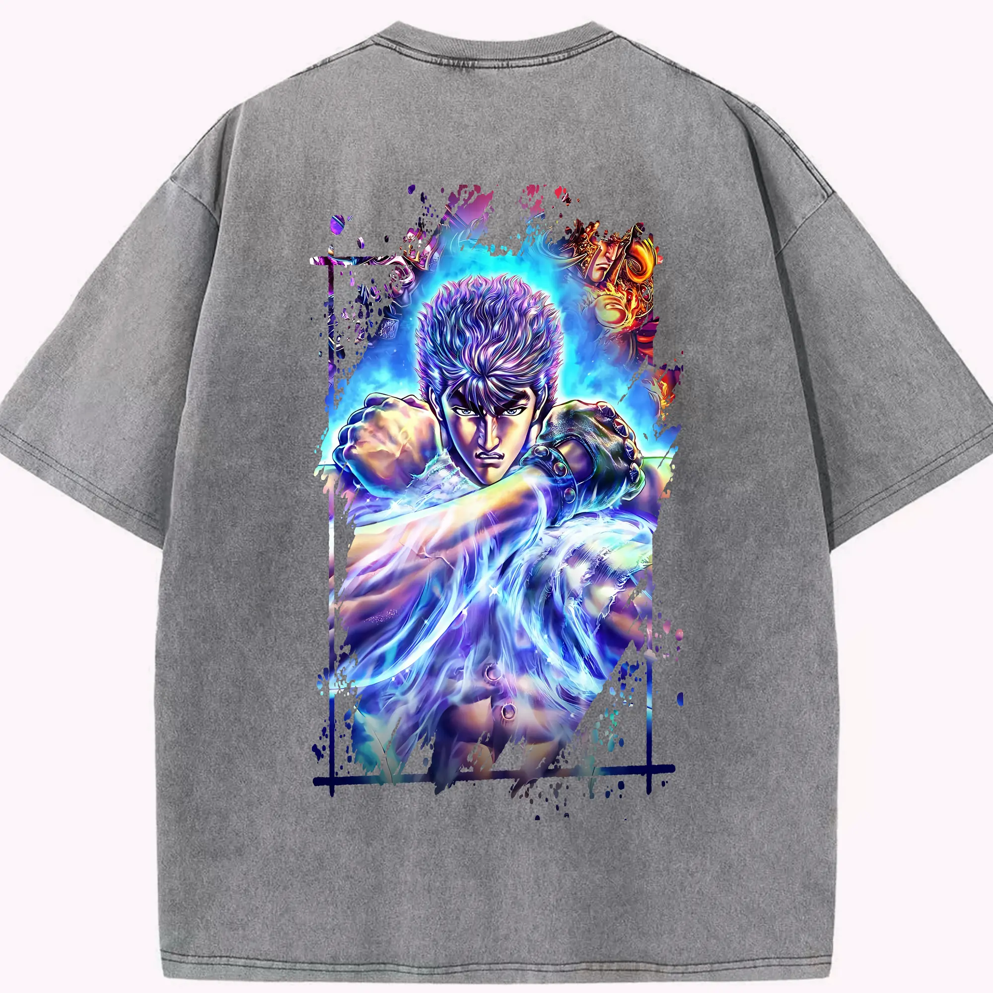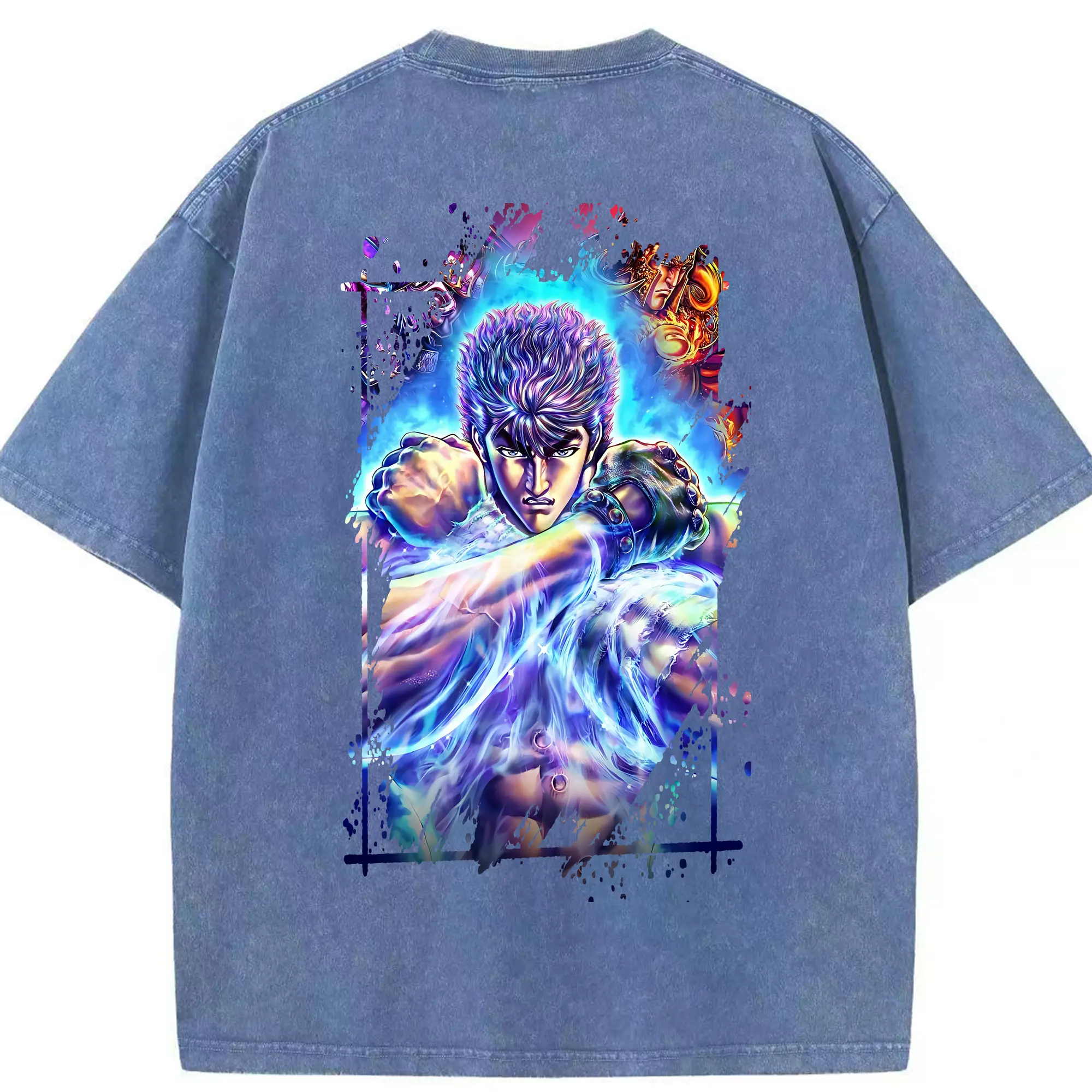 北斗の拳 グッズ,ケンシロウ - 綿100% ヴィンテージ風 半袖Tシャツ ・ フロントプリント ・ 柔らか肌触り ・ 通気性 快適 ・ スポーツ カジュアル 外出用