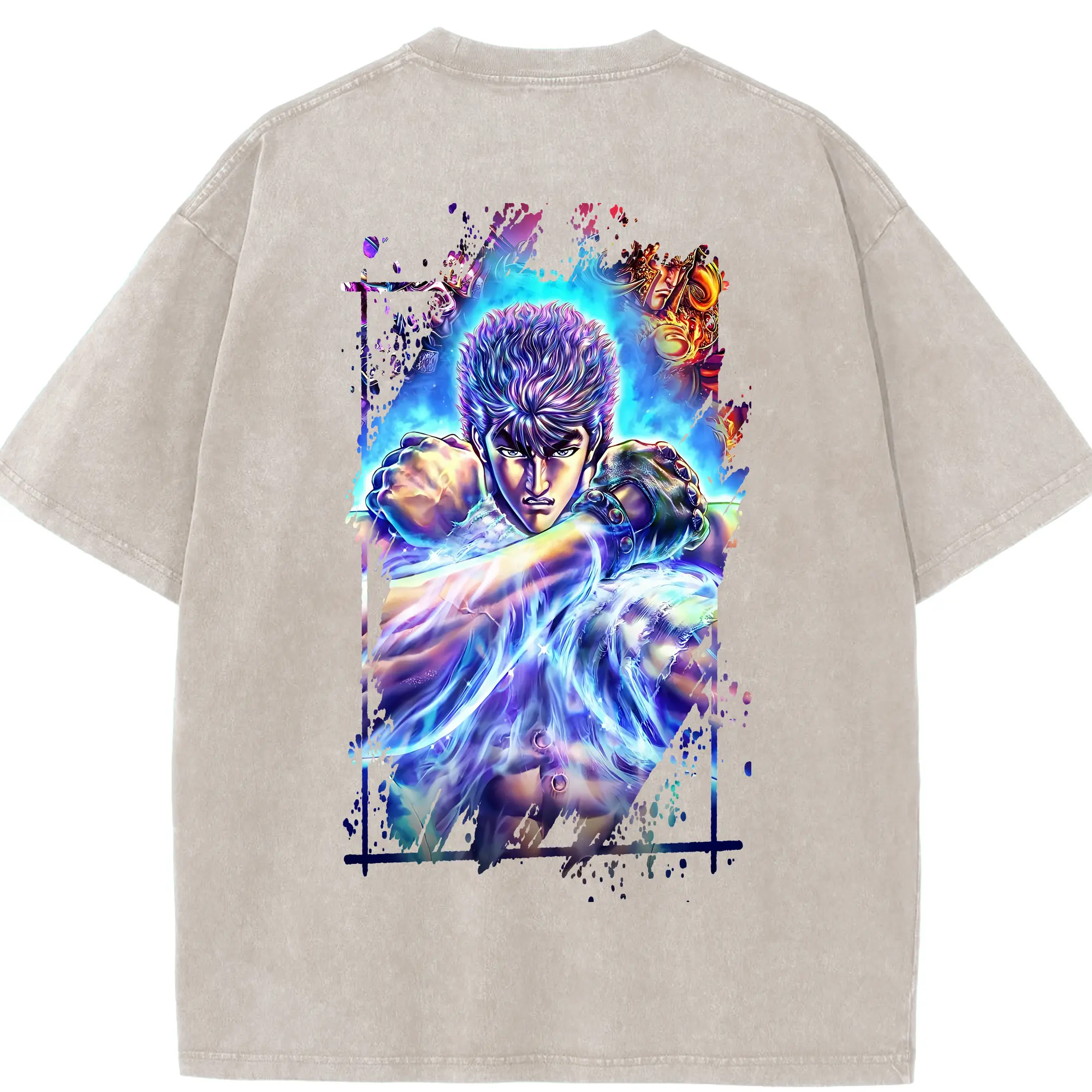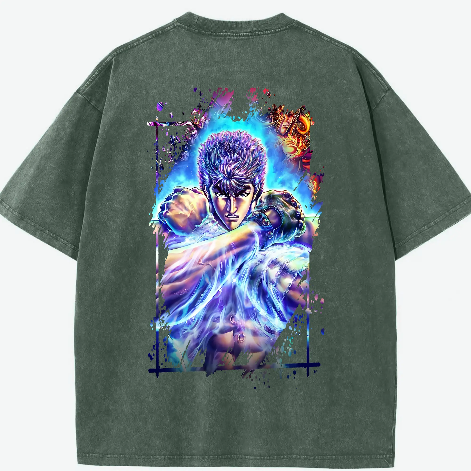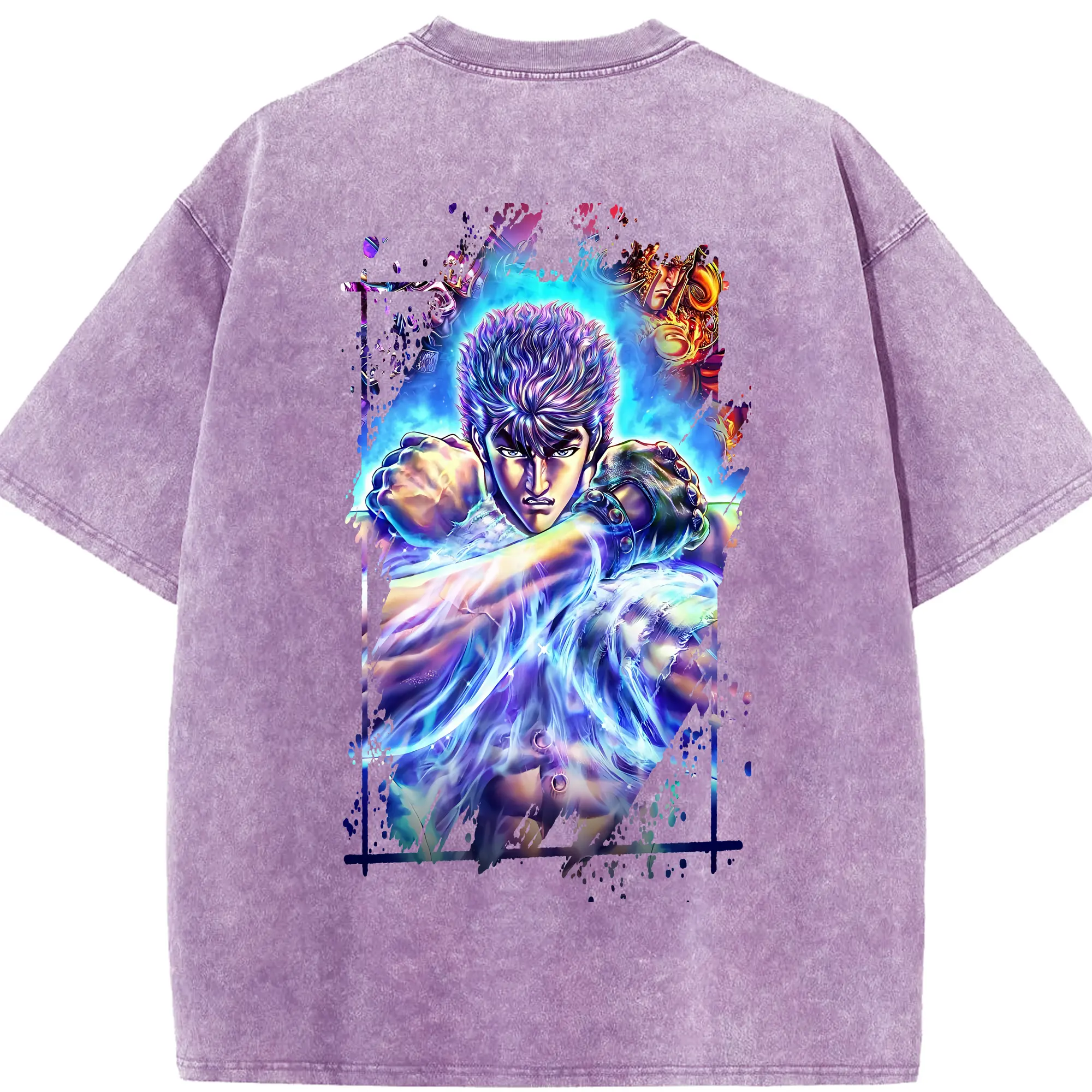 北斗の拳 グッズ,ケンシロウ - 綿100% ヴィンテージ風 半袖Tシャツ ・ フロントプリント ・ 柔らか肌触り ・ 通気性 快適 ・ スポーツ カジュアル 外出用