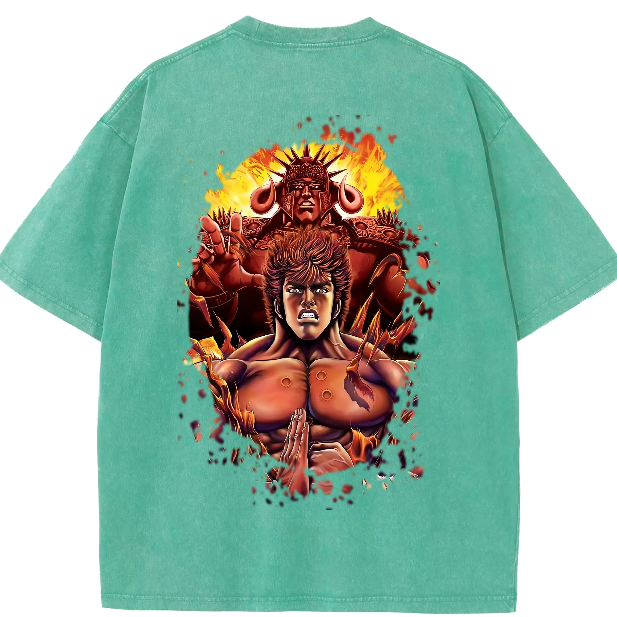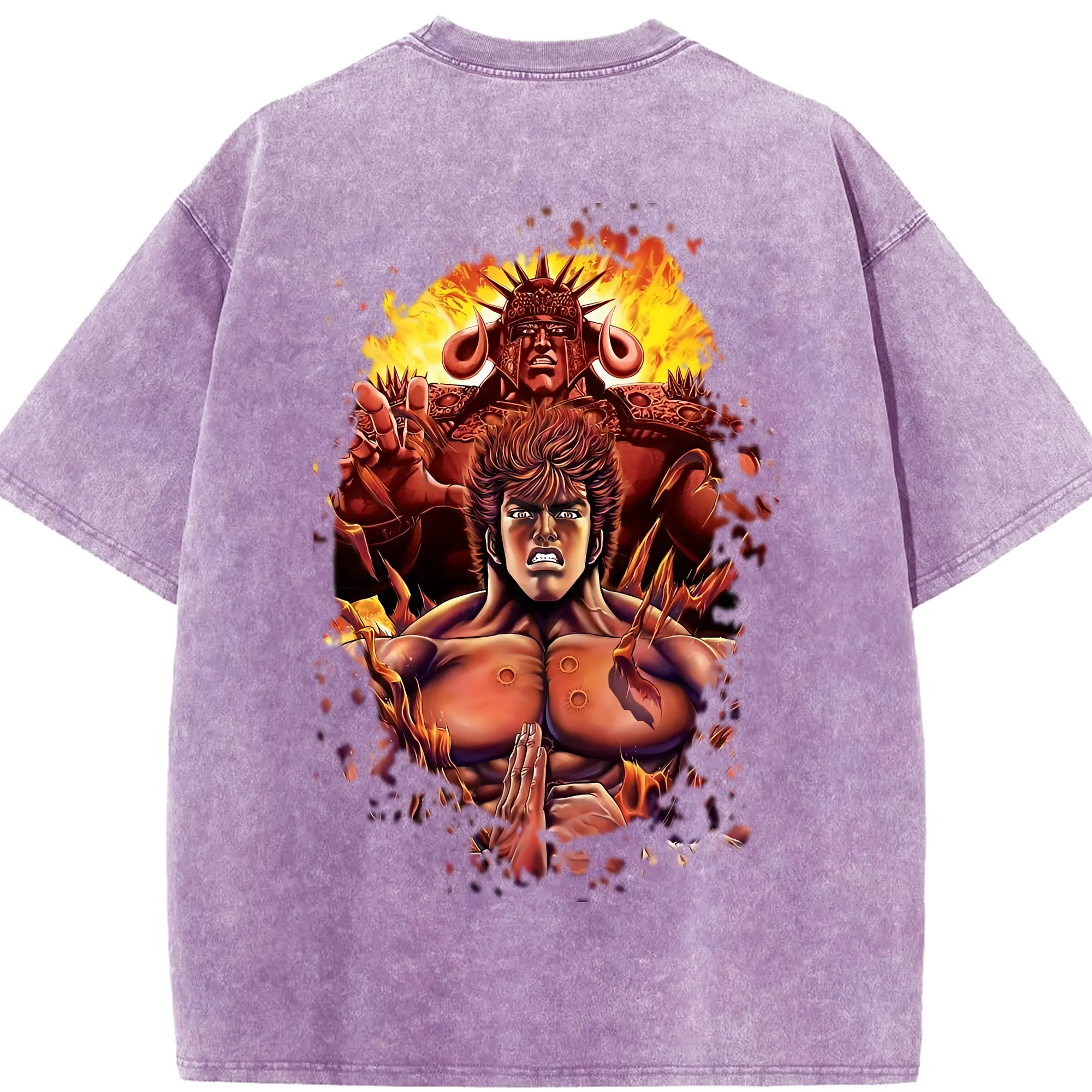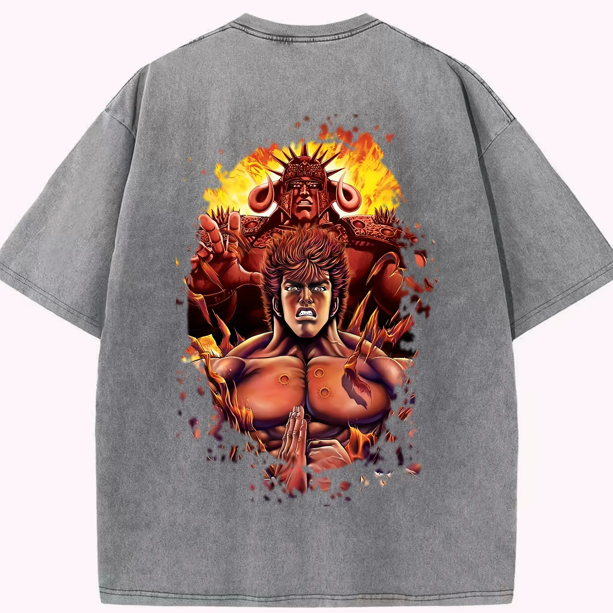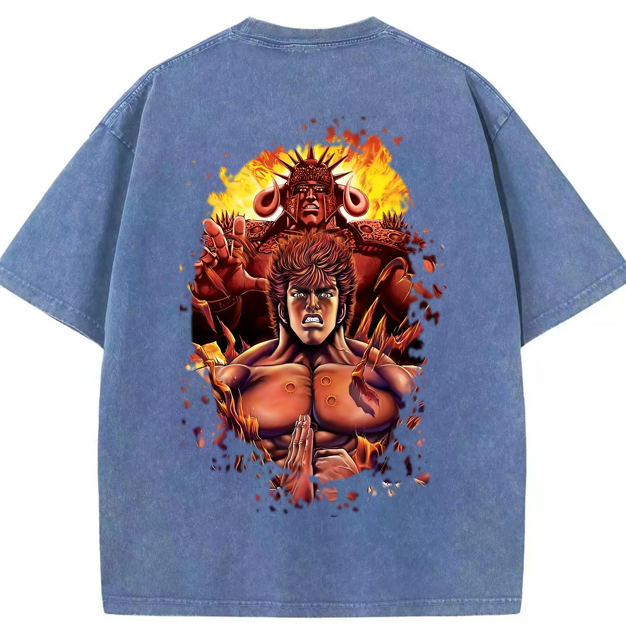 北斗の拳 グッズ,ケンシロウ - 綿100% ヴィンテージ風 半袖Tシャツ ・ フロントプリント ・ 柔らか肌触り ・ 通気性 快適 ・ スポーツ カジュアル 外出用