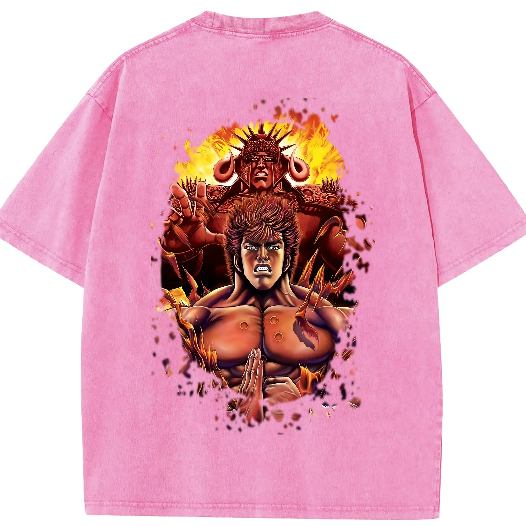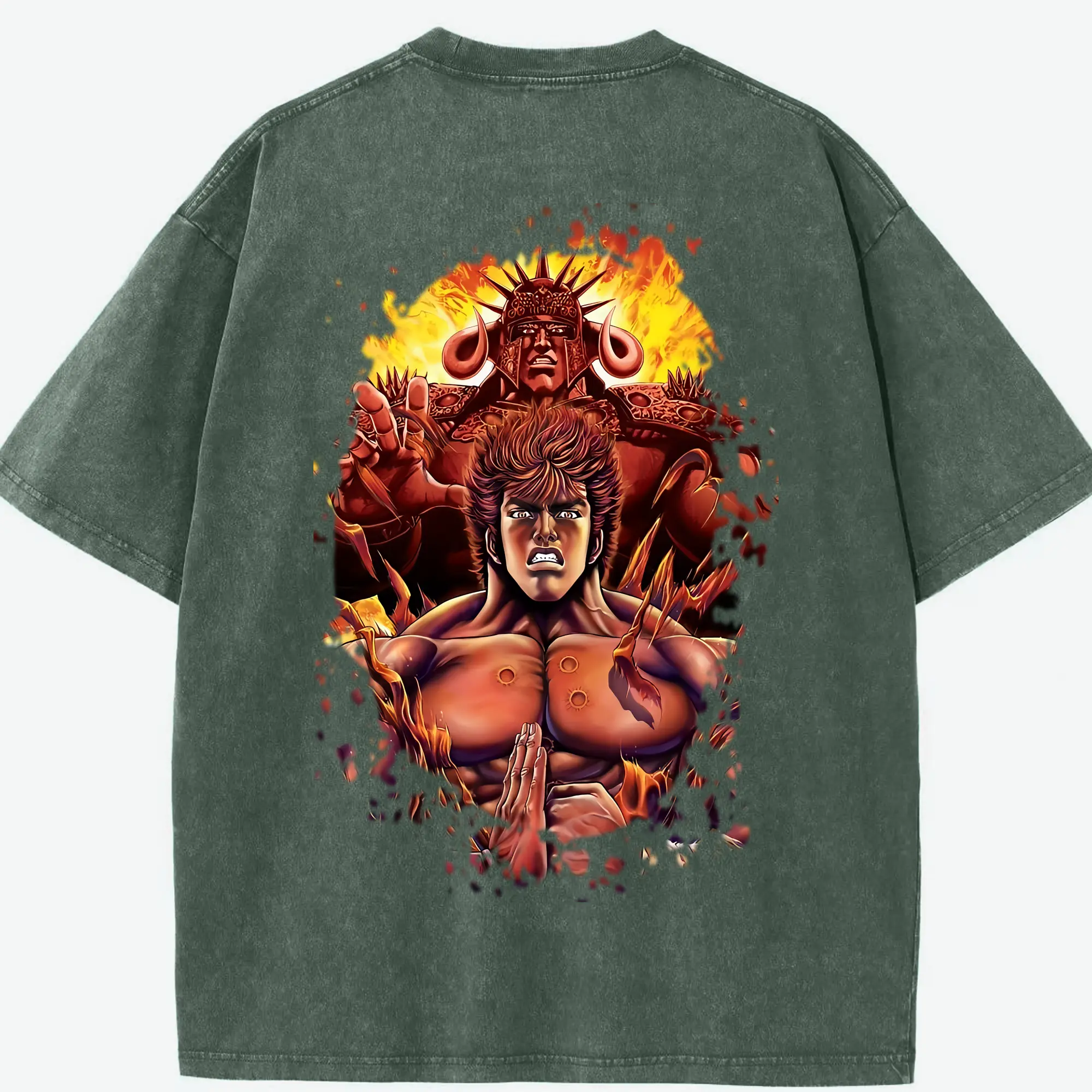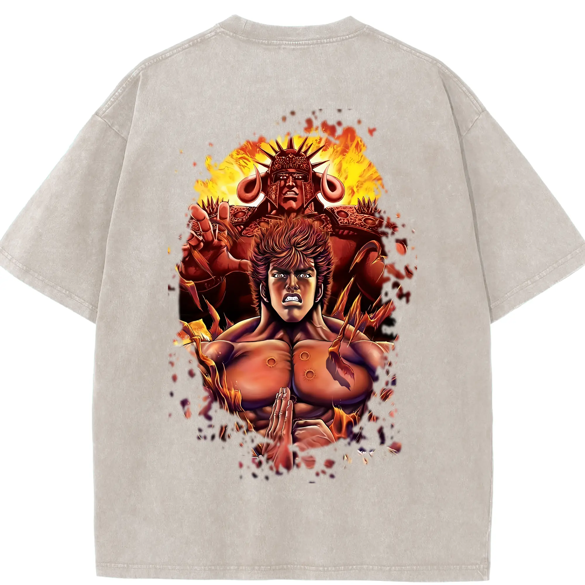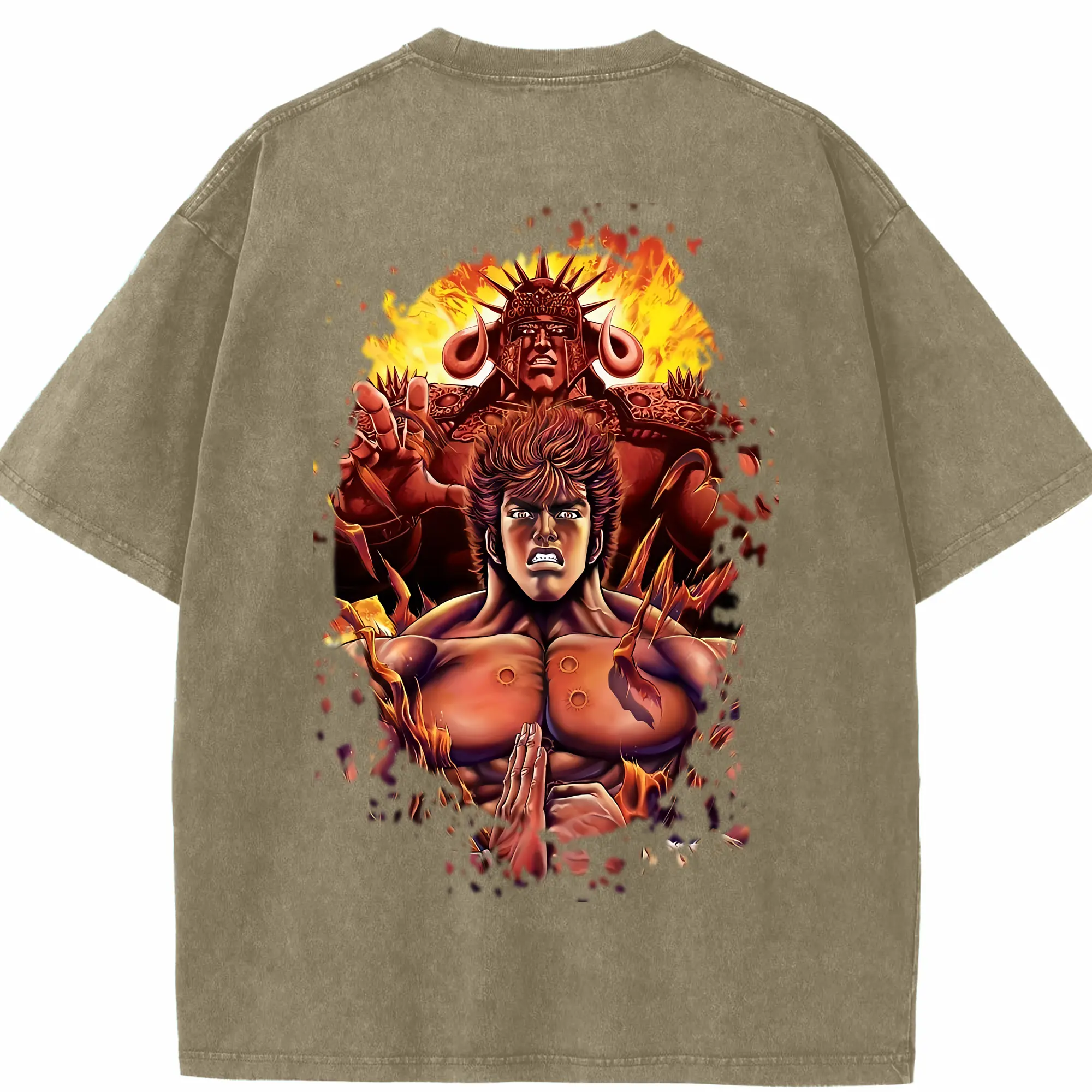 北斗の拳 グッズ,ケンシロウ - 綿100% ヴィンテージ風 半袖Tシャツ ・ フロントプリント ・ 柔らか肌触り ・ 通気性 快適 ・ スポーツ カジュアル 外出用