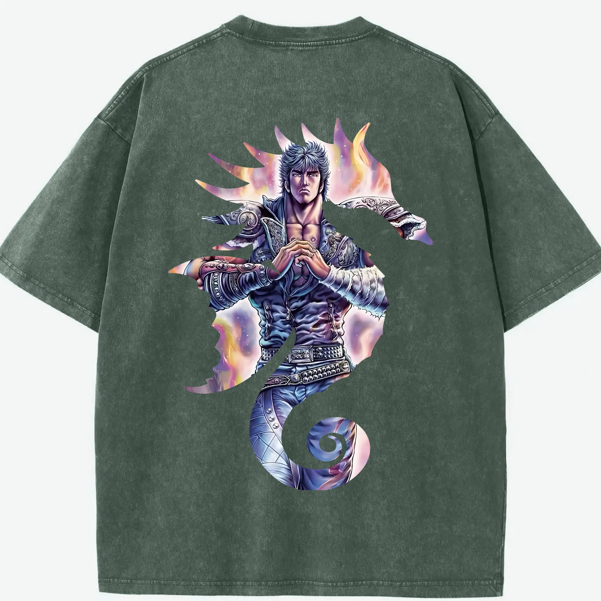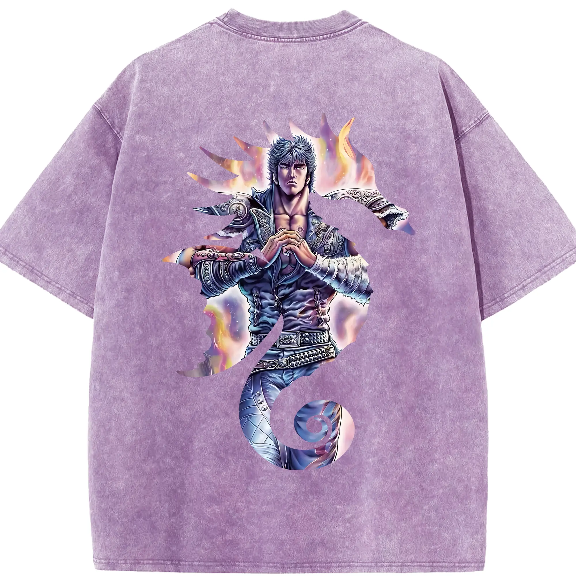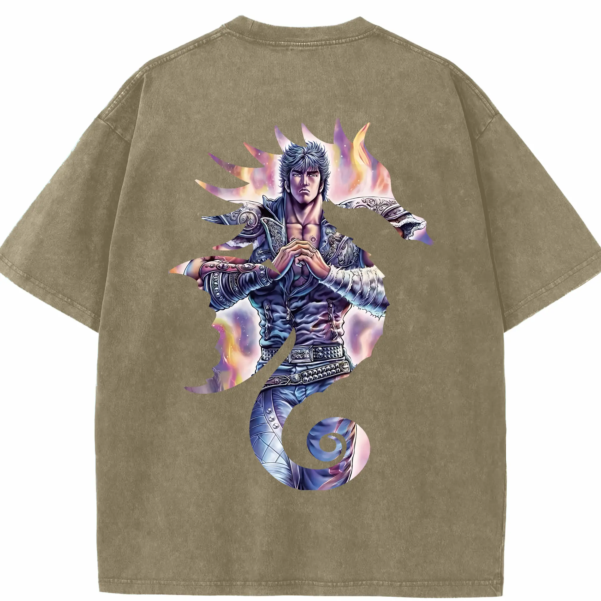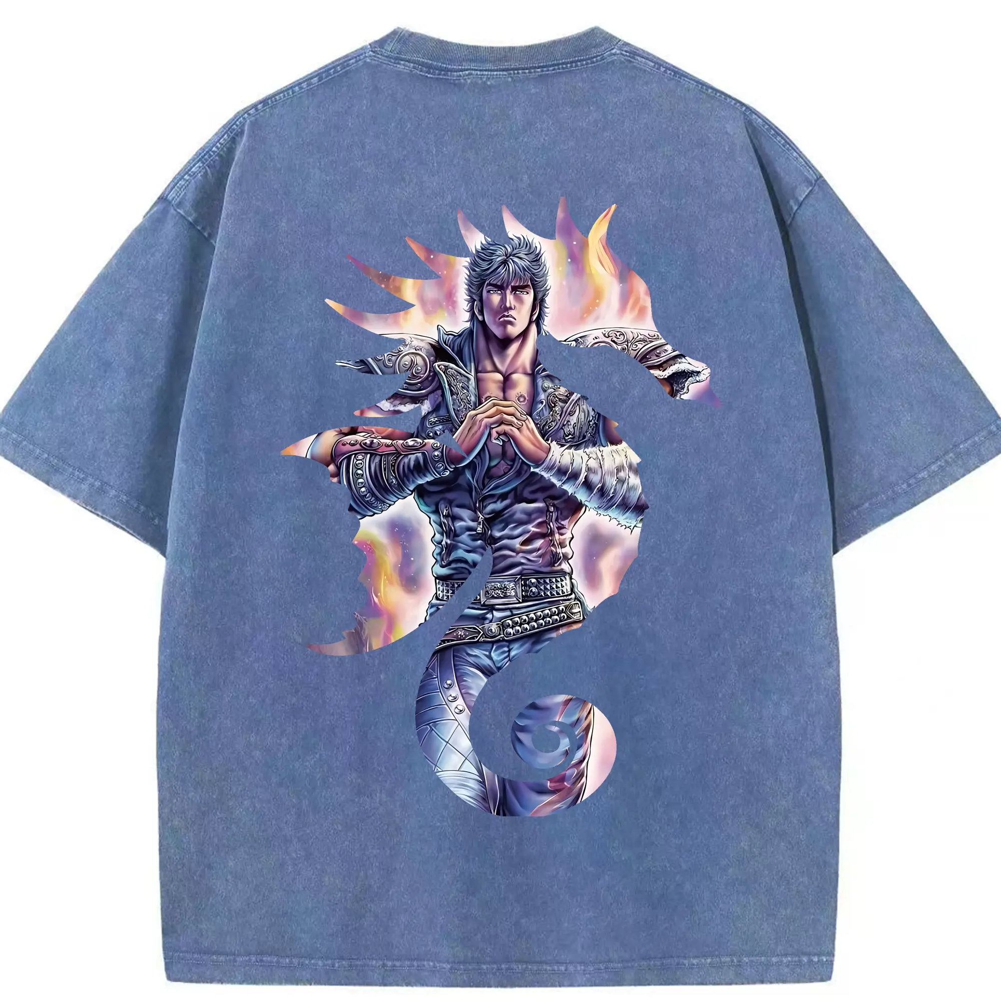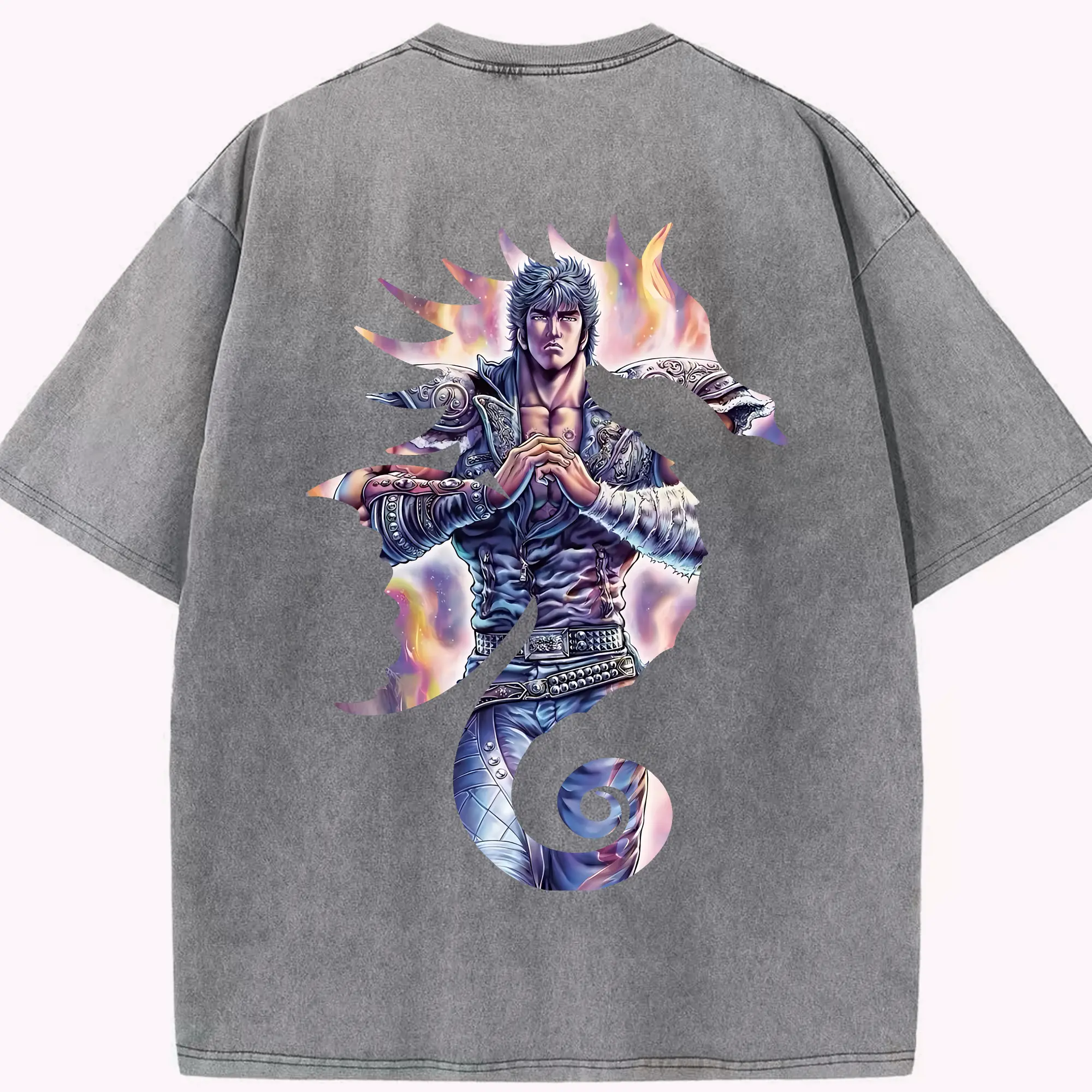 北斗の拳 グッズ,ケンシロウ - 綿100% ヴィンテージ風 半袖Tシャツ ・ フロントプリント ・ 柔らか肌触り ・ 通気性 快適 ・ スポーツ カジュアル 外出用