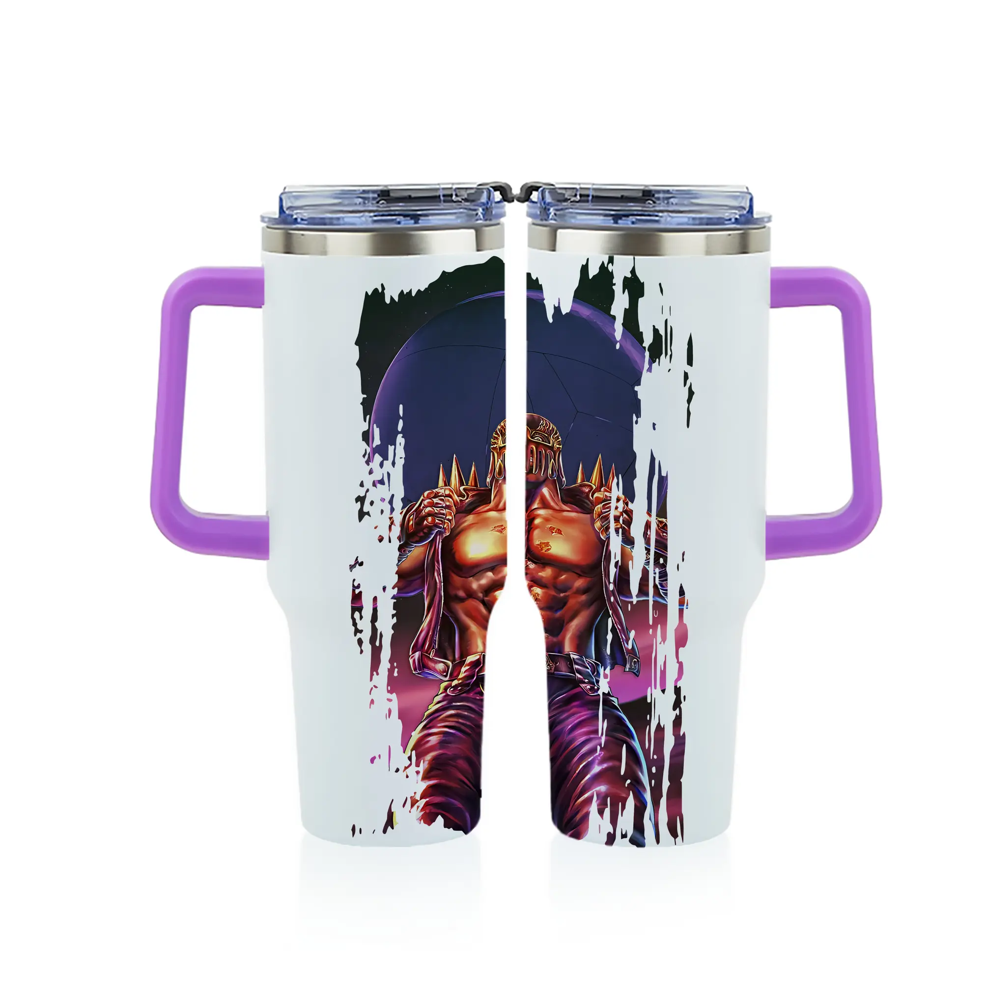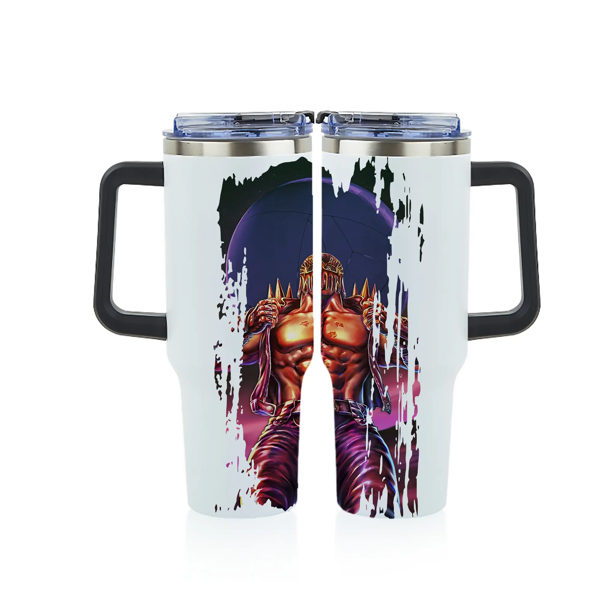 北斗の拳 グッズ,ジャギ - 1200mL フルプリント車用タンブラー ・ 304ステンレス 内側 ・ 201ステンレス 外側 ・ 保温 保冷 ・ 通勤 ドライブ アウトドア用