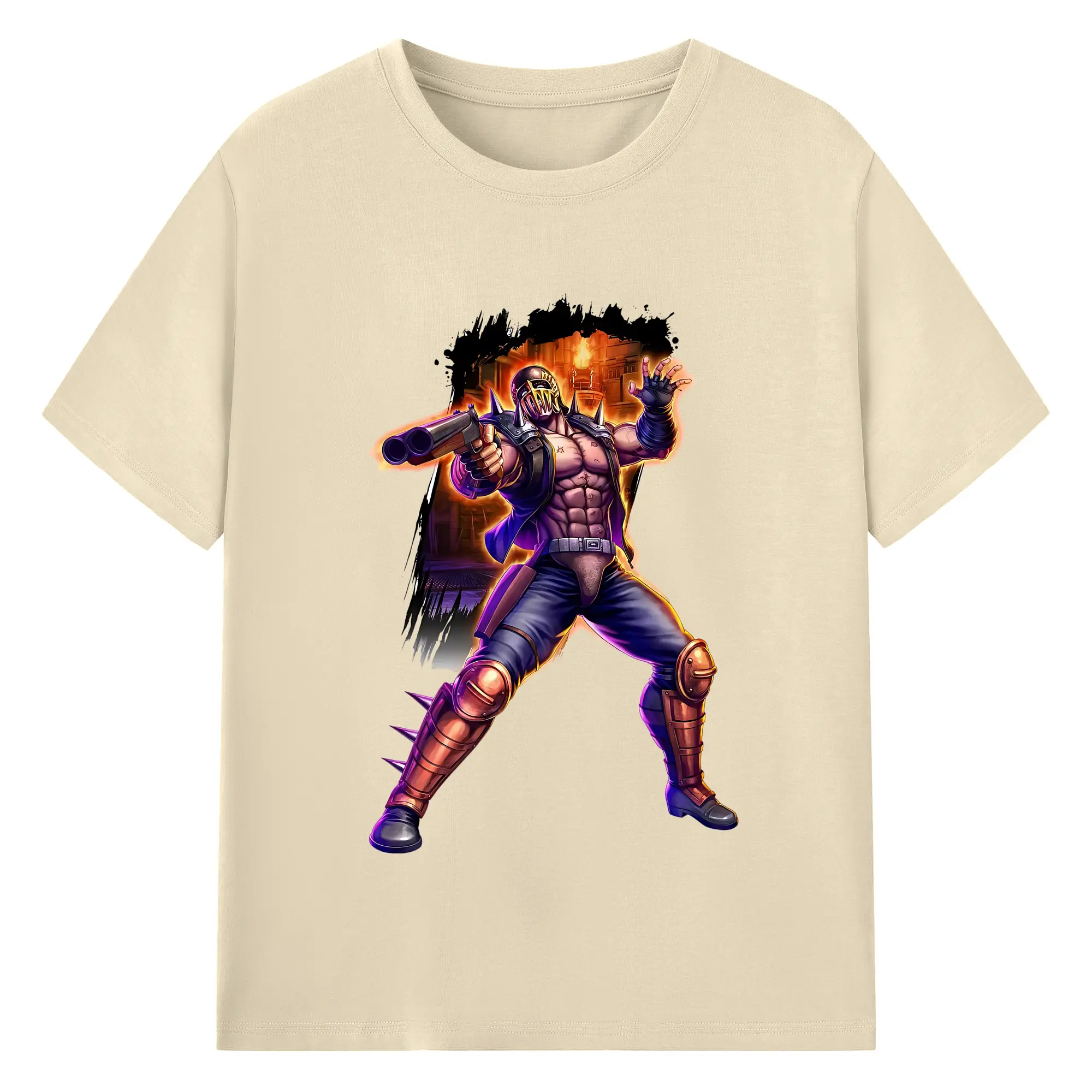 北斗の拳 グッズ,ジャギ - 綿100% ヴィンテージ風 半袖Tシャツ ・ フロントプリント ・ 柔らか肌触り ・ 通気性 快適 ・ スポーツ カジュアル 外出用
