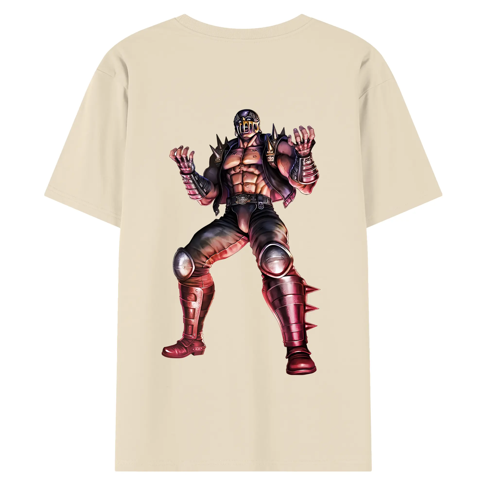 北斗の拳 グッズ,ジャギ - 綿100% ヴィンテージ風 半袖Tシャツ ・ 背面プリント ・ 柔らか肌触り ・ 通気性 快適 ・ スポーツ カジュアル 外出用