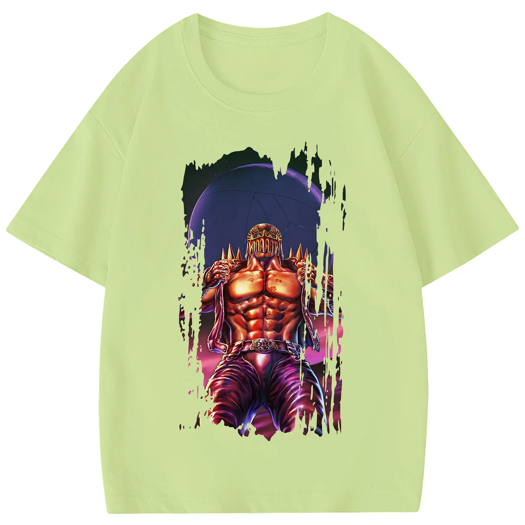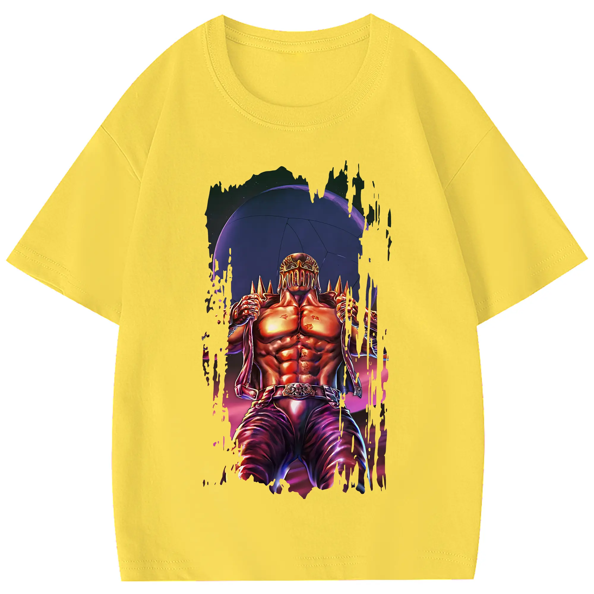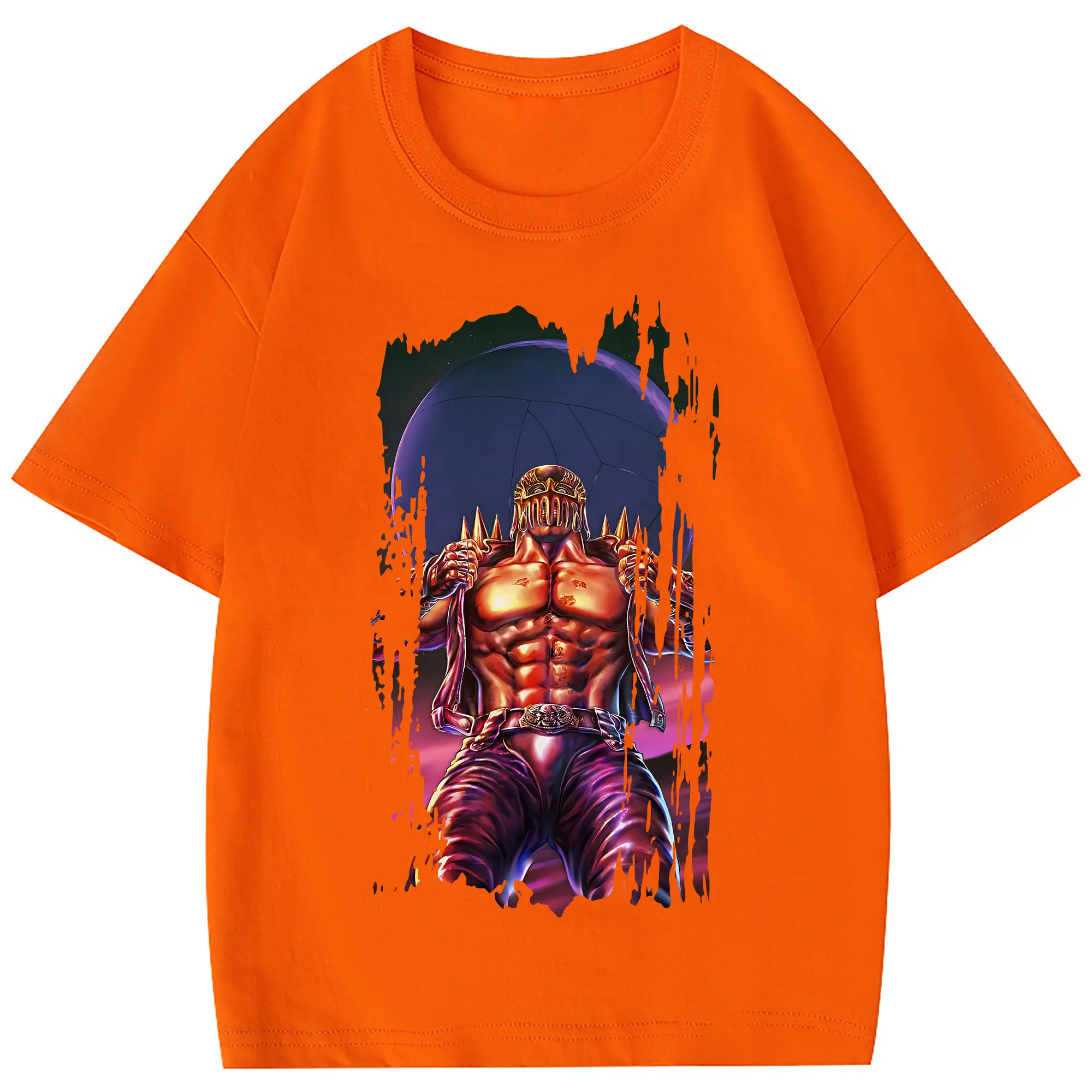 北斗の拳 グッズ,ジャギ - 綿100% ヴィンテージ風 半袖Tシャツ ・ フロントプリント ・ 柔らか肌触り ・ 通気性 快適 ・ スポーツ カジュアル 外出用