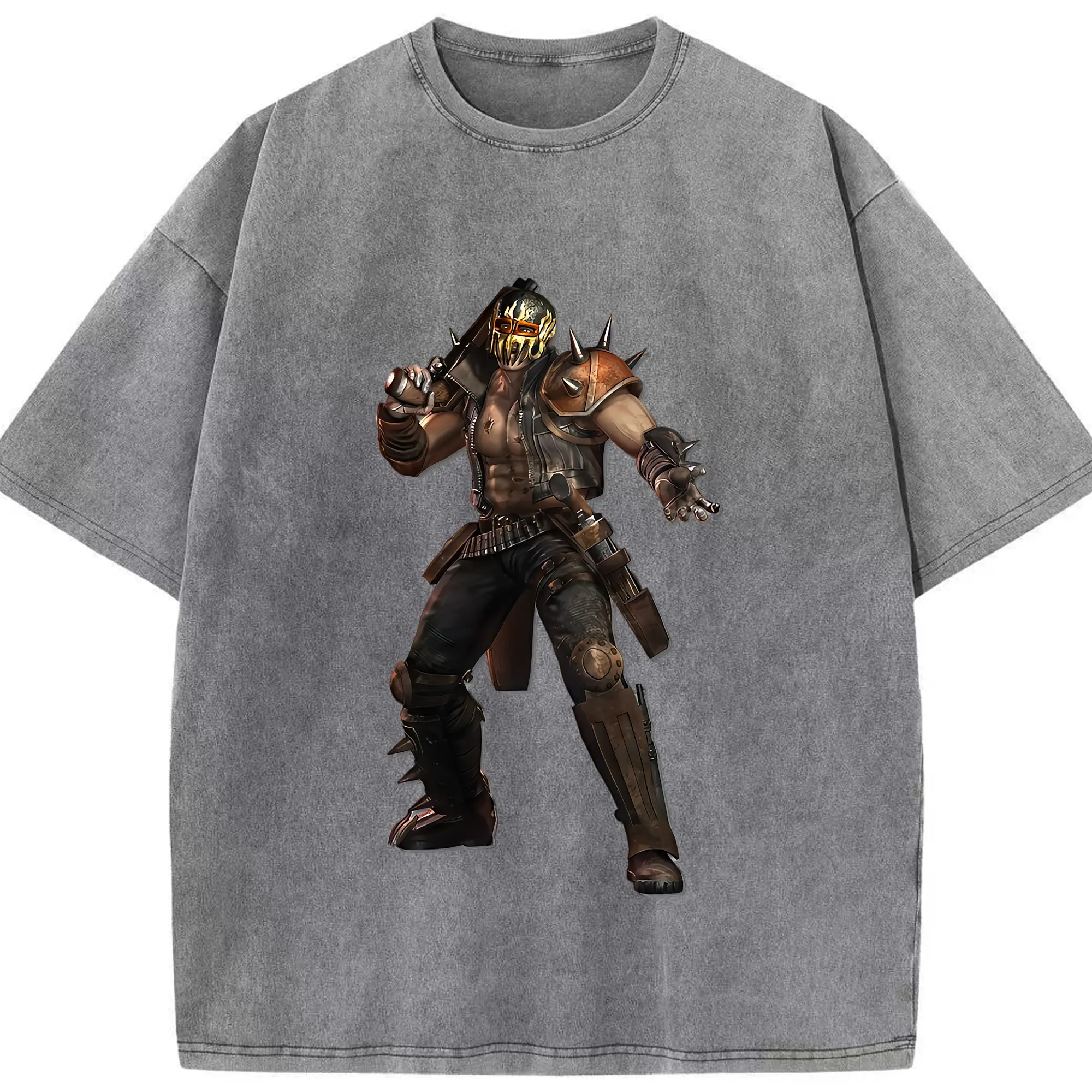 北斗の拳 グッズ,ジャギ - 綿100% ヴィンテージ風 半袖Tシャツ ・ 背面プリント ・ 柔らか肌触り ・ 通気性 快適 ・ スポーツ カジュアル 外出用