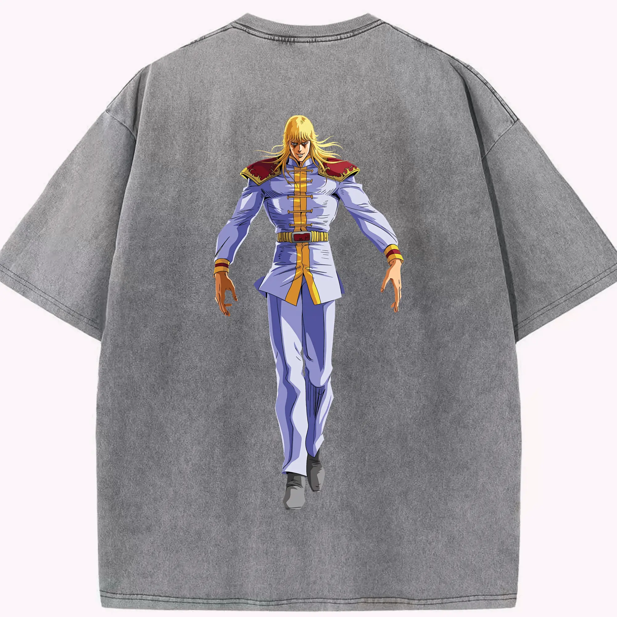 北斗の拳 グッズ,シン - 綿100% ヴィンテージ風 半袖Tシャツ ・ フロントプリント ・ 柔らか肌触り ・ 通気性 快適 ・ スポーツ カジュアル 外出用