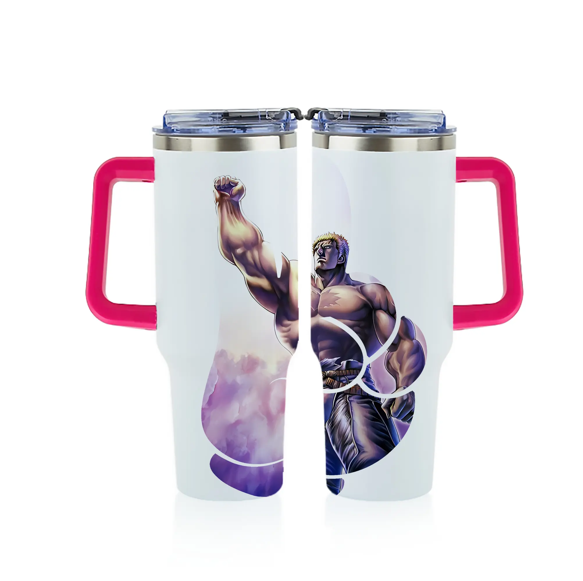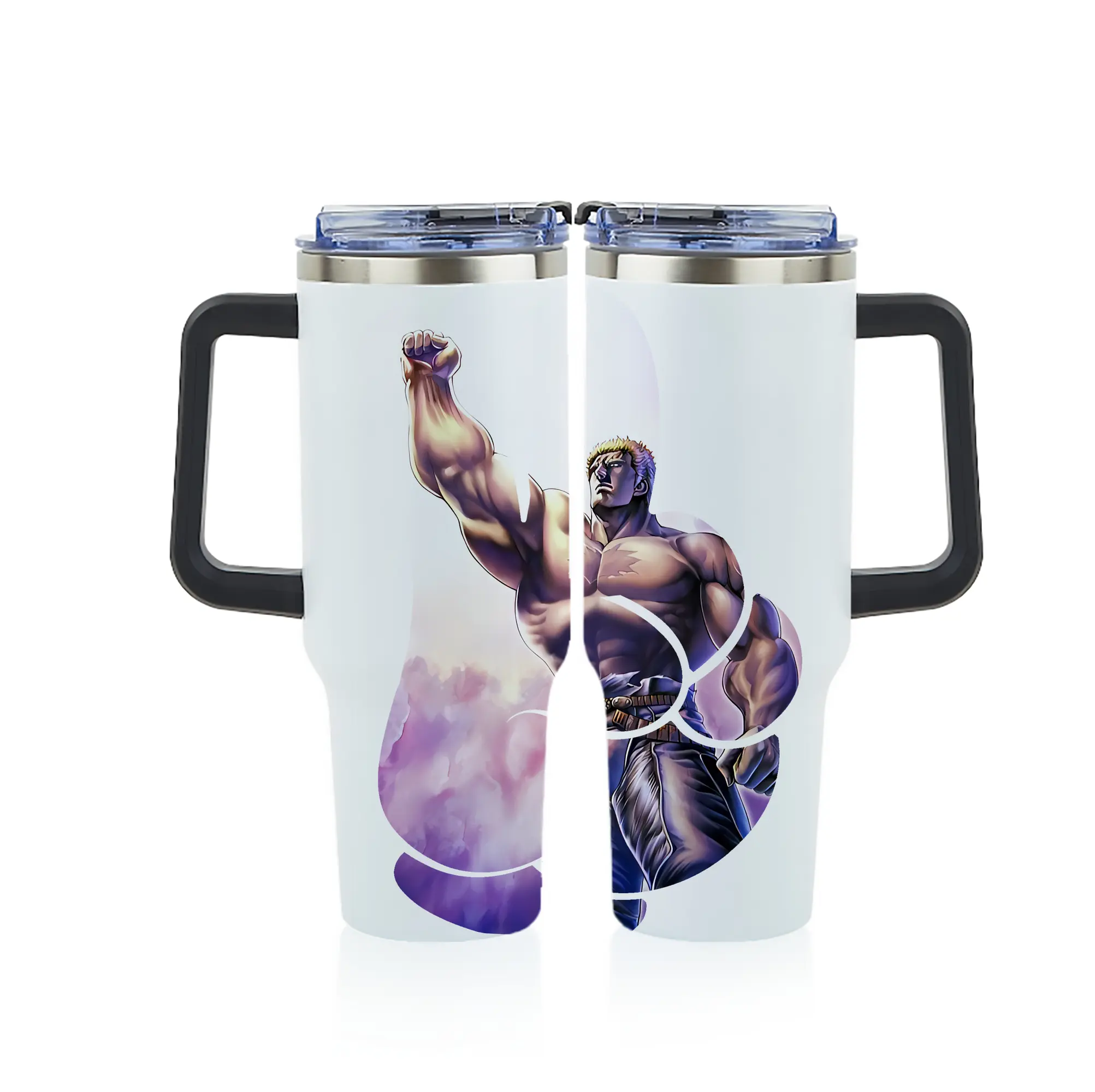 北斗の拳 グッズ,ラオウ - 1200mL フルプリント車用タンブラー ・ 304ステンレス 内側 ・ 201ステンレス 外側 ・ 保温 保冷 ・ 通勤 ドライブ アウトドア用