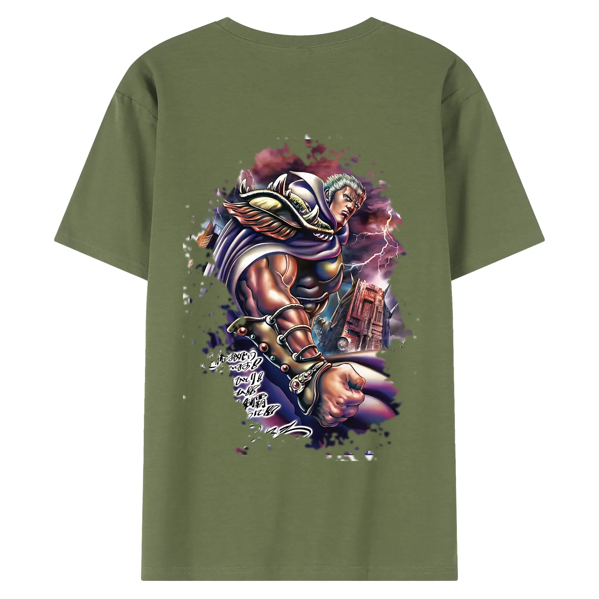 北斗の拳 グッズ,ラオウ - 綿100% 半袖Tシャツ ・ フロントプリント ・ 快適 通気性 ・ 日常使い 散歩 スポーツ用