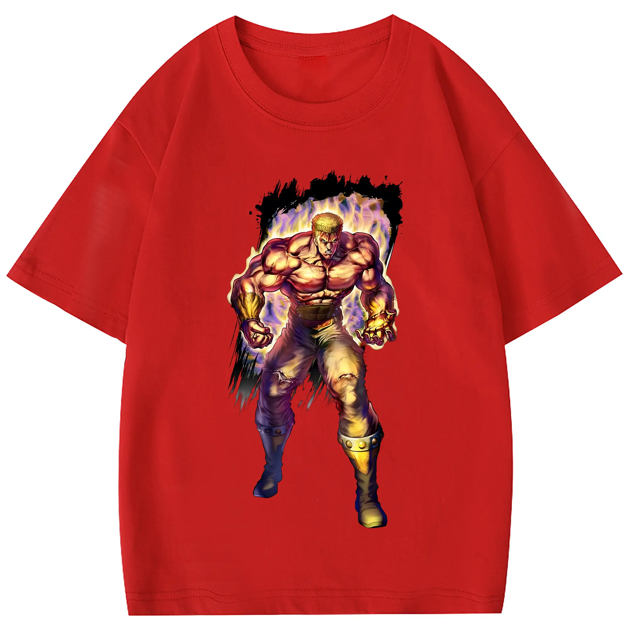 北斗の拳 グッズ,ラオウ - 綿100% 半袖Tシャツ ・ フロントプリント ・ 快適 通気性 ・ 日常使い 散歩 スポーツ用