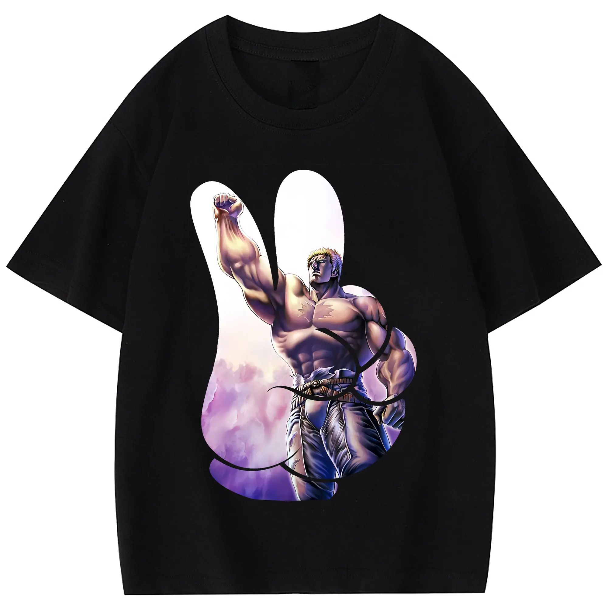 北斗の拳 グッズ,ラオウ - 綿100% 半袖Tシャツ ・ フロントプリント ・ 快適 通気性 ・ 日常使い 散歩 スポーツ用