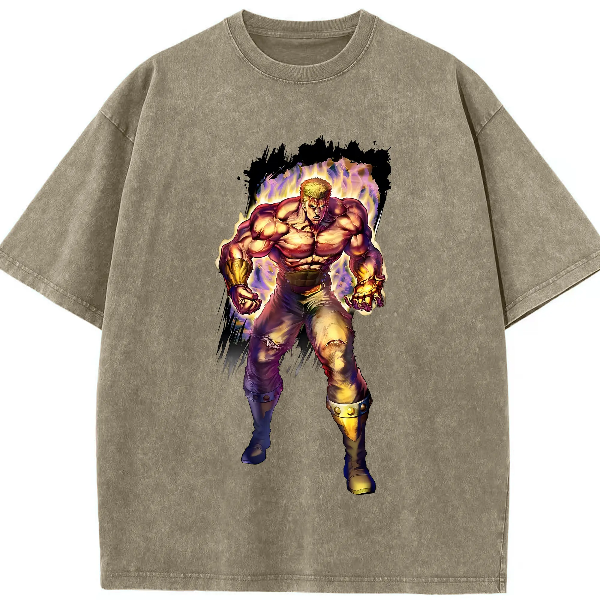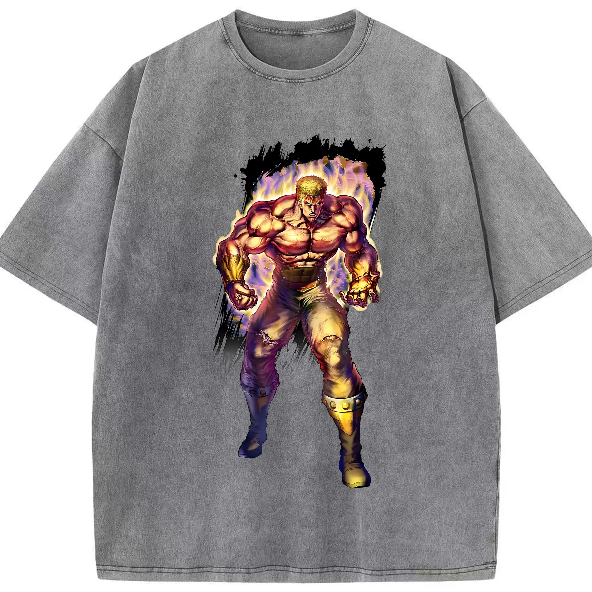 北斗の拳 グッズ,ラオウ - 綿100% ヴィンテージ風 半袖Tシャツ ・ 背面プリント ・ 柔らか肌触り ・ 通気性 快適 ・ スポーツ カジュアル 外出用