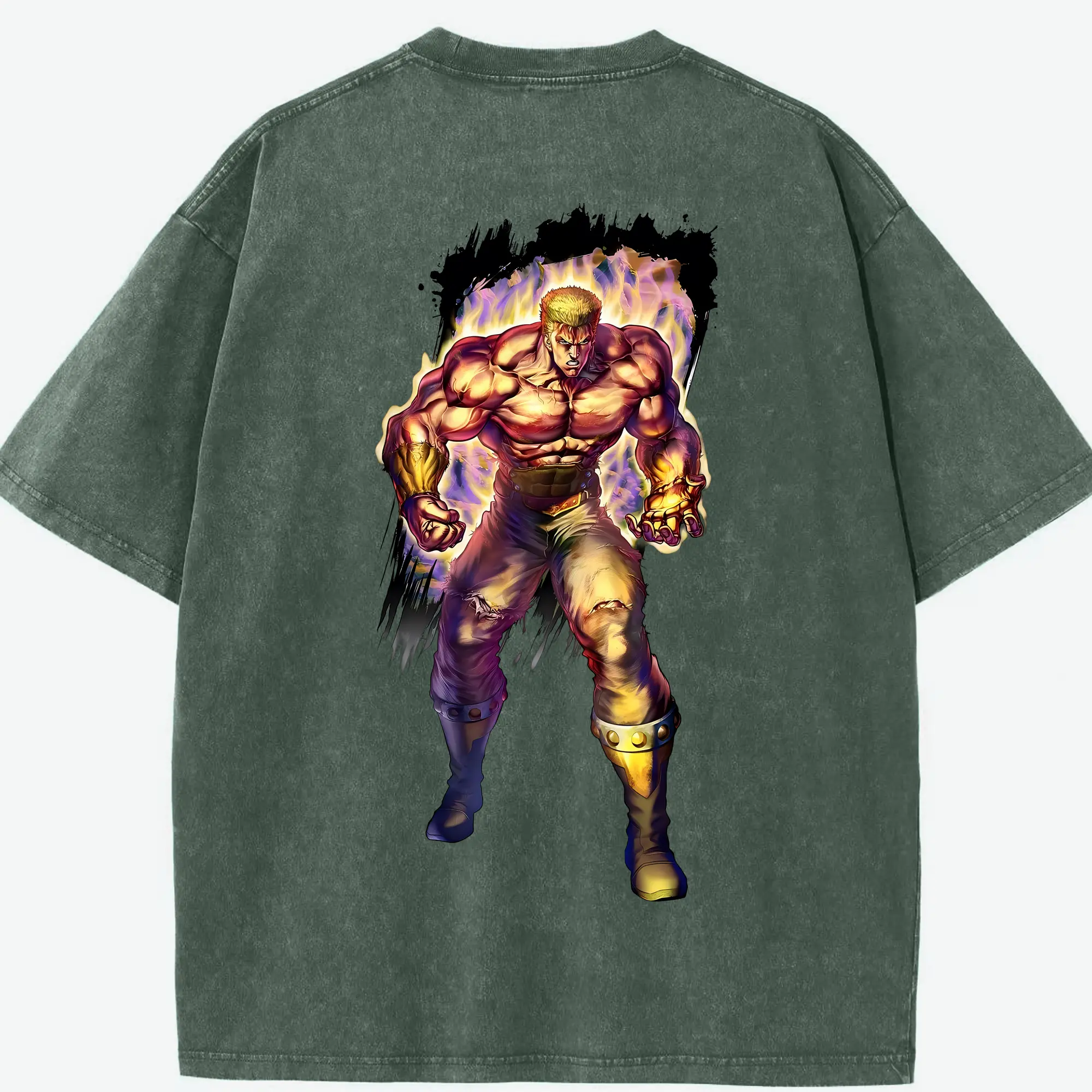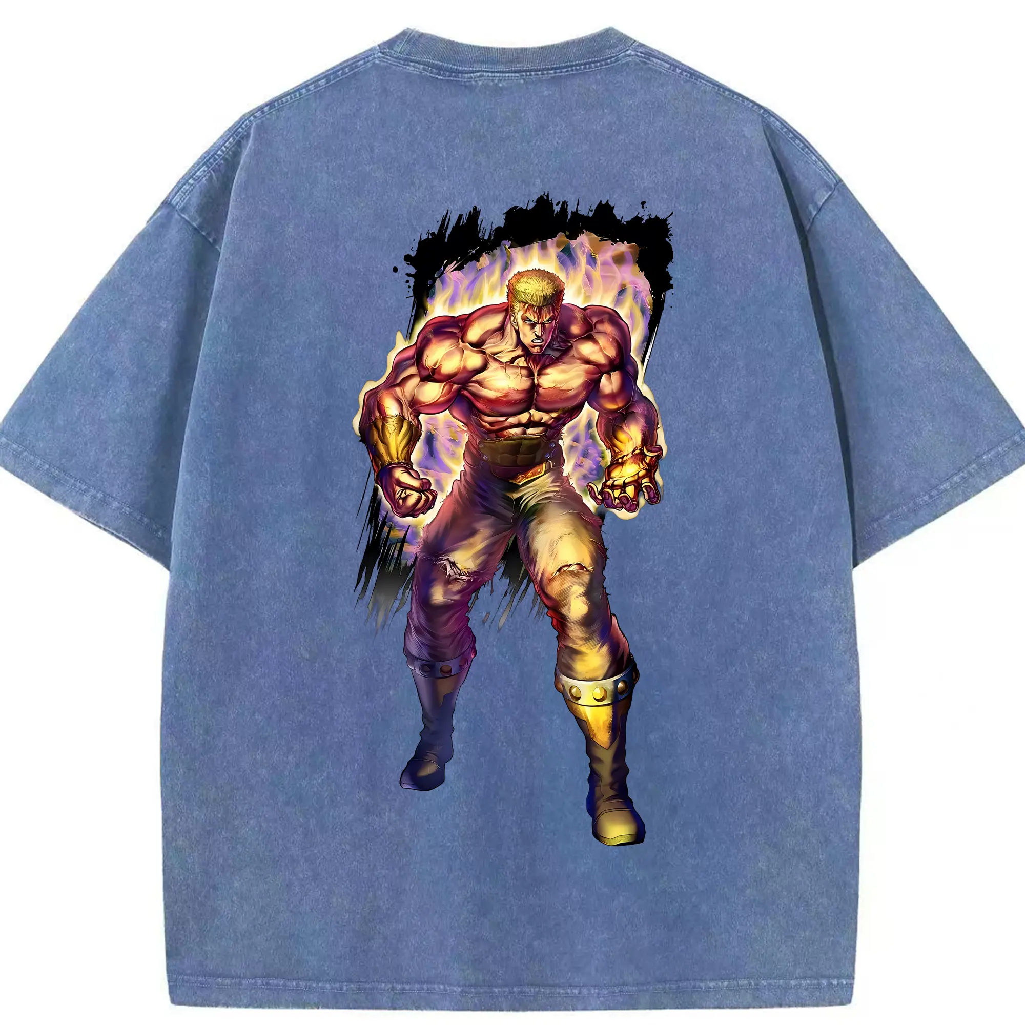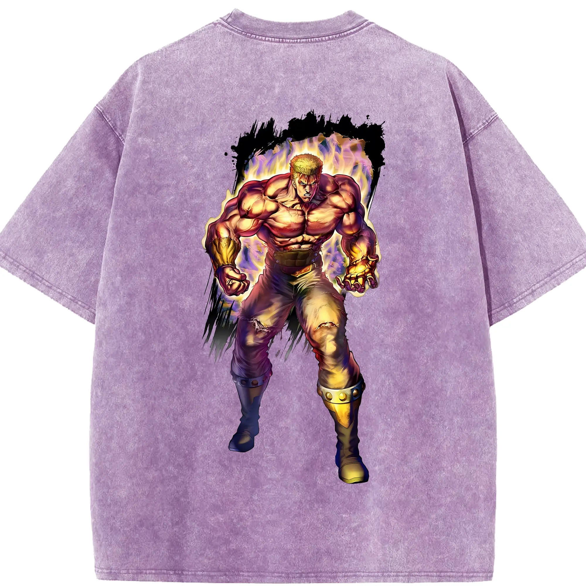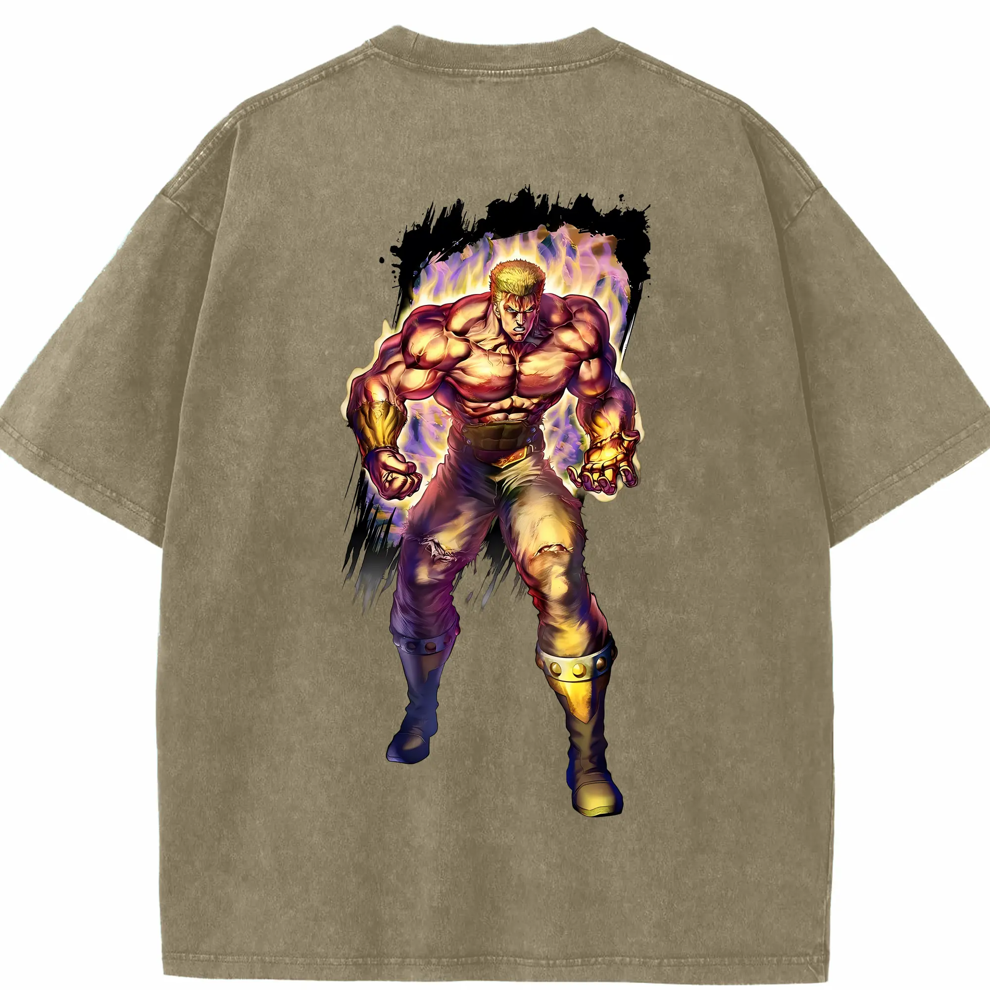 北斗の拳 グッズ,ラオウ - 綿100% ヴィンテージ風 半袖Tシャツ ・ フロントプリント ・ 柔らか肌触り ・ 通気性 快適 ・ スポーツ カジュアル 外出用