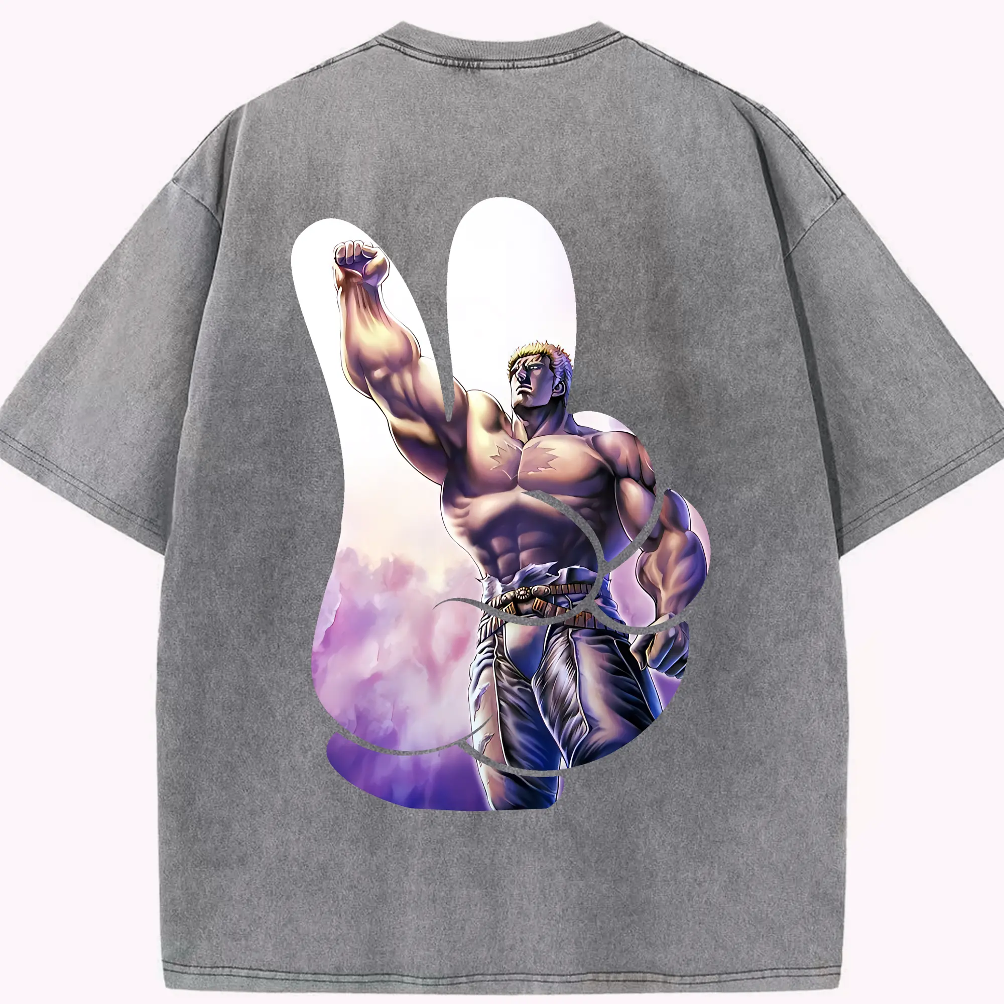 北斗の拳 グッズ,ラオウ - 綿100% 半袖Tシャツ ・ バックプリント ・ 快適 通気性 ・ 日常使い 散歩 スポーツ用