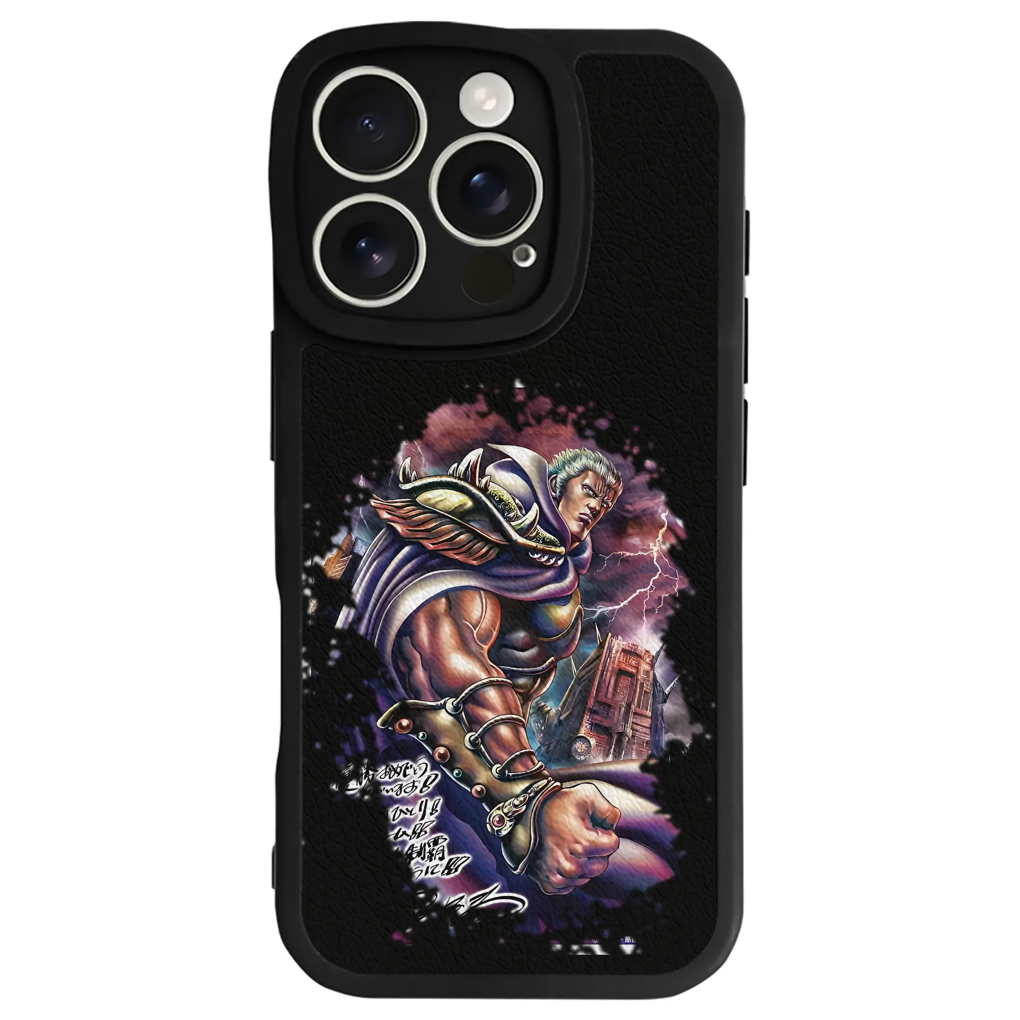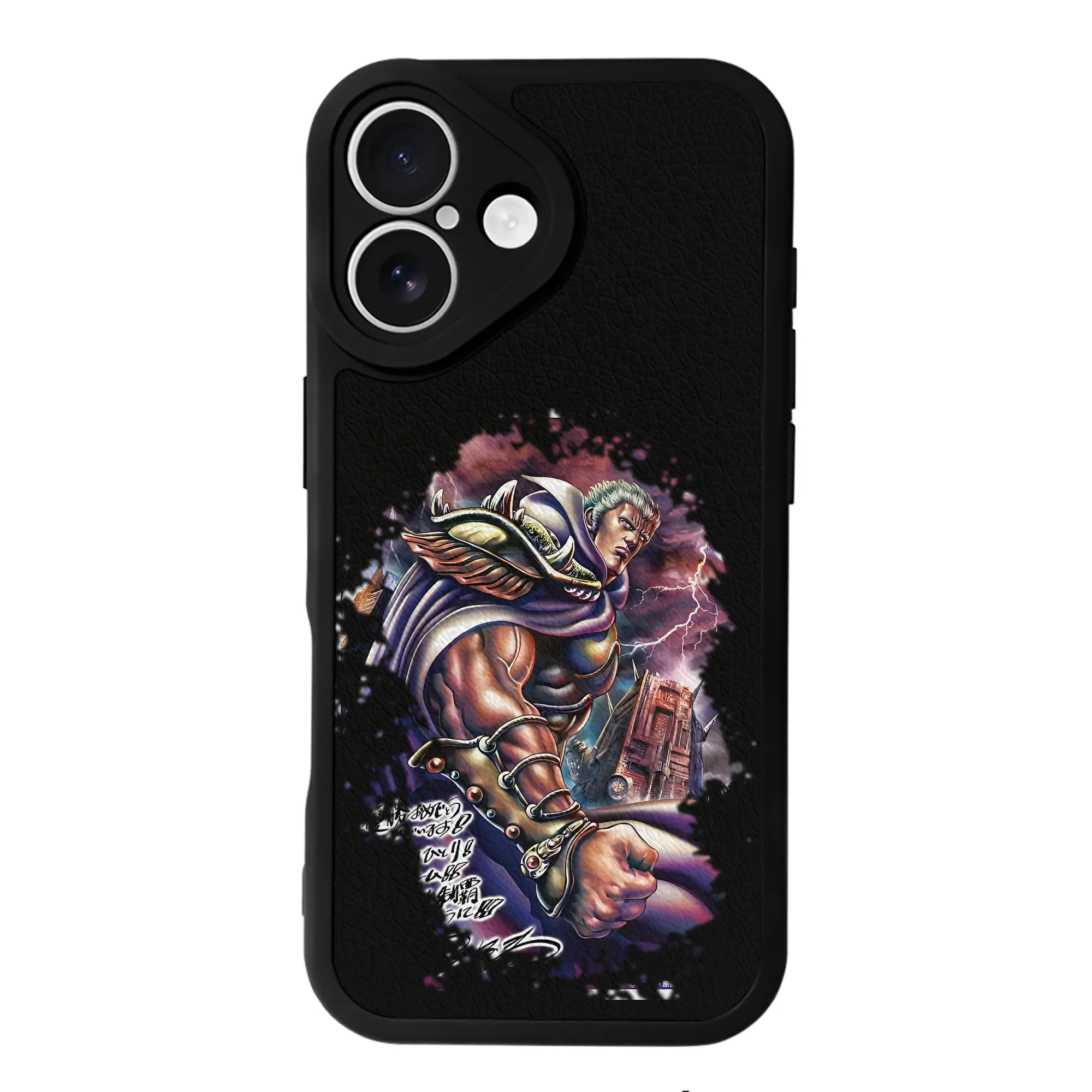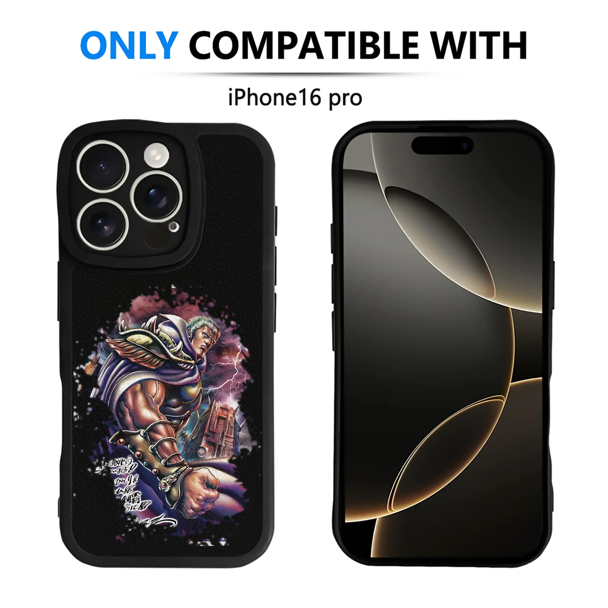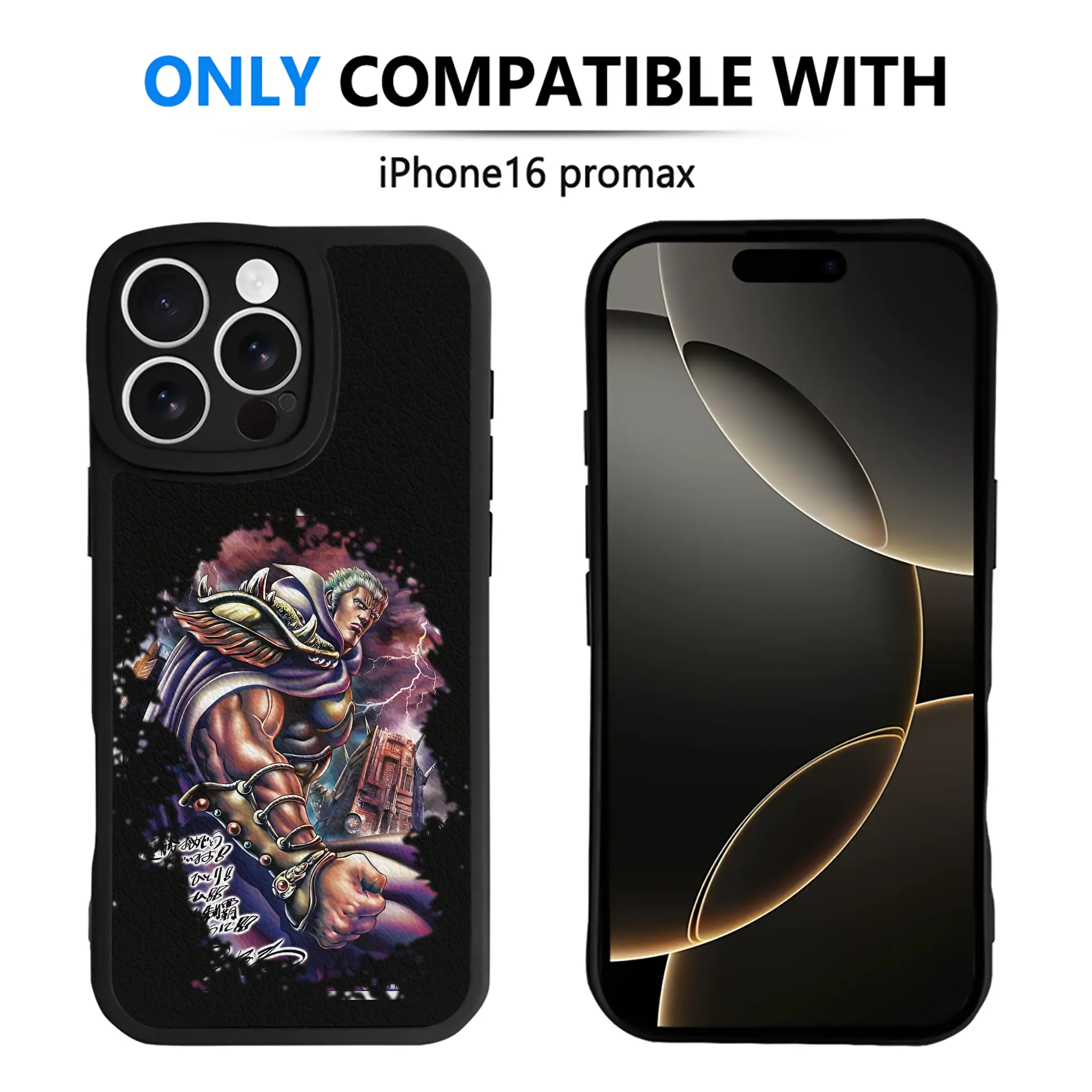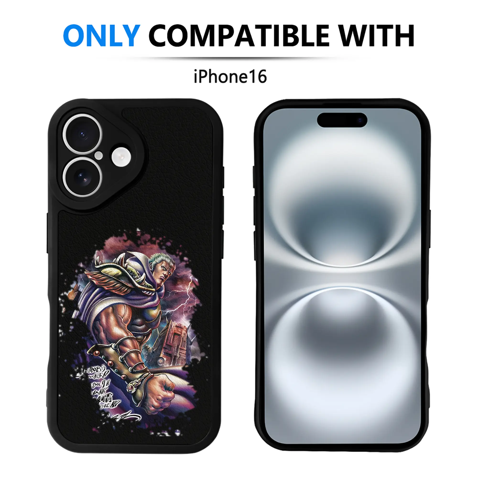 北斗の拳 グッズ,ラオウ - IPhone 16シリーズ対応 ・ シリコンスマホケース ・ レザー調 ・ 高精度フィット ・ 耐衝撃 ・ ワイヤレス充電対応 ・ 精密カット